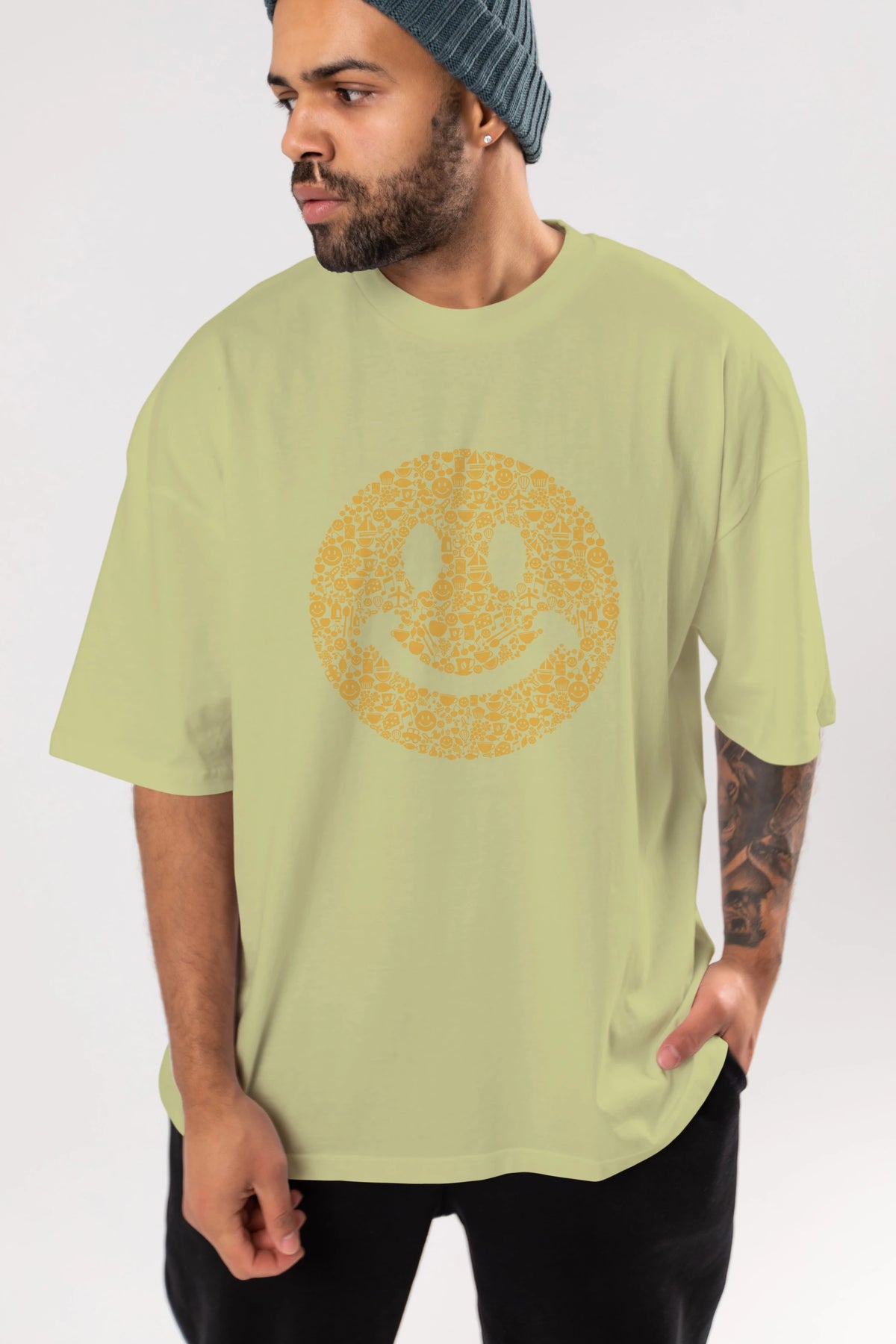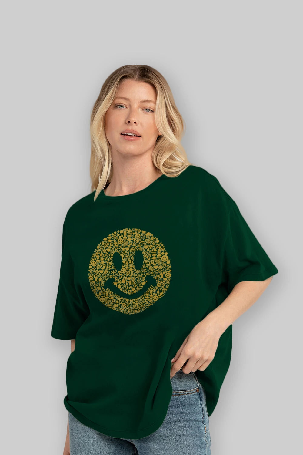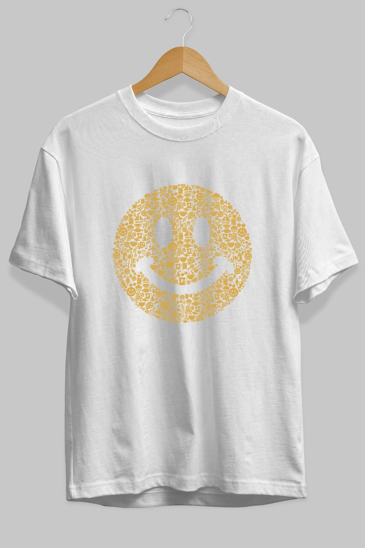 Smiley Ön Baskılı Oversize t-shirt %100 pamuk Erkek Kadın Unisex