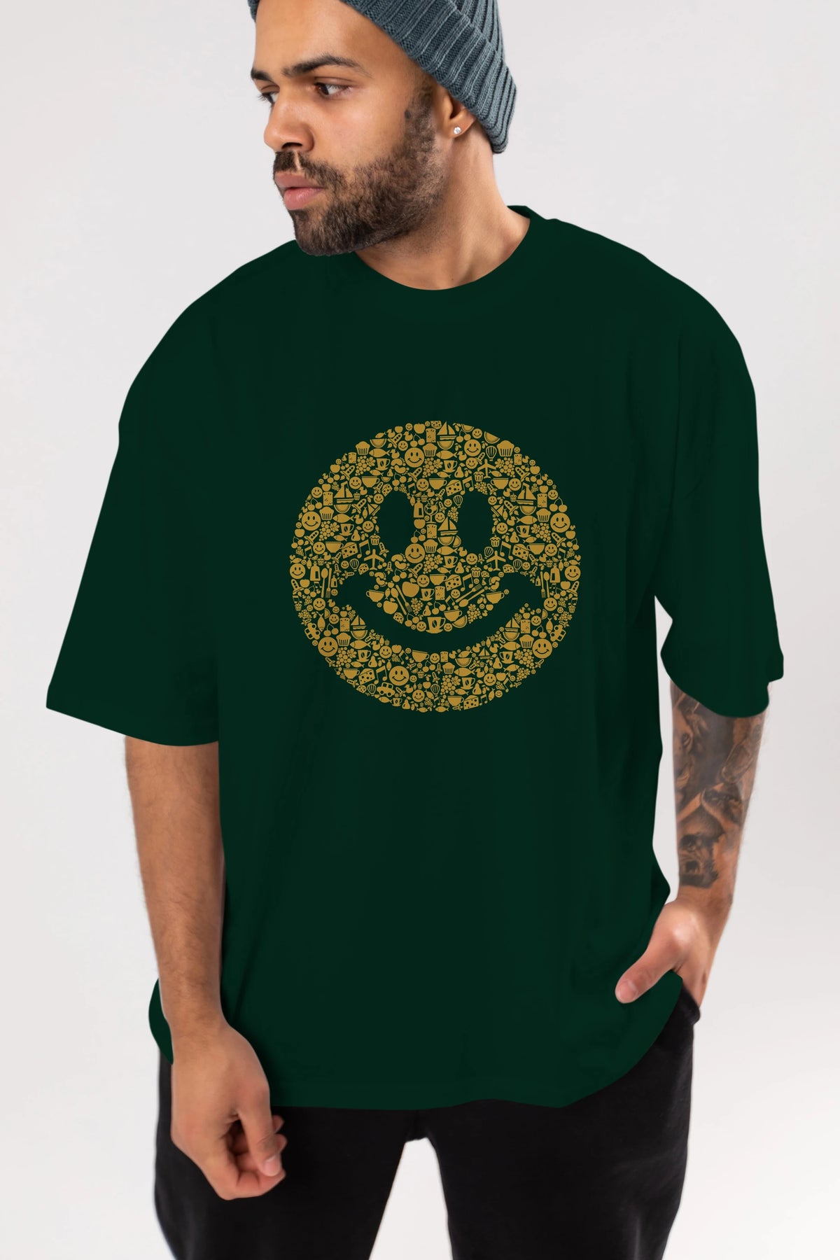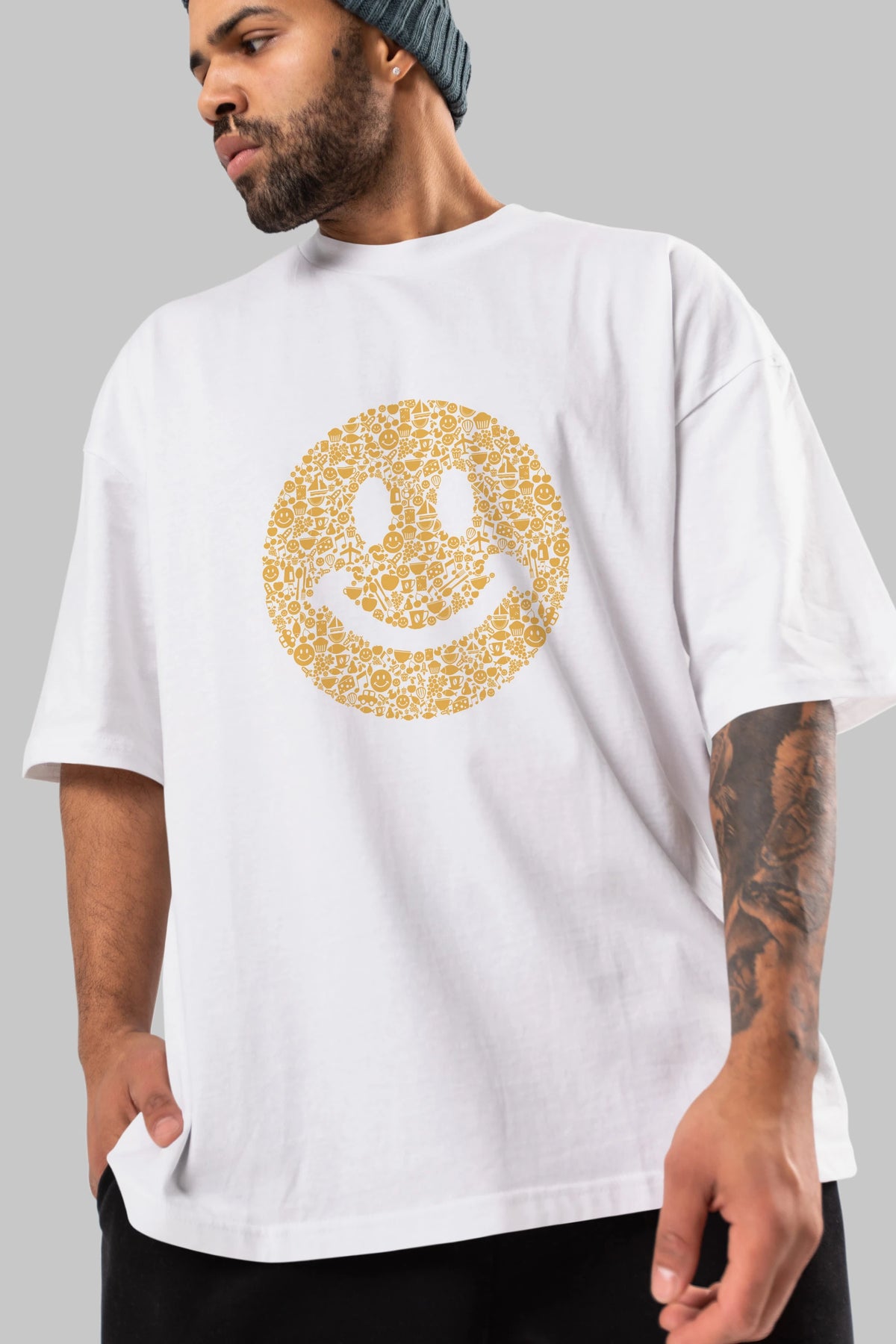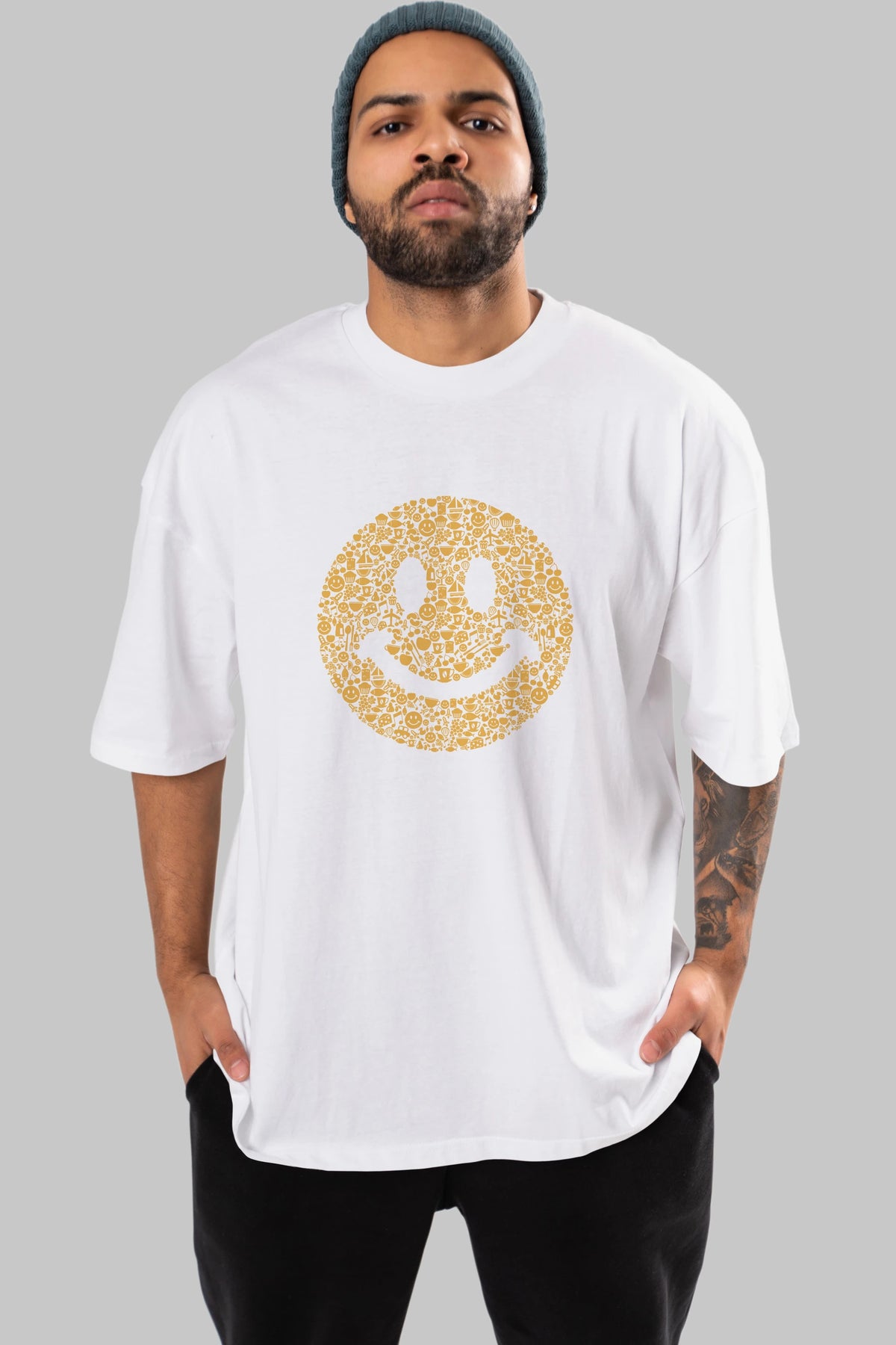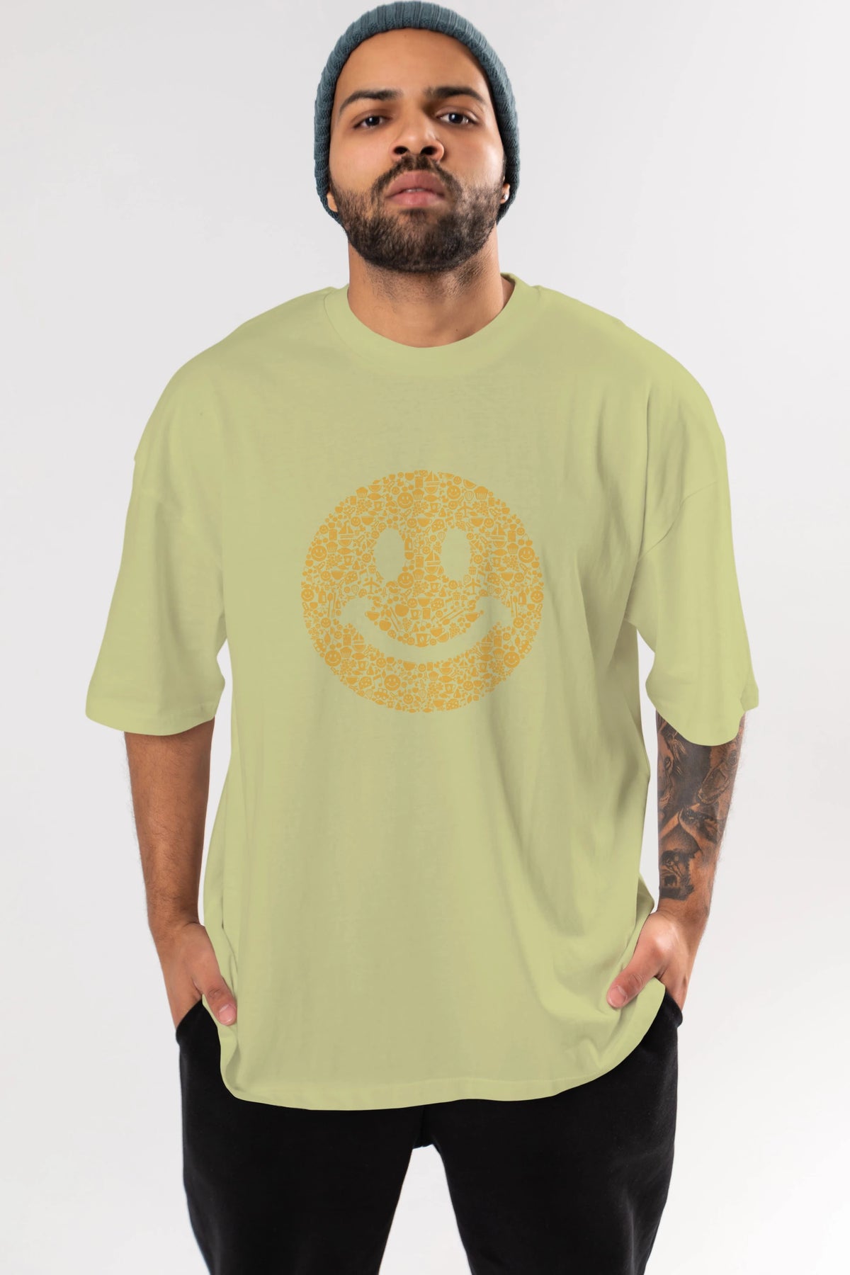 Smiley Ön Baskılı Oversize t-shirt %100 pamuk Erkek Kadın Unisex