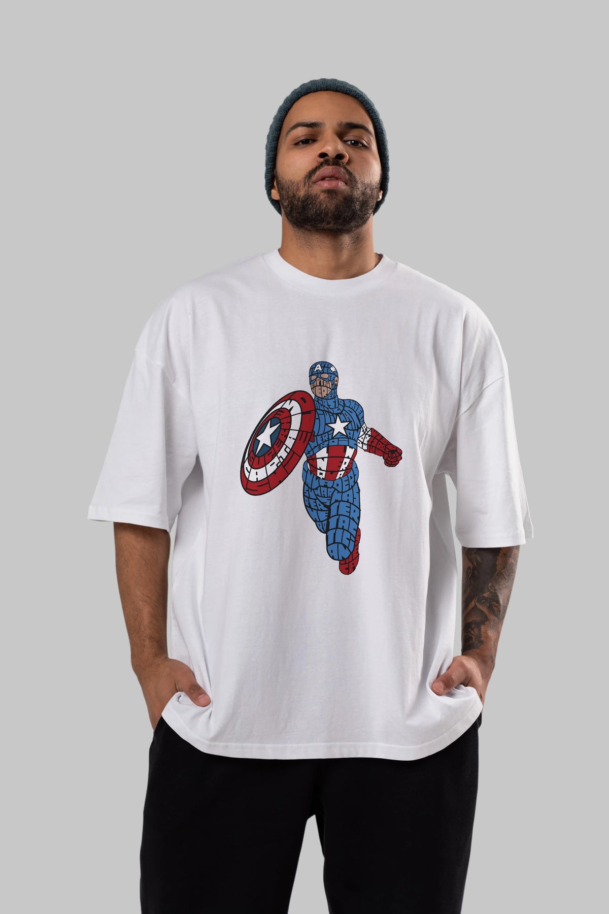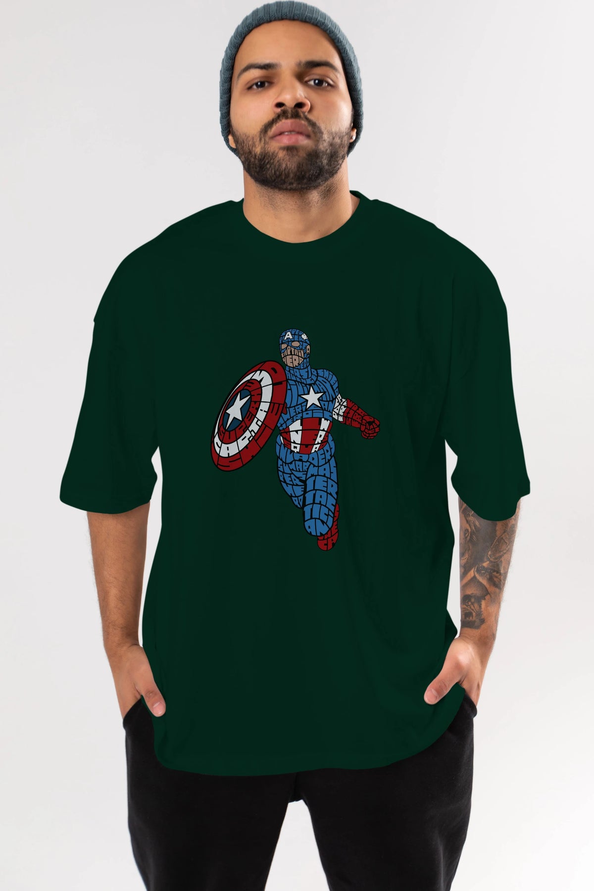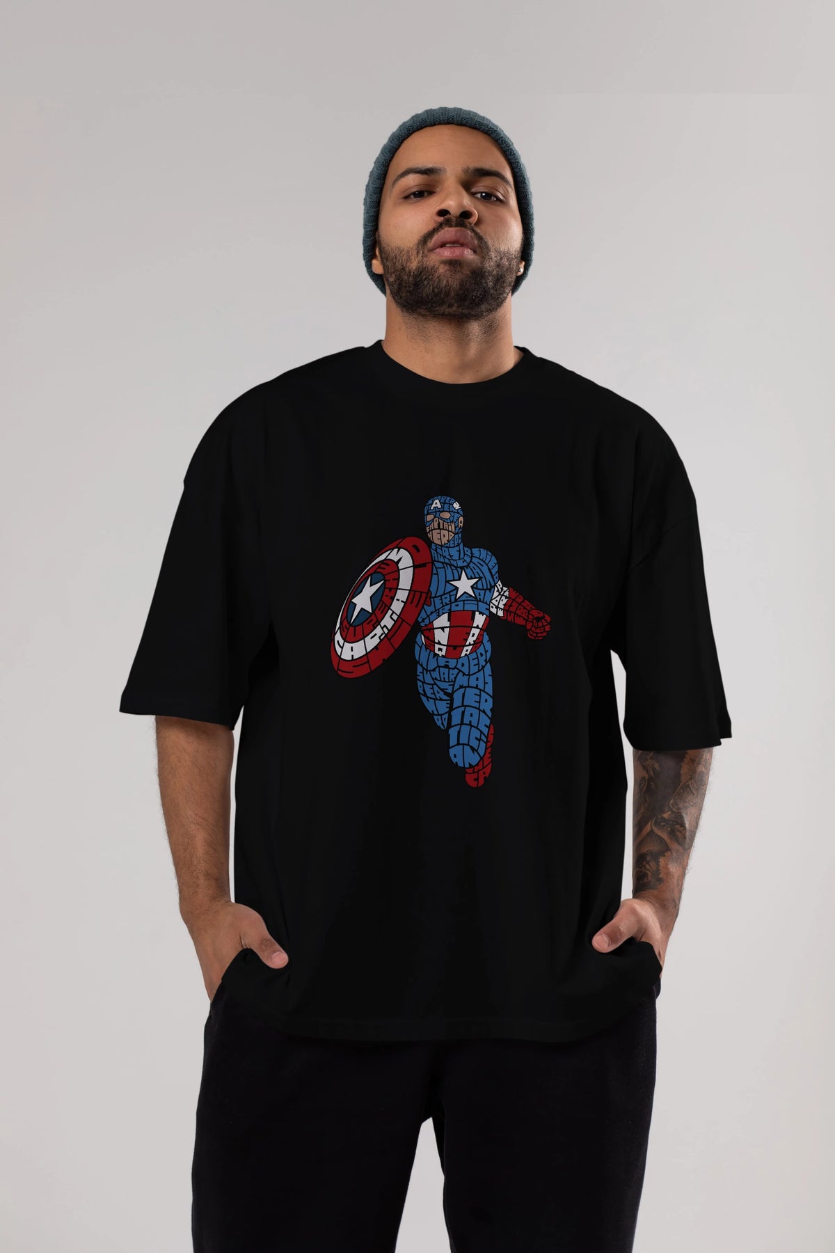 Star and Stripes Hero Ön Baskılı Oversize t-shirt %100 pamuk Erkek Kadın Unisex