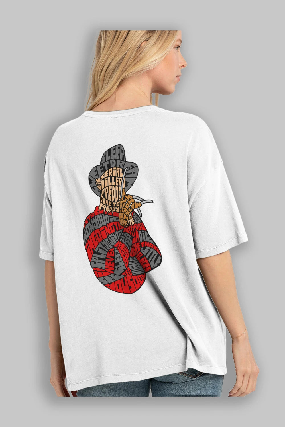 Hem erkekler hem de kadınlar için uygun, taze, modern bir baskıya sahip baskılı oversize t-shirt.