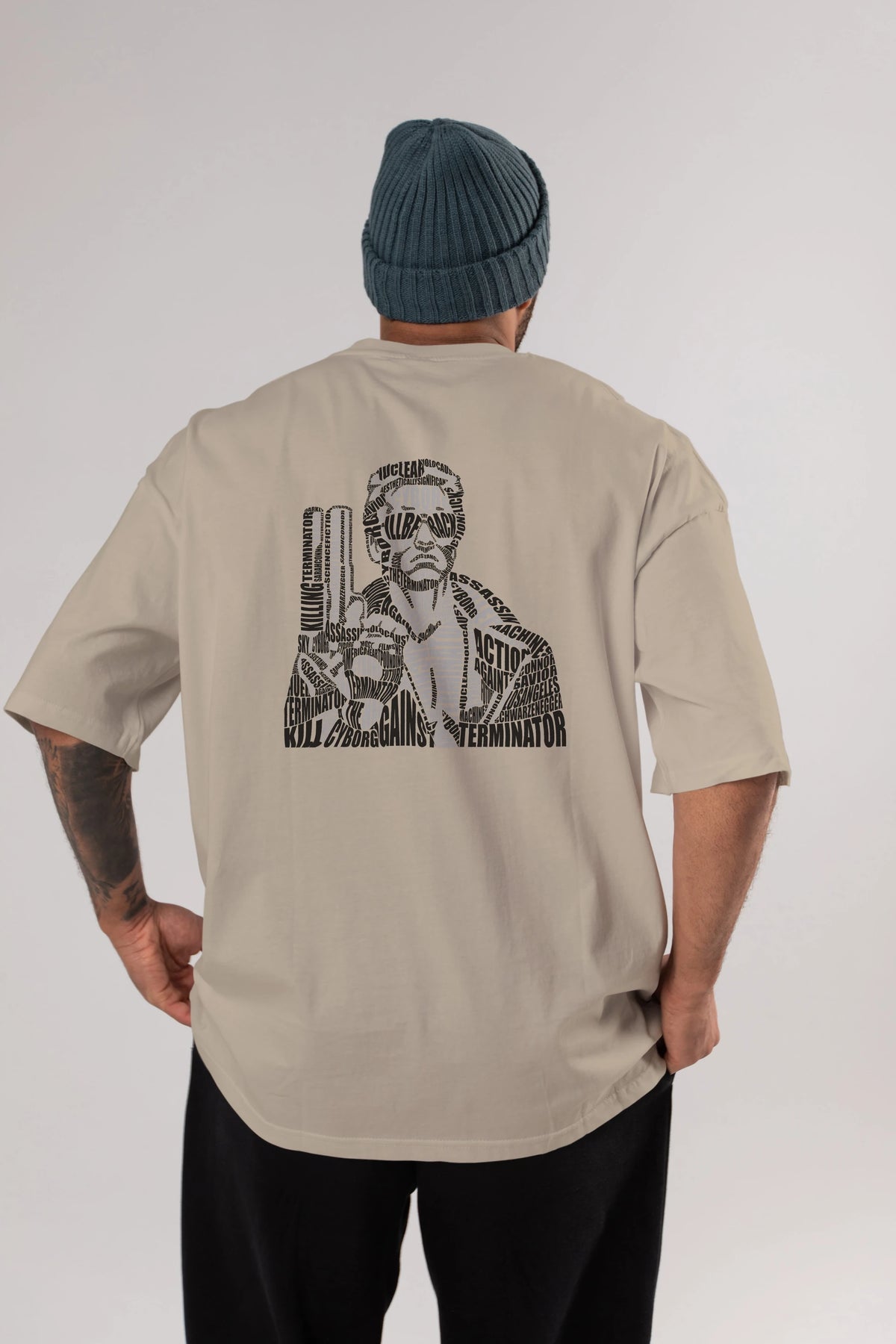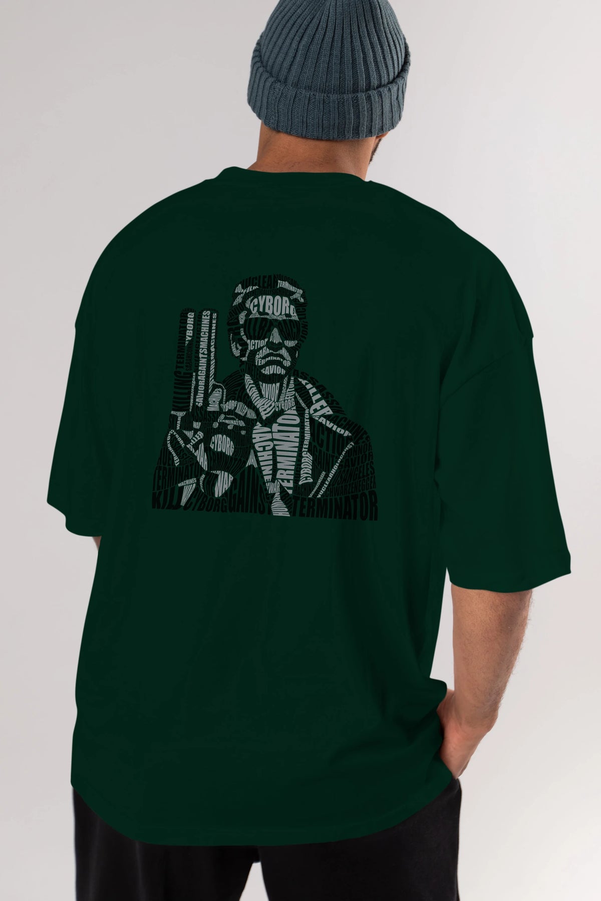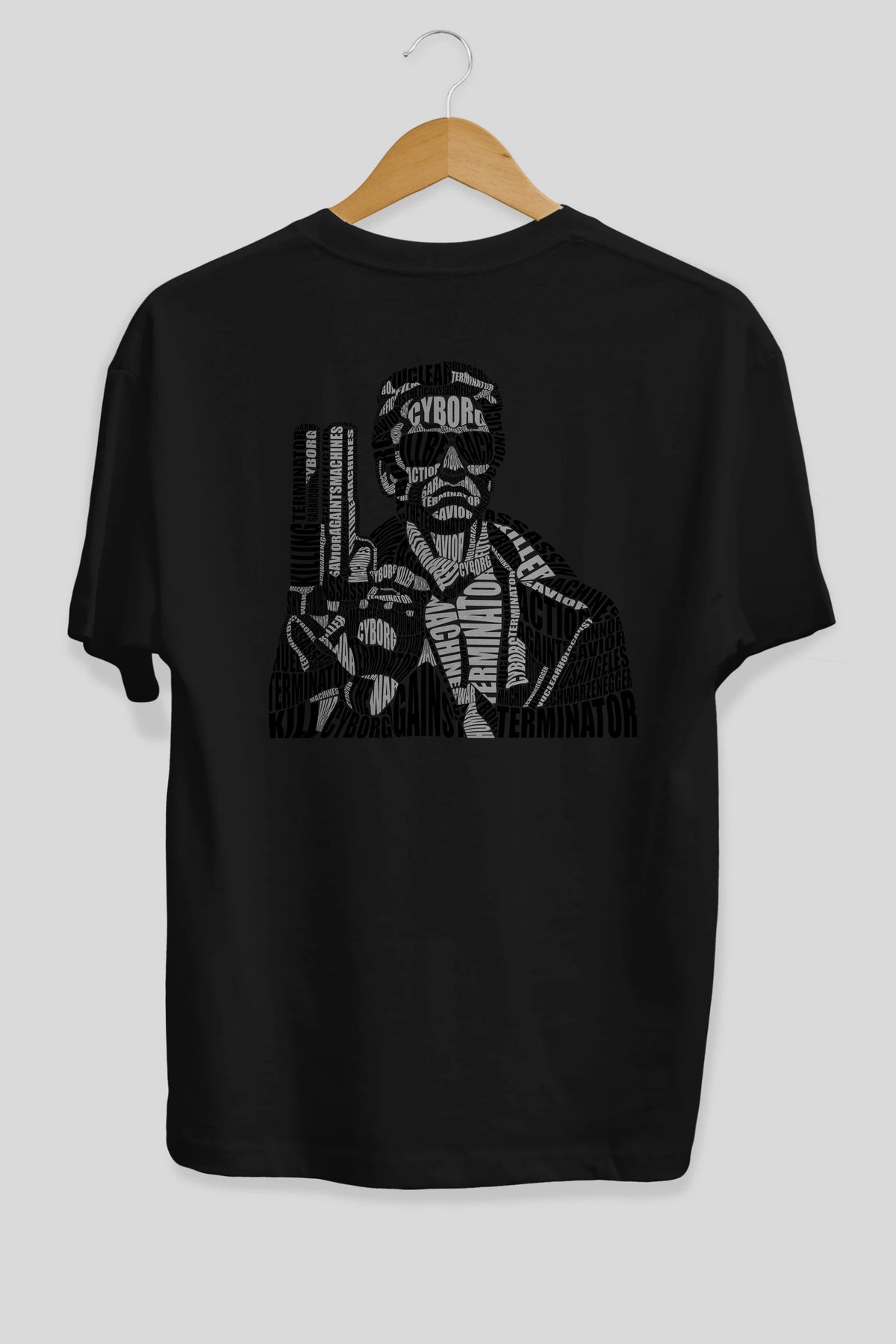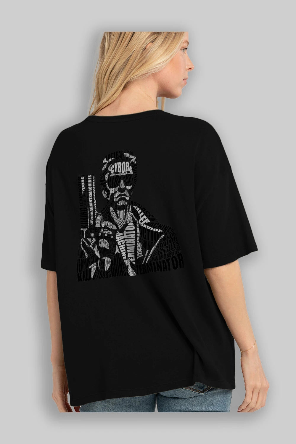 Terminator Calligram Arka Baskılı Oversize t-shirt %100 pamuk Erkek Kadın Unisex