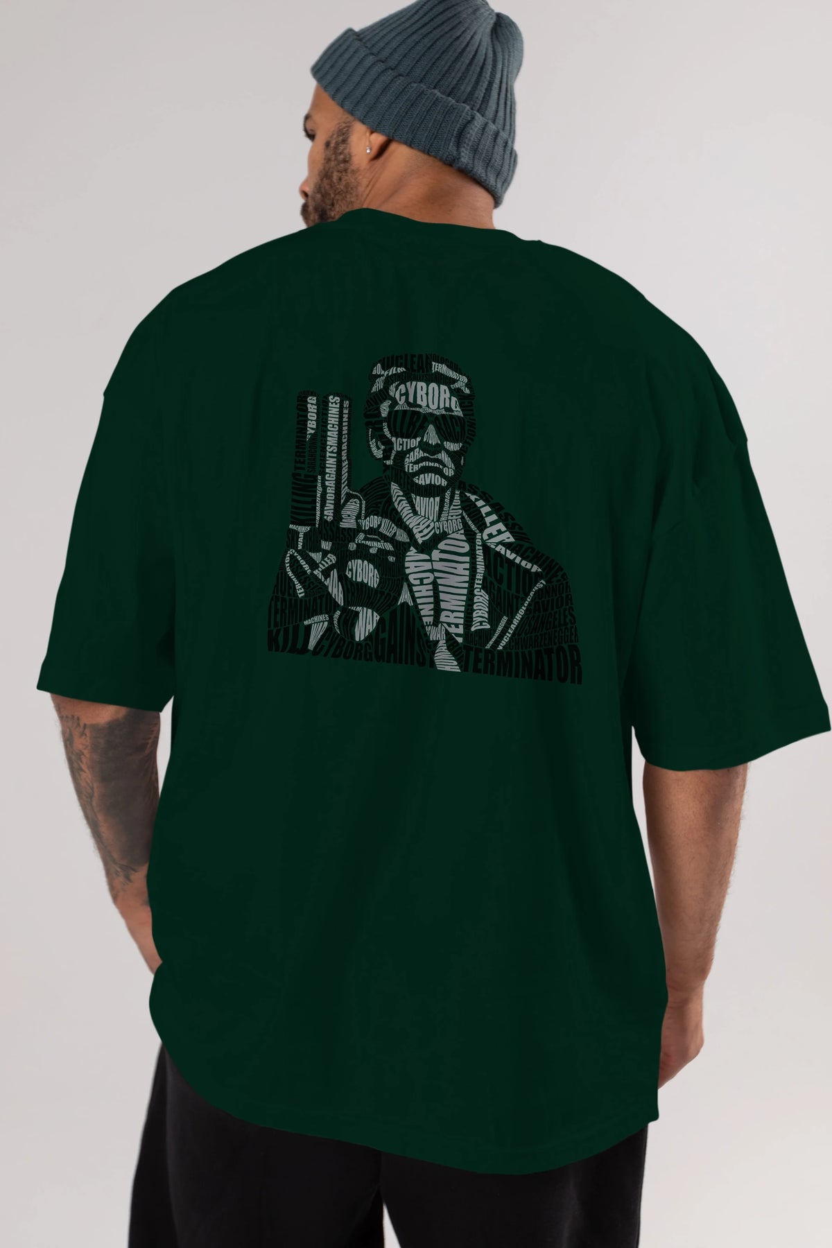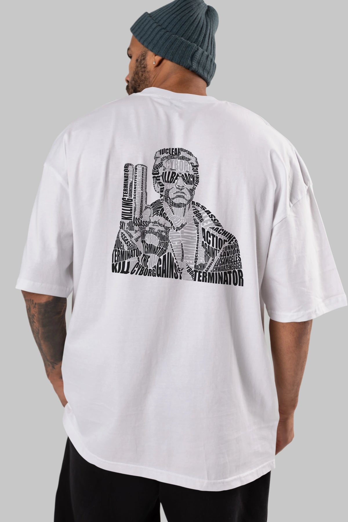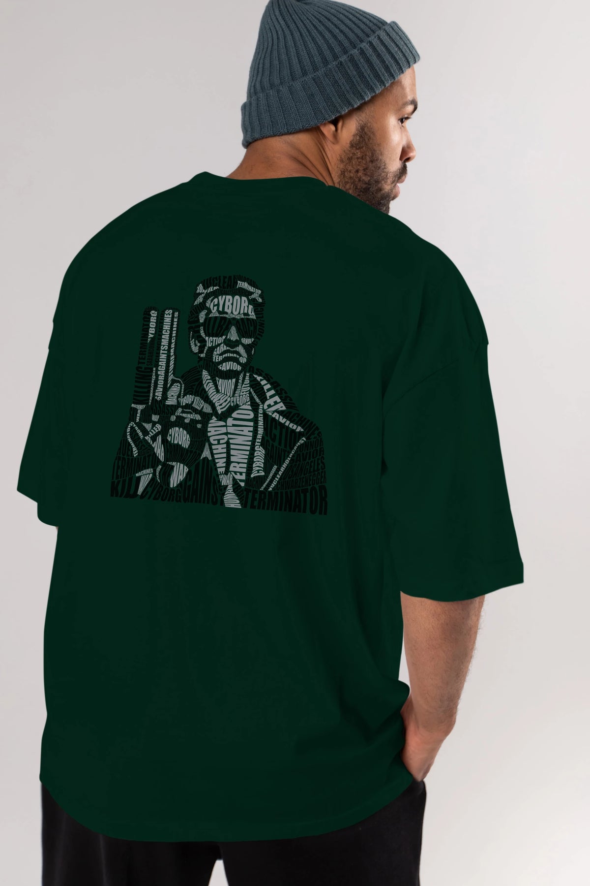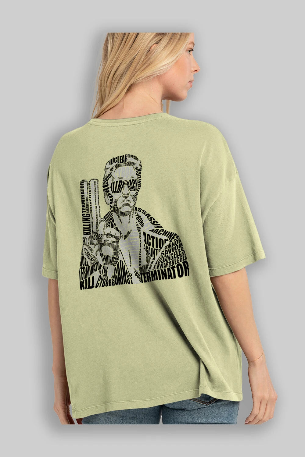 Terminator Calligram Arka Baskılı Oversize t-shirt %100 pamuk Erkek Kadın Unisex