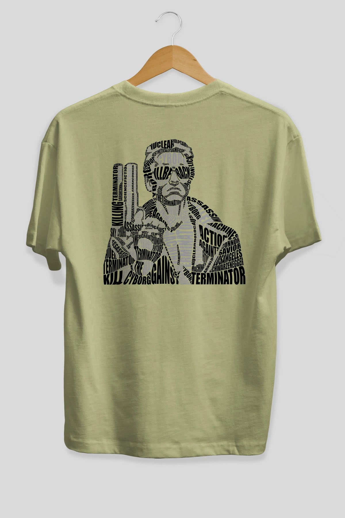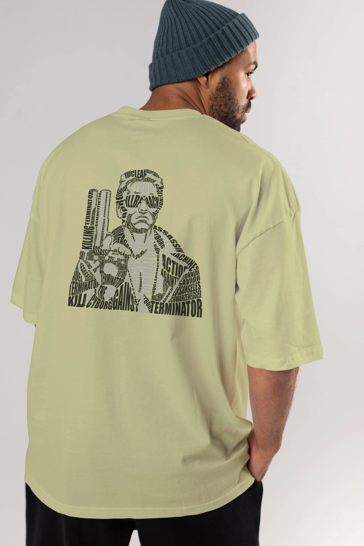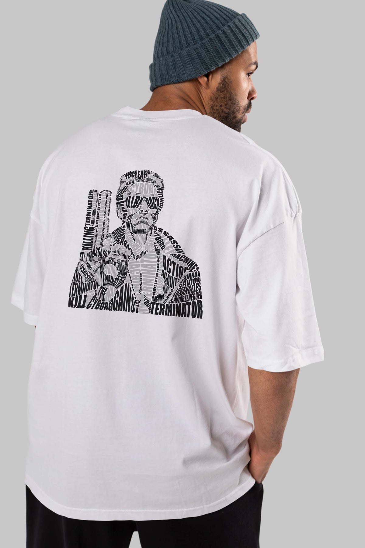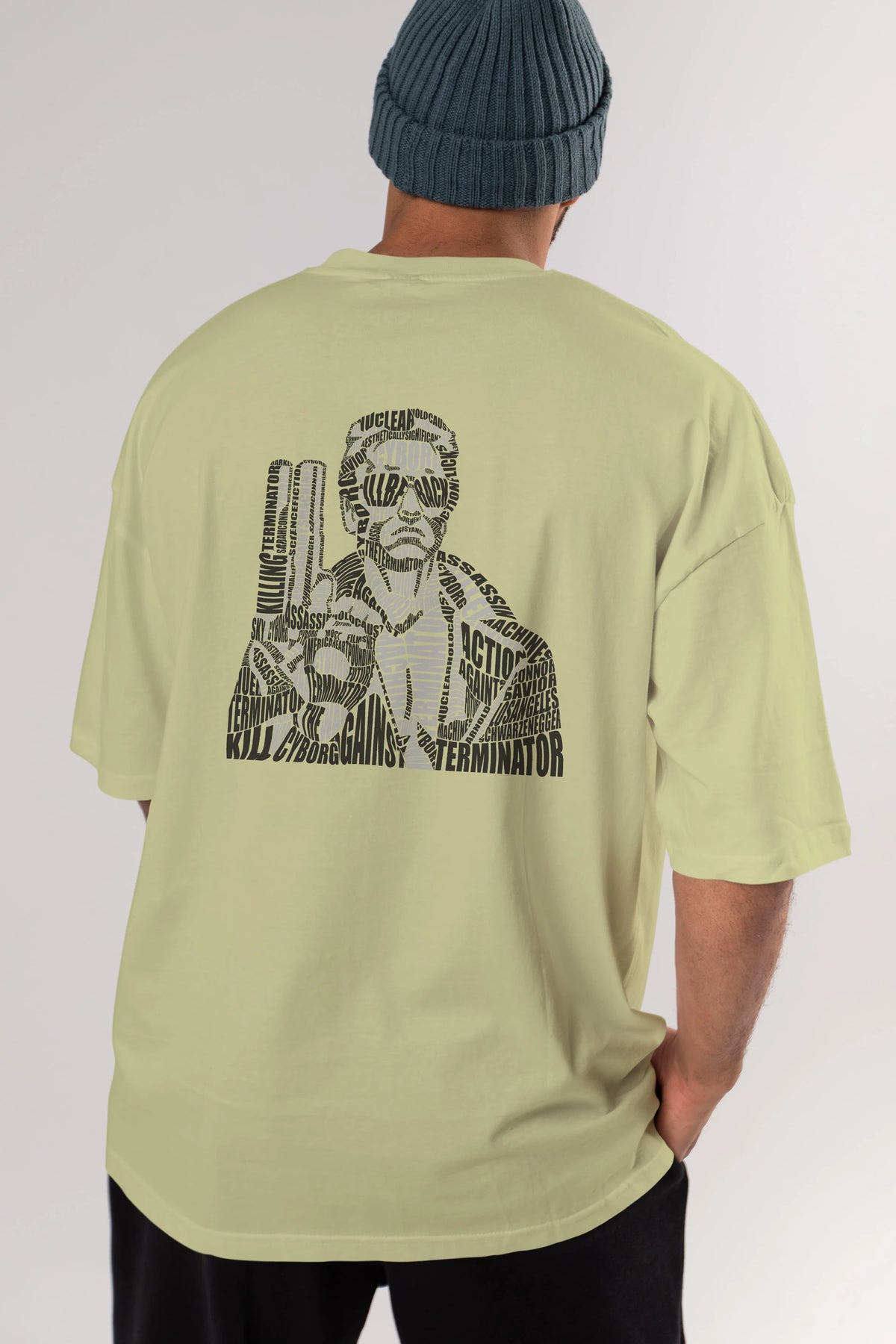Terminator Calligram Arka Baskılı Oversize t-shirt %100 pamuk Erkek Kadın Unisex
