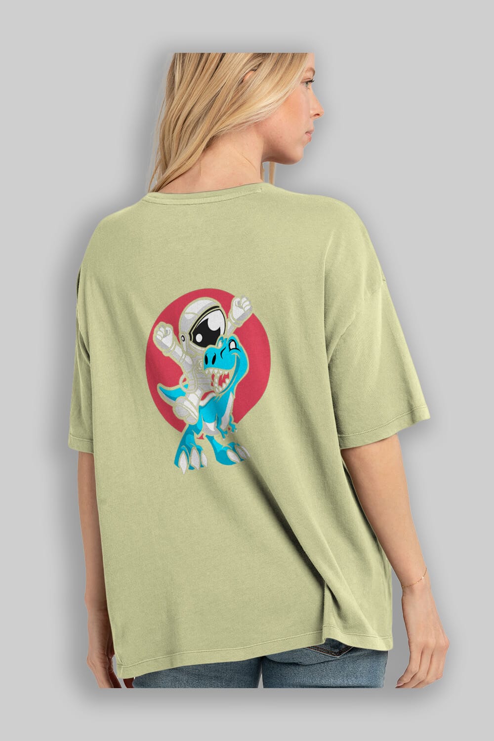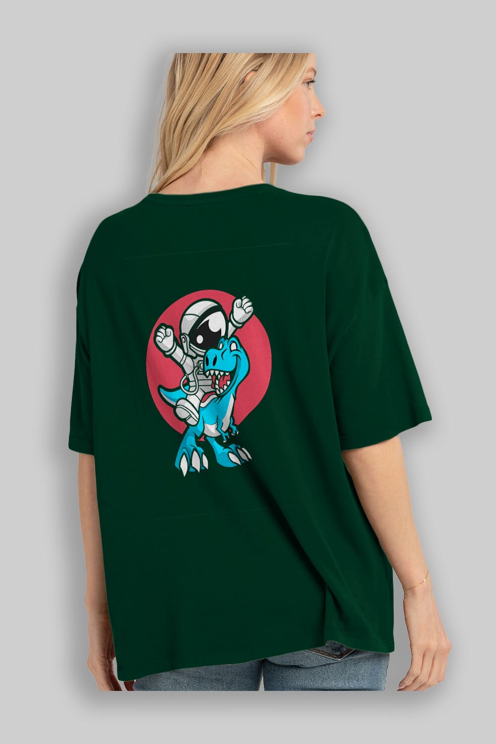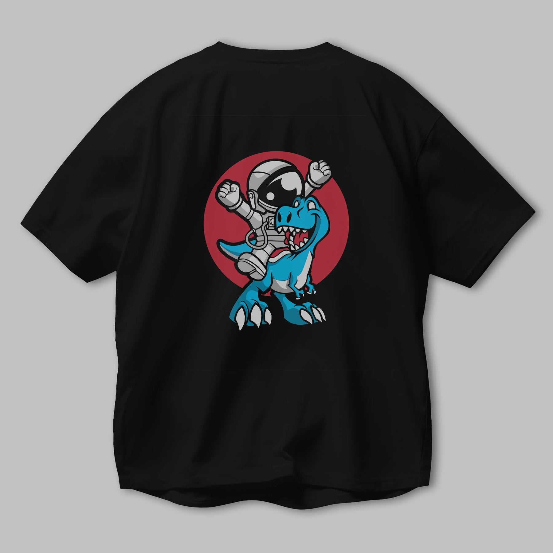 Astronaut Dino Arka Baskılı Oversize t-shirt Erkek Kadın Unisex %100 Pamuk tişort