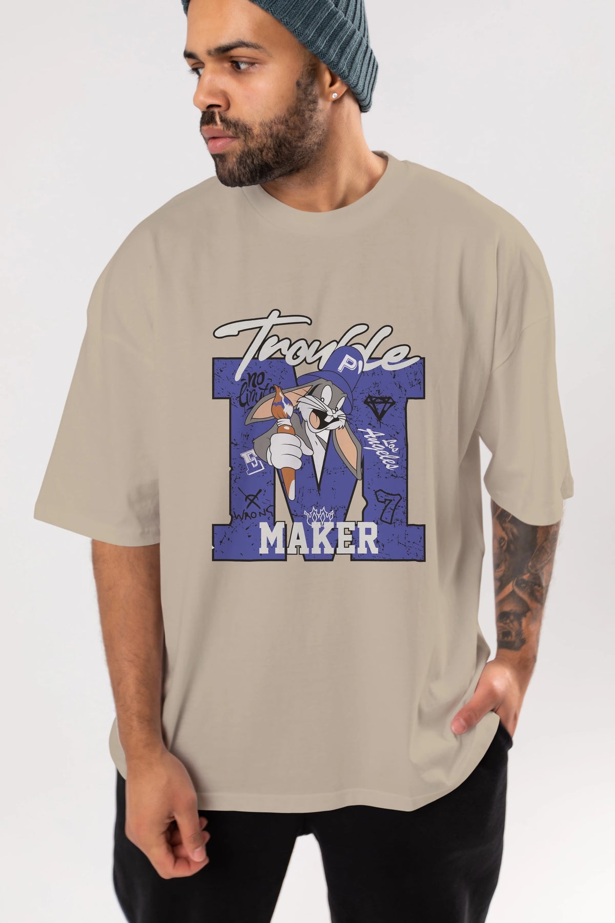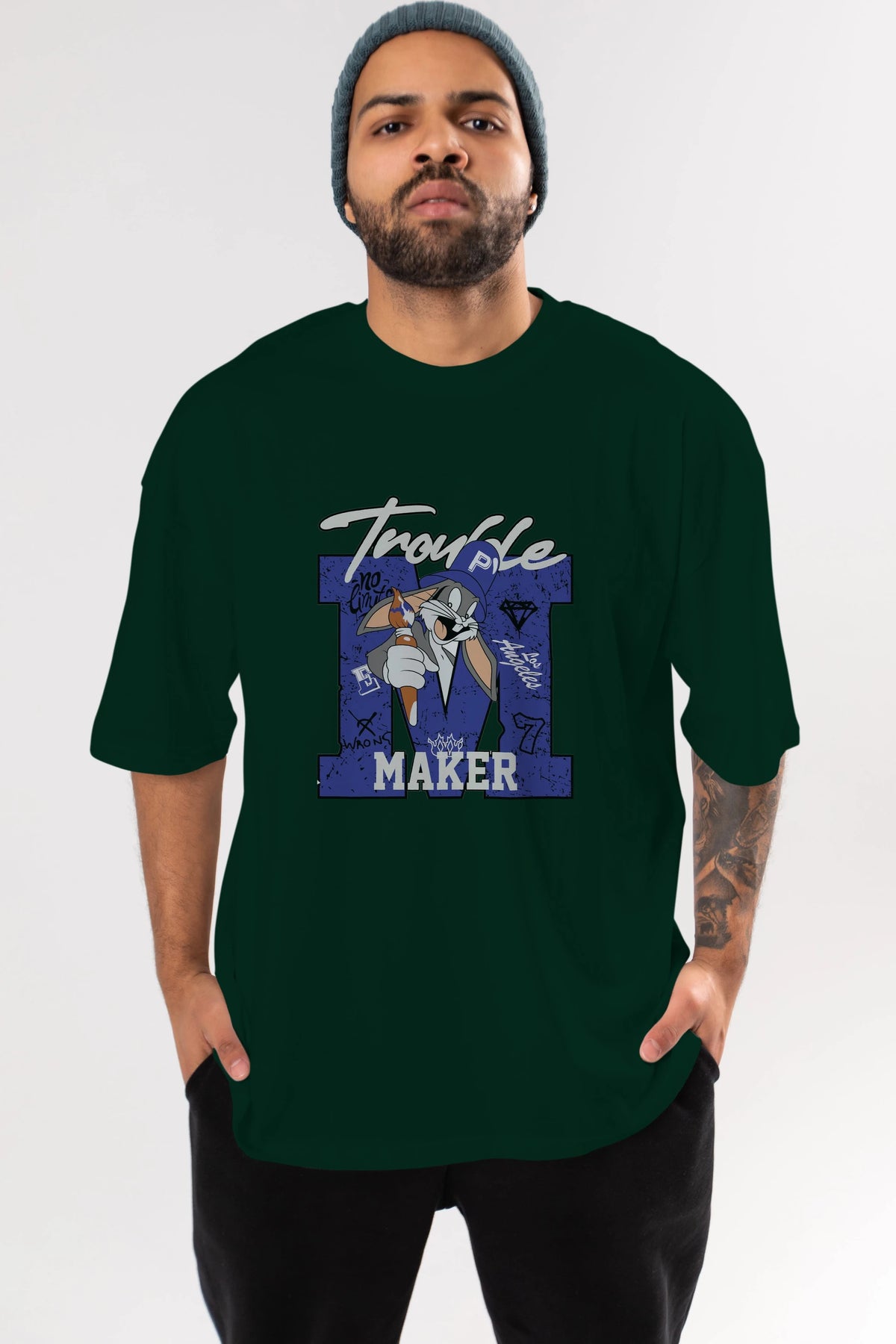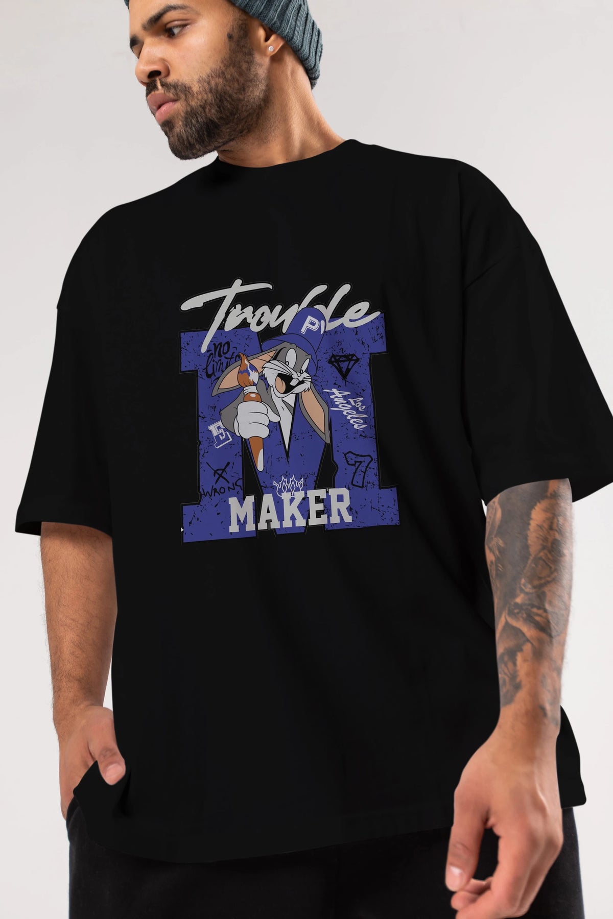 Unisex Baskılı Oversize t-shirt, gardırobunuza mükemmel bir ektir. Yumuşak ve hafif kumaştan üretilen bu şık tişort, kısa kollu ve Oversize uyumu ile tamamlanan klasik bir tasarımına sahiptir. Canlı baskılı grafikler, kalabalığın arasından şık bir şekilde sıyrılmanızı sağlayacaktır. Günlük giyim veya özel günler için mükemmel olan bu çok yönlü tişört, kısa sürede favorilerinizden biri haline gelecektir.