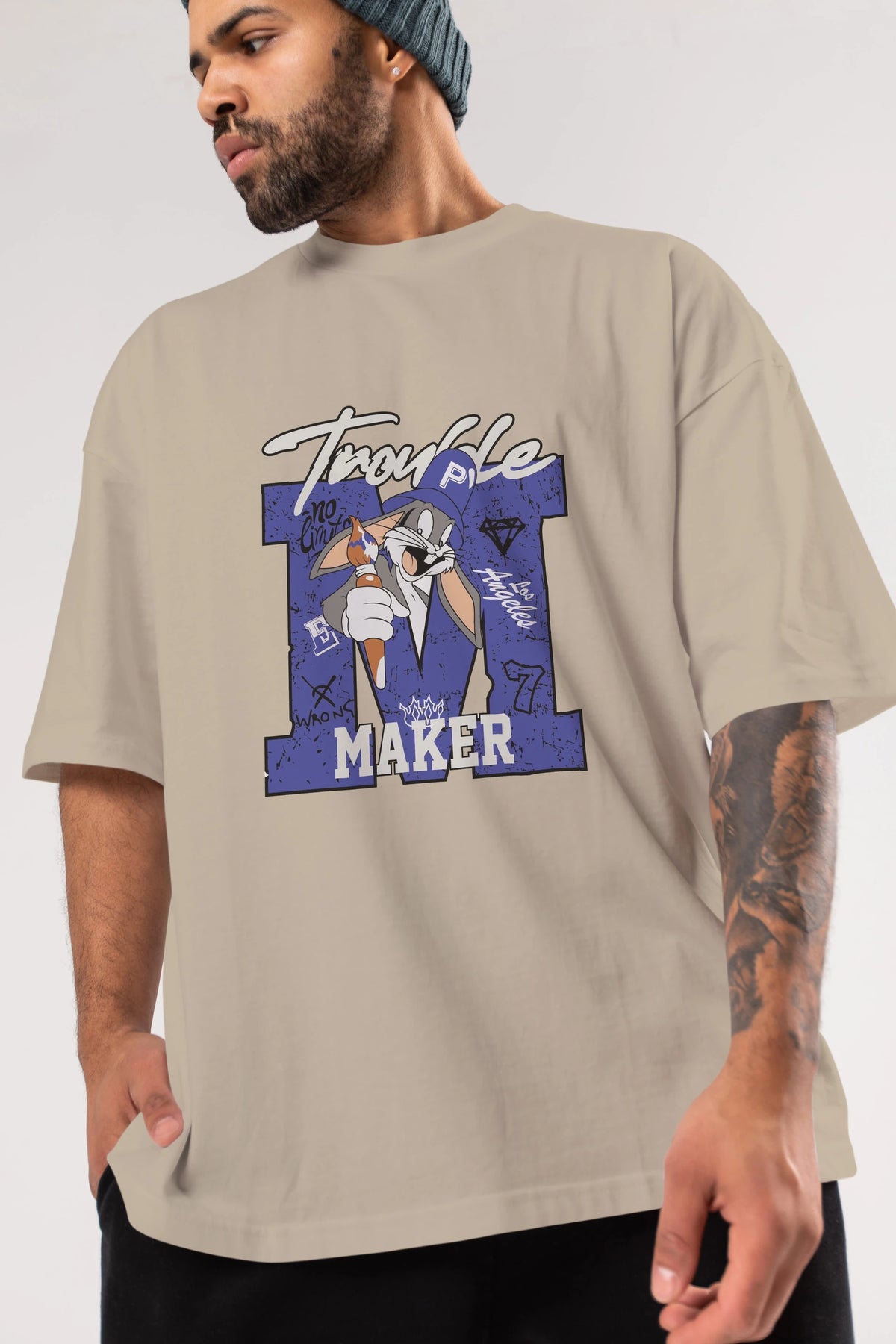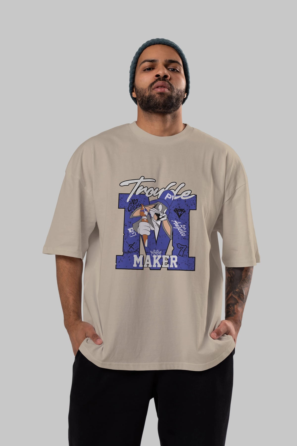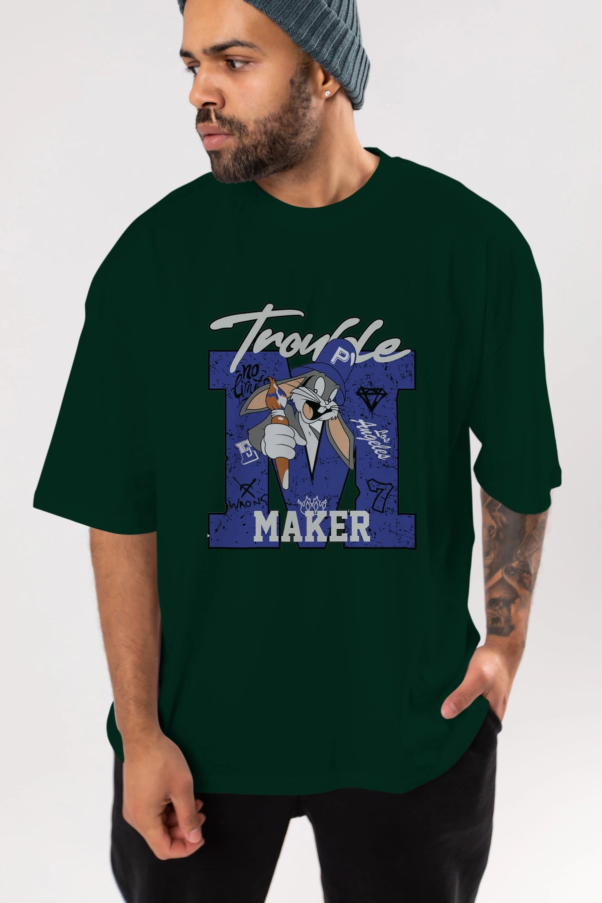 Unisex Baskılı Oversize t-shirt, gardırobunuza mükemmel bir ektir. Yumuşak ve hafif kumaştan üretilen bu şık tişort, kısa kollu ve Oversize uyumu ile tamamlanan klasik bir tasarımına sahiptir. Canlı baskılı grafikler, kalabalığın arasından şık bir şekilde sıyrılmanızı sağlayacaktır. Günlük giyim veya özel günler için mükemmel olan bu çok yönlü tişört, kısa sürede favorilerinizden biri haline gelecektir.