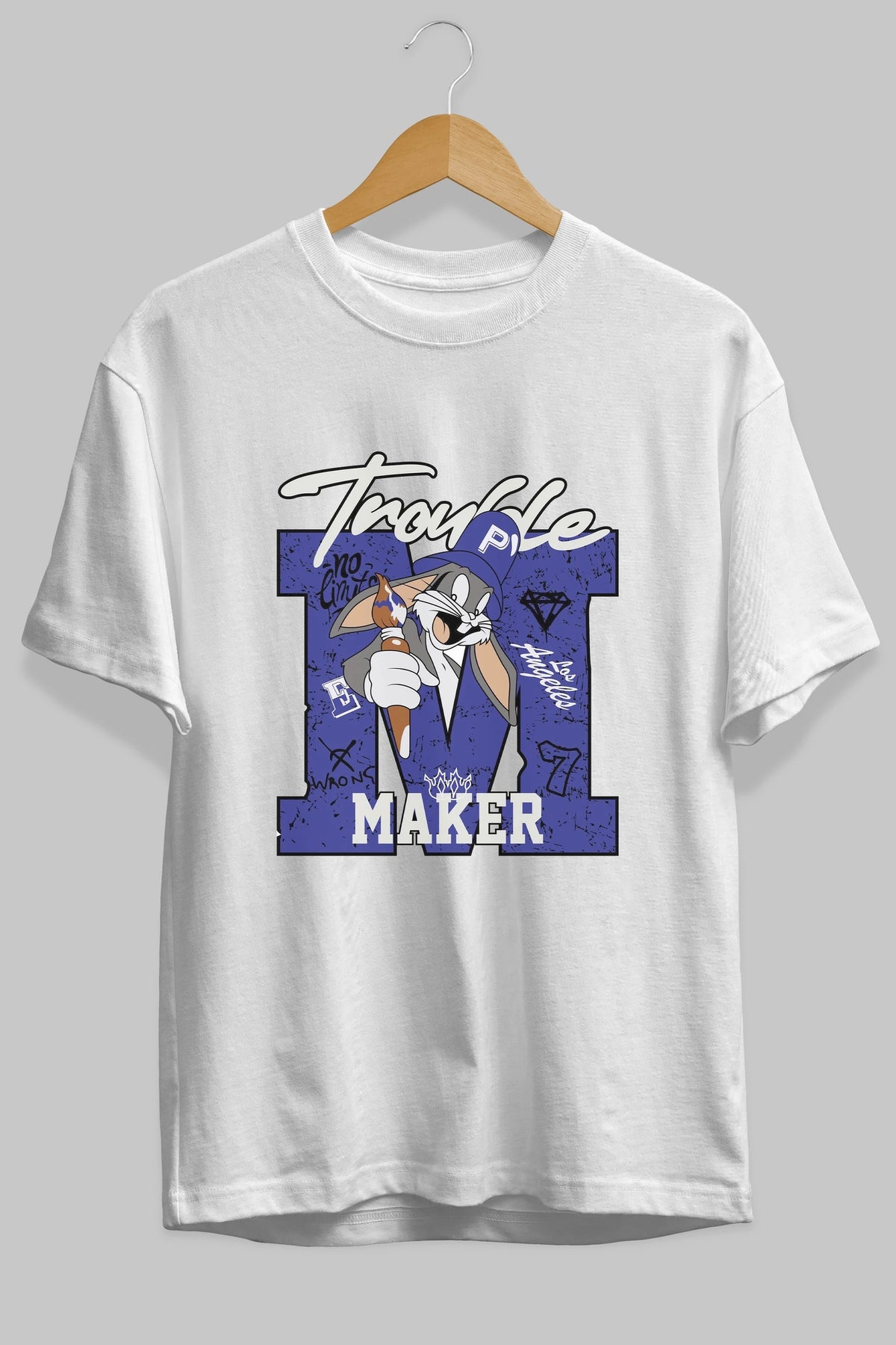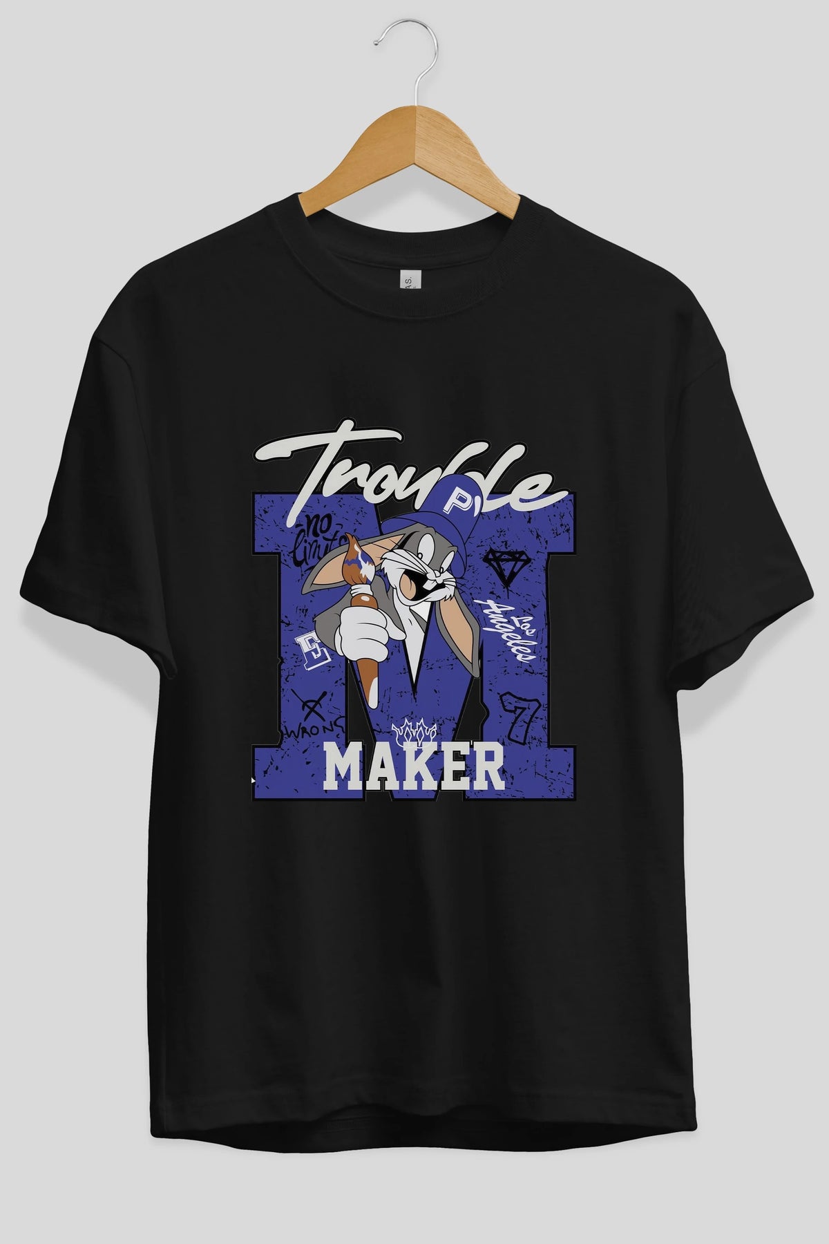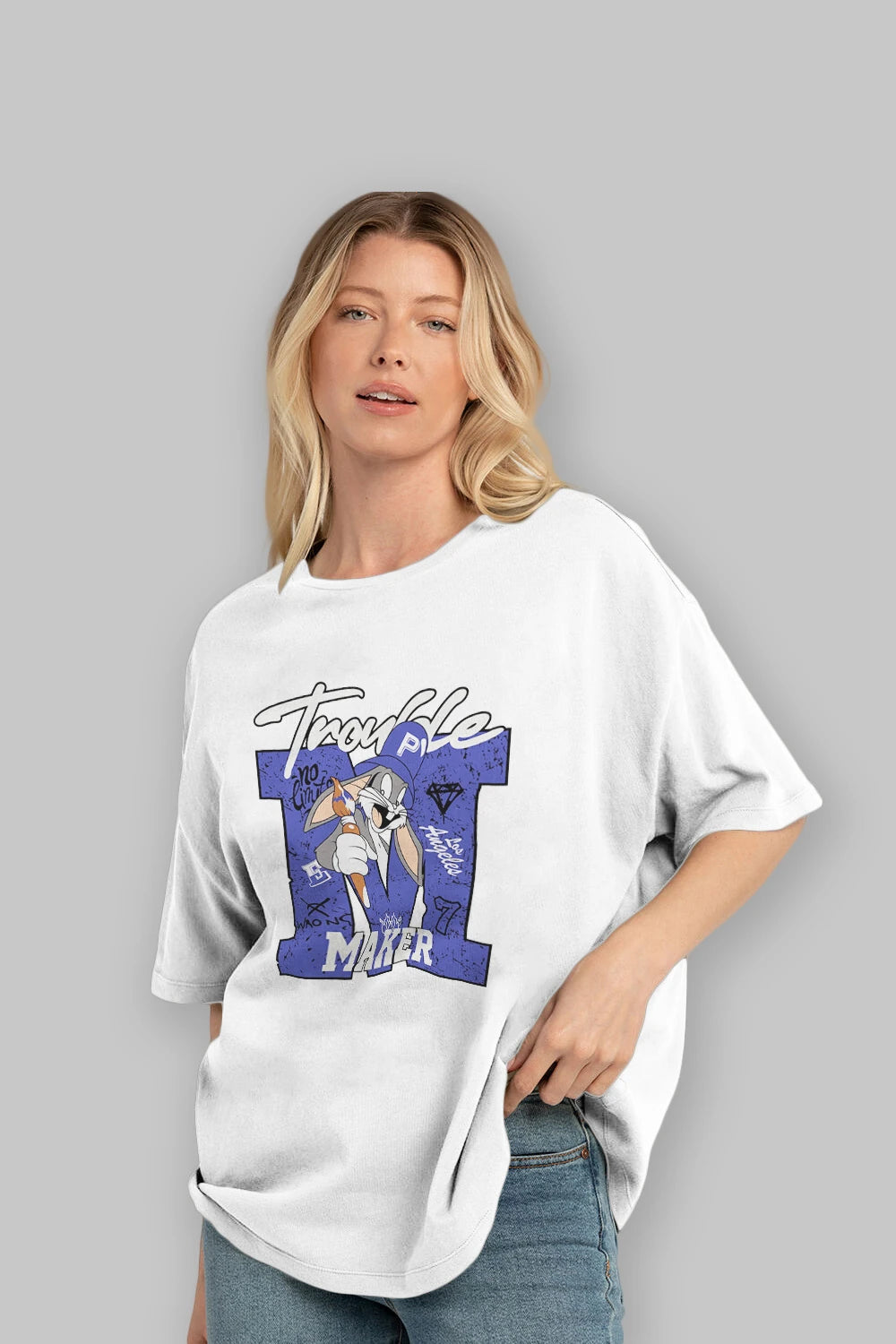 Bugs Bunny Ön Baskılı Oversize t-shirt Erkek Kadın Unisex %100 Pamuk Bisiklet Yaka tişort