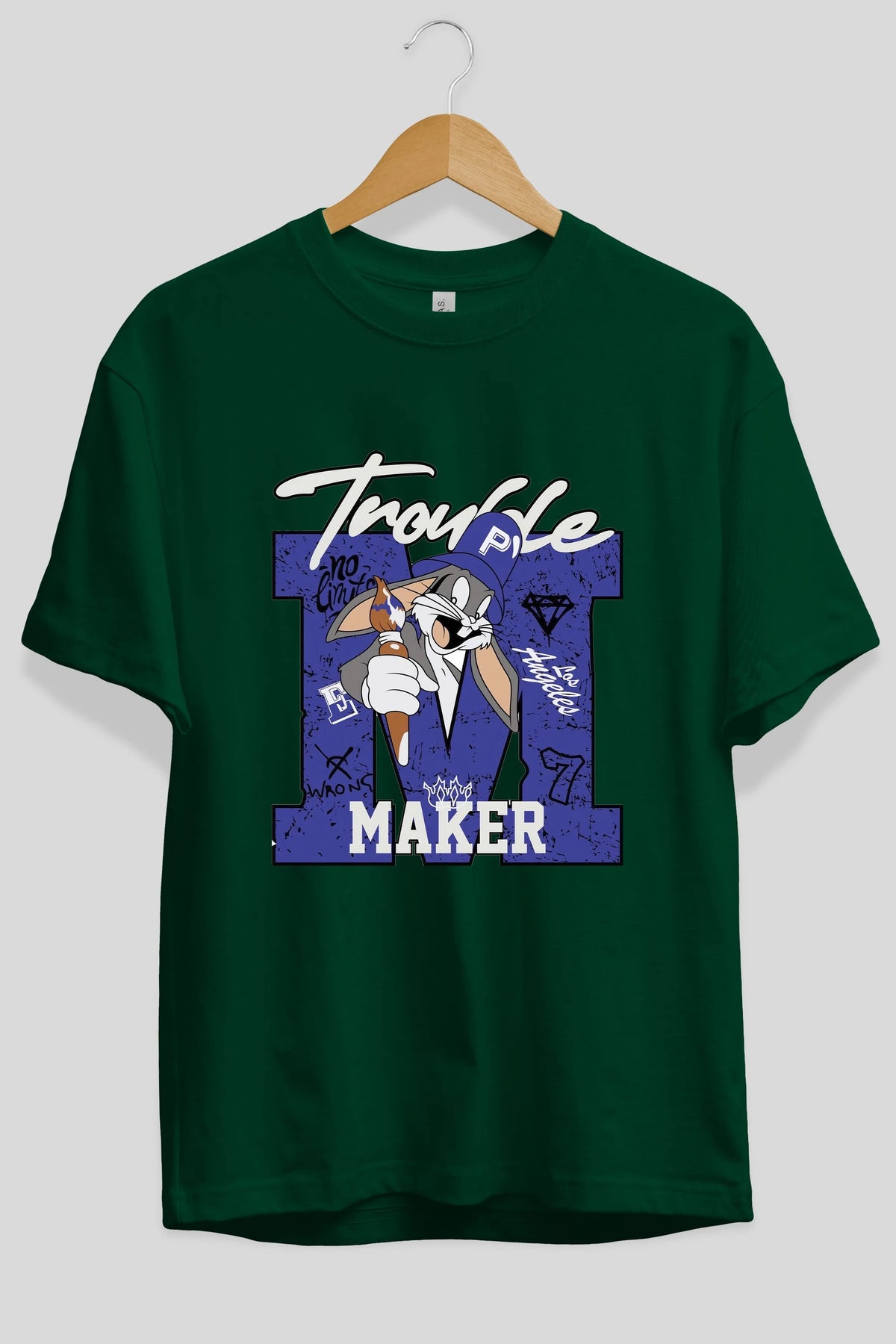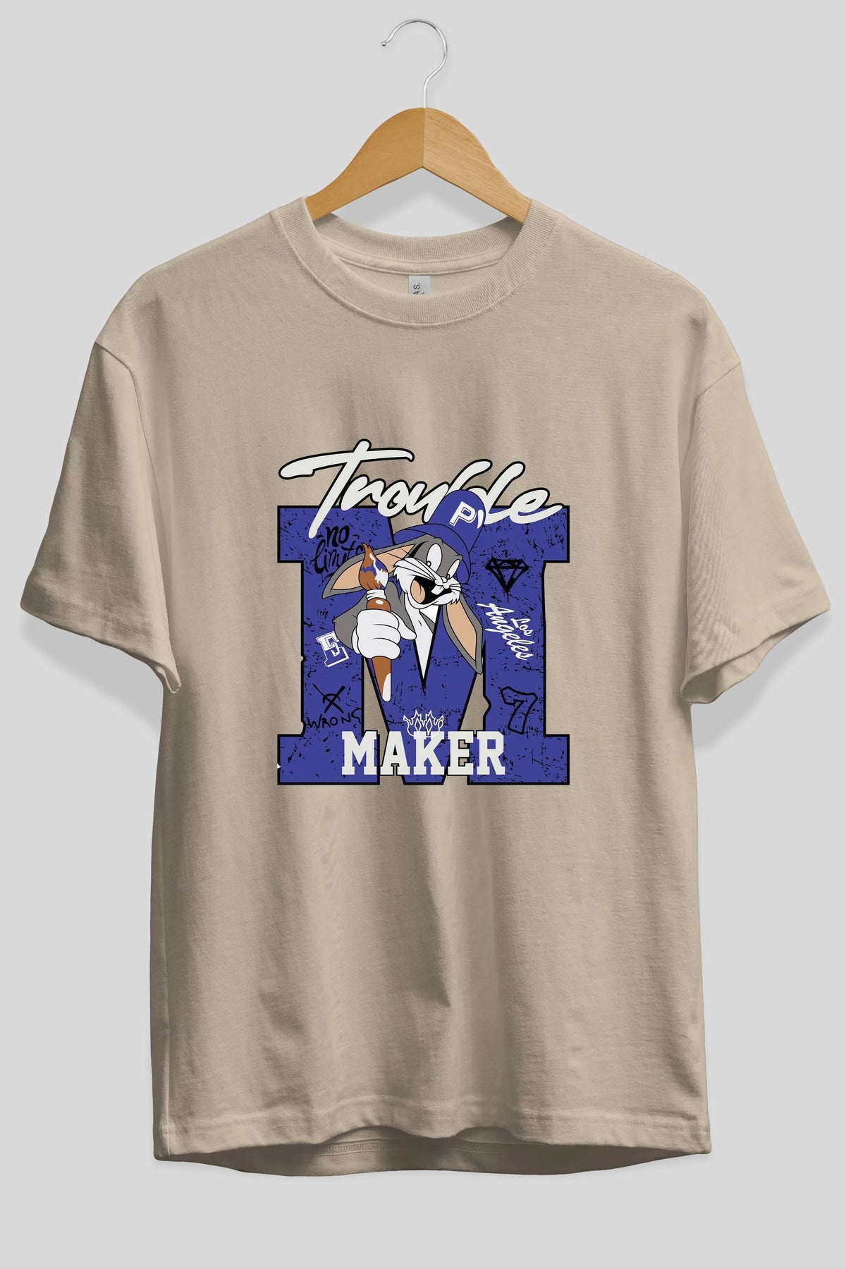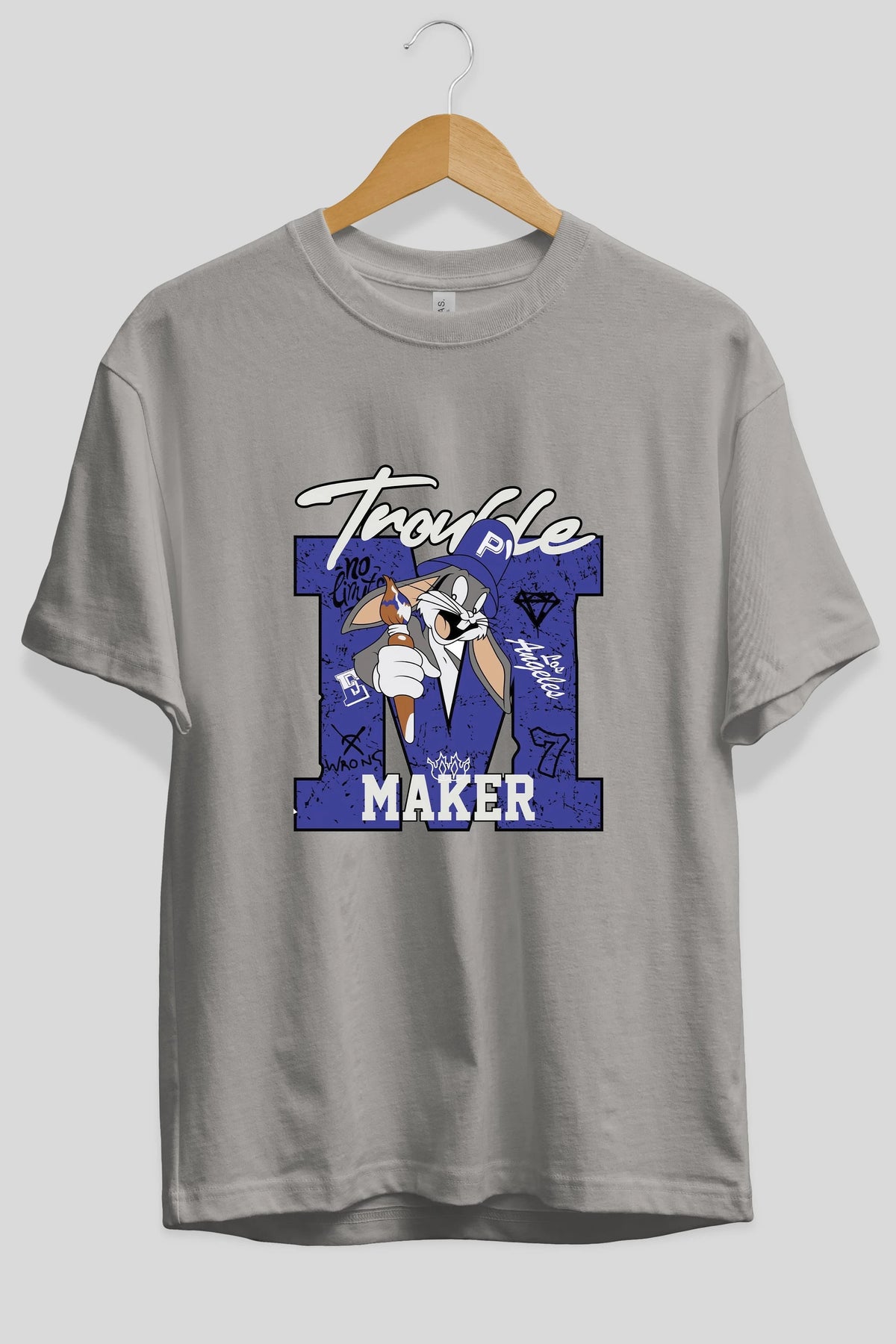 Bugs Bunny Ön Baskılı Oversize t-shirt Erkek Kadın Unisex %100 Pamuk Bisiklet Yaka tişort