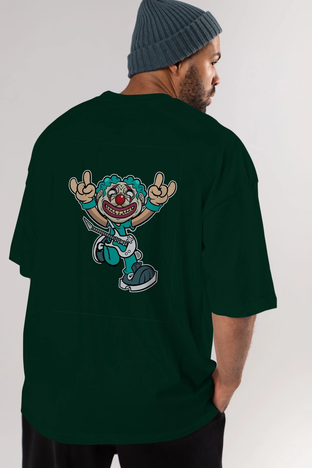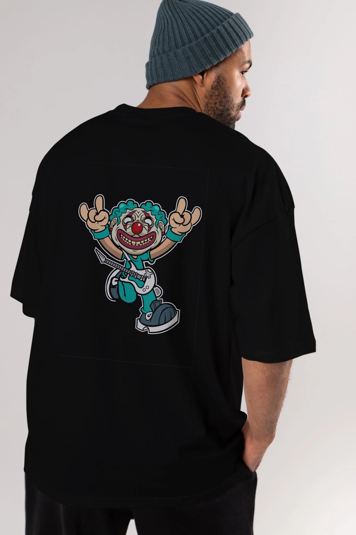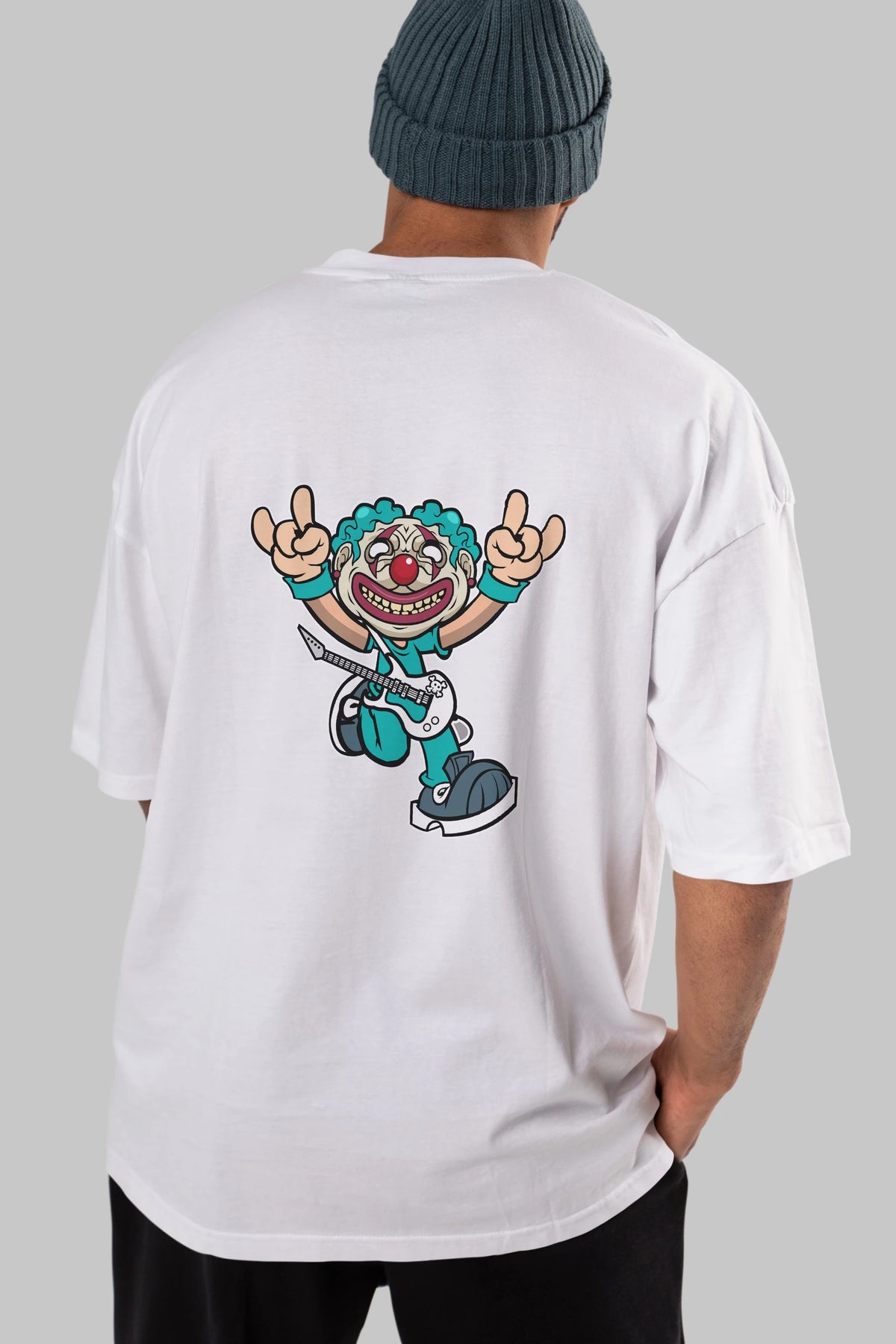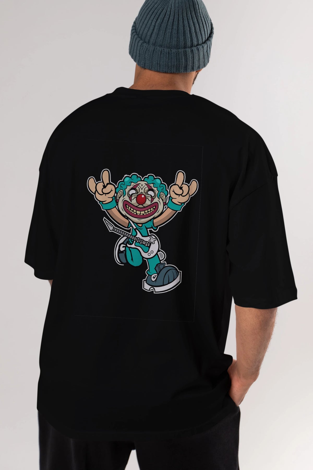 Clown Punk Arka Baskılı Oversize t-shirt Erkek Kadın Unisex %100 Pamuk tişort