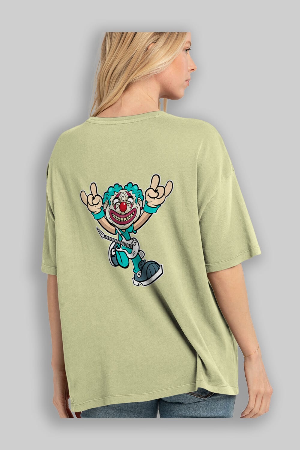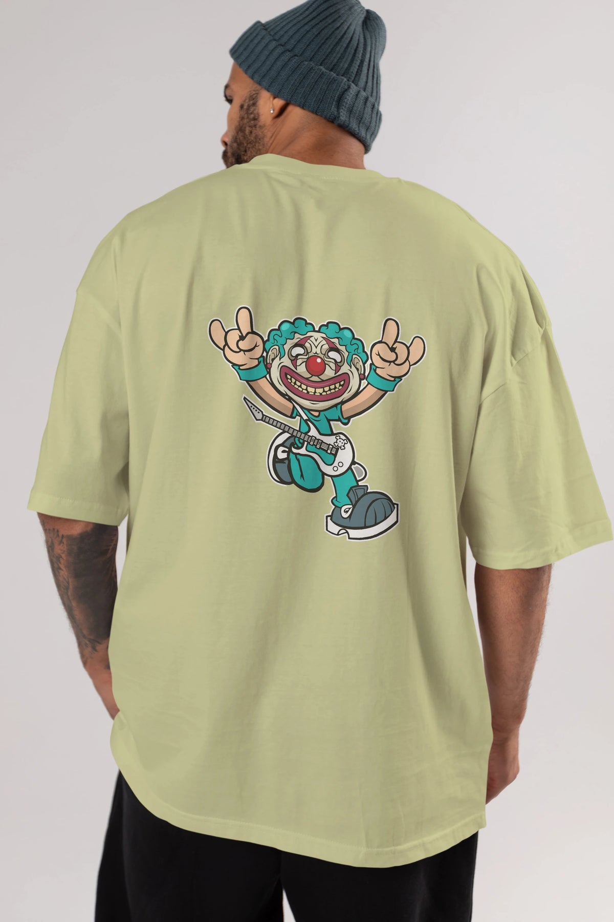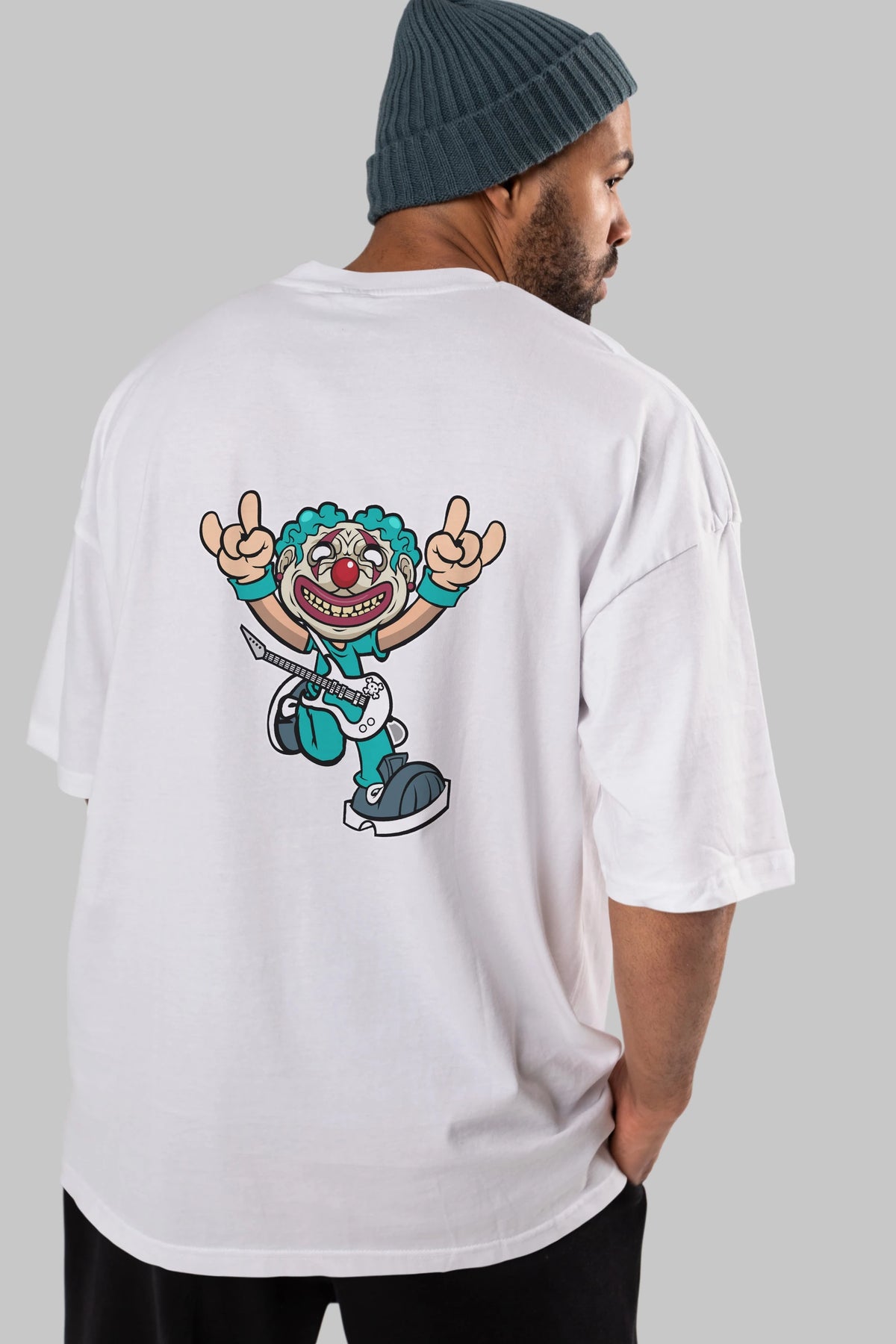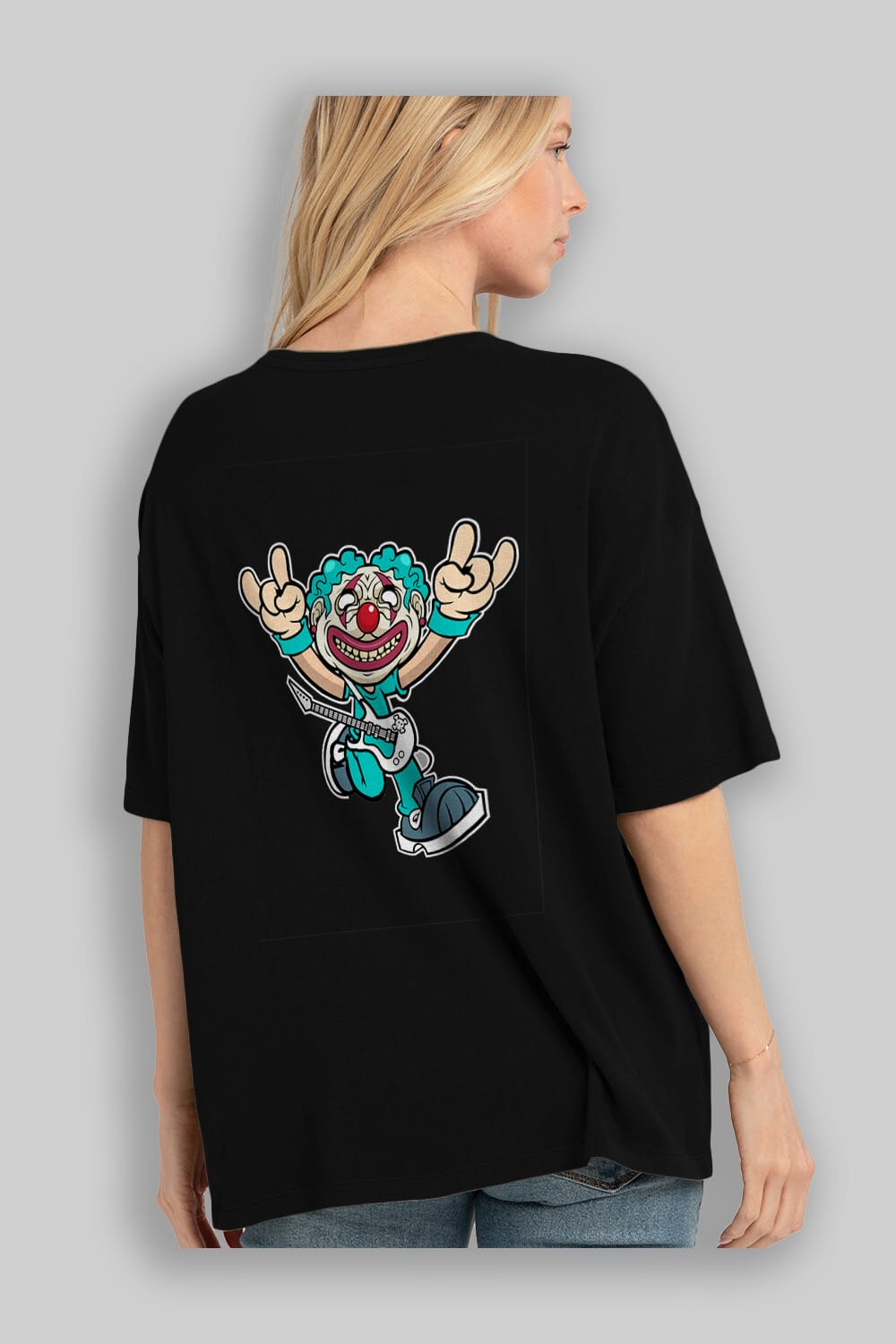 Clown Punk Arka Baskılı Oversize t-shirt Erkek Kadın Unisex %100 Pamuk tişort