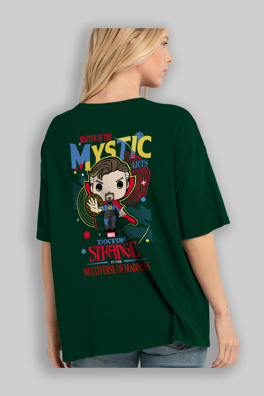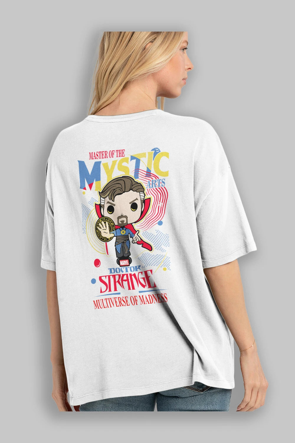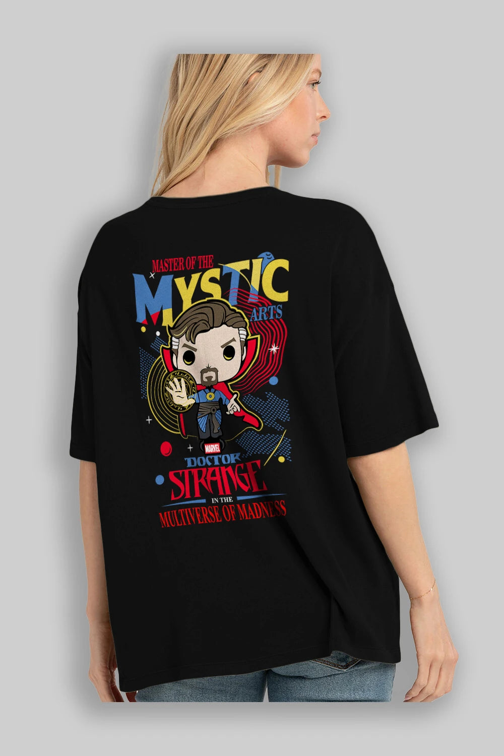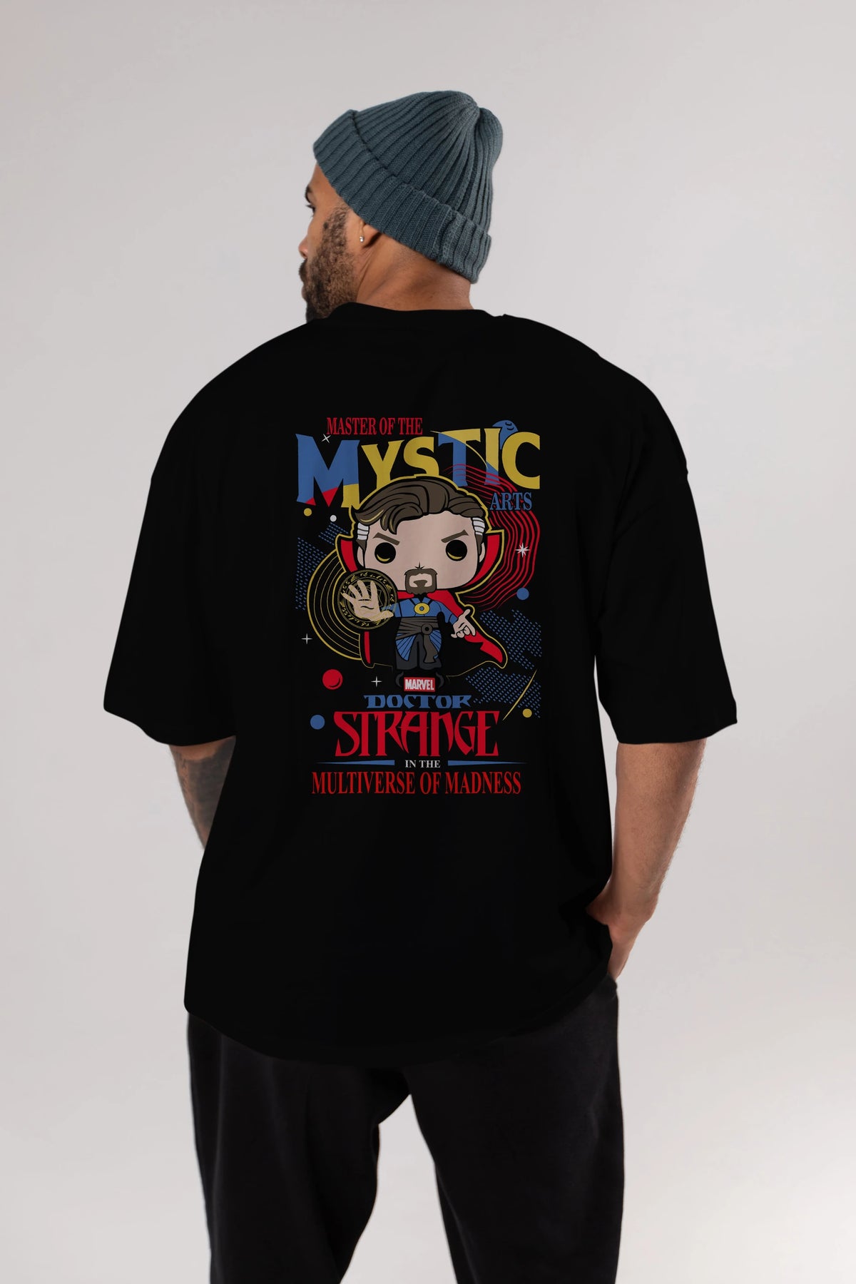 Doctor Strange Arka Baskılı Oversize t-shirt Erkek Kadın Unisex %100 Pamuk Bisiklet Yaka tişort