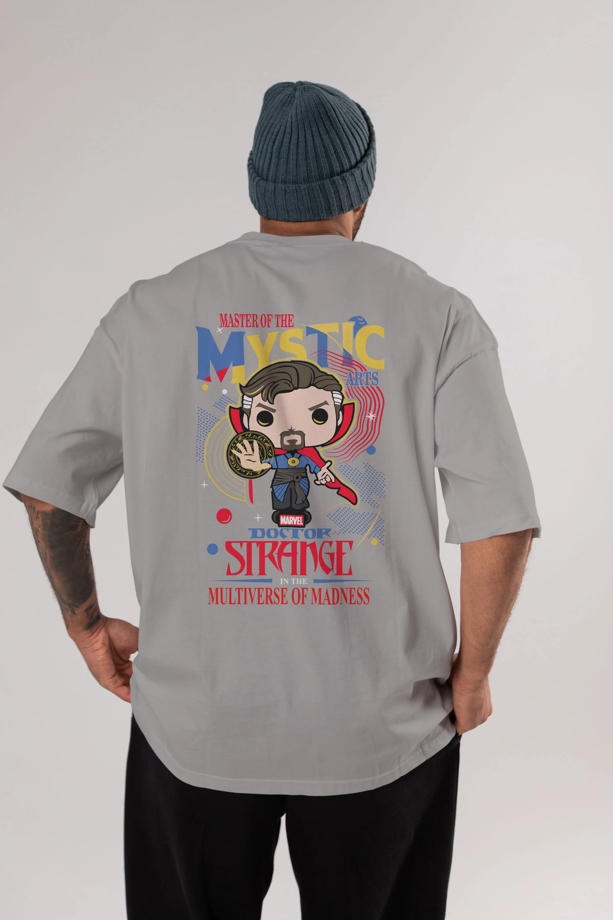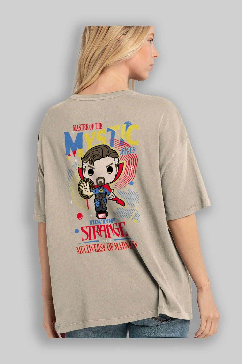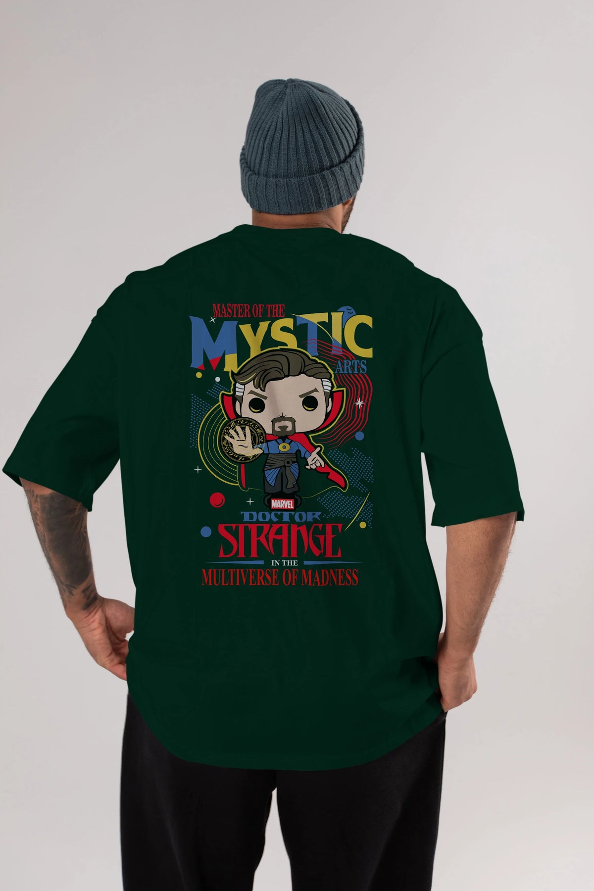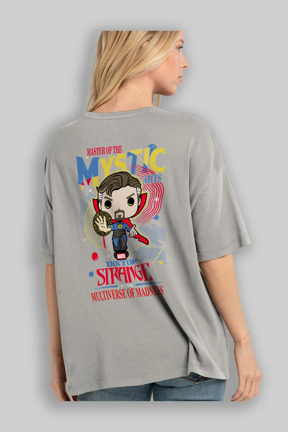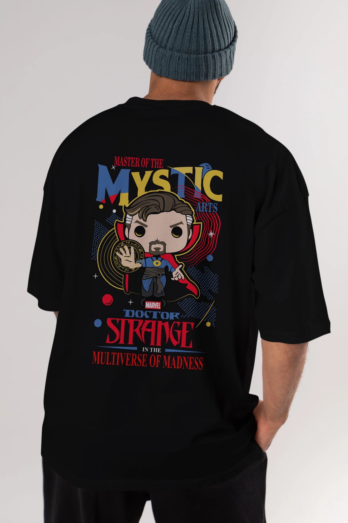 Doctor Strange Arka Baskılı Oversize t-shirt Erkek Kadın Unisex %100 Pamuk Bisiklet Yaka tişort