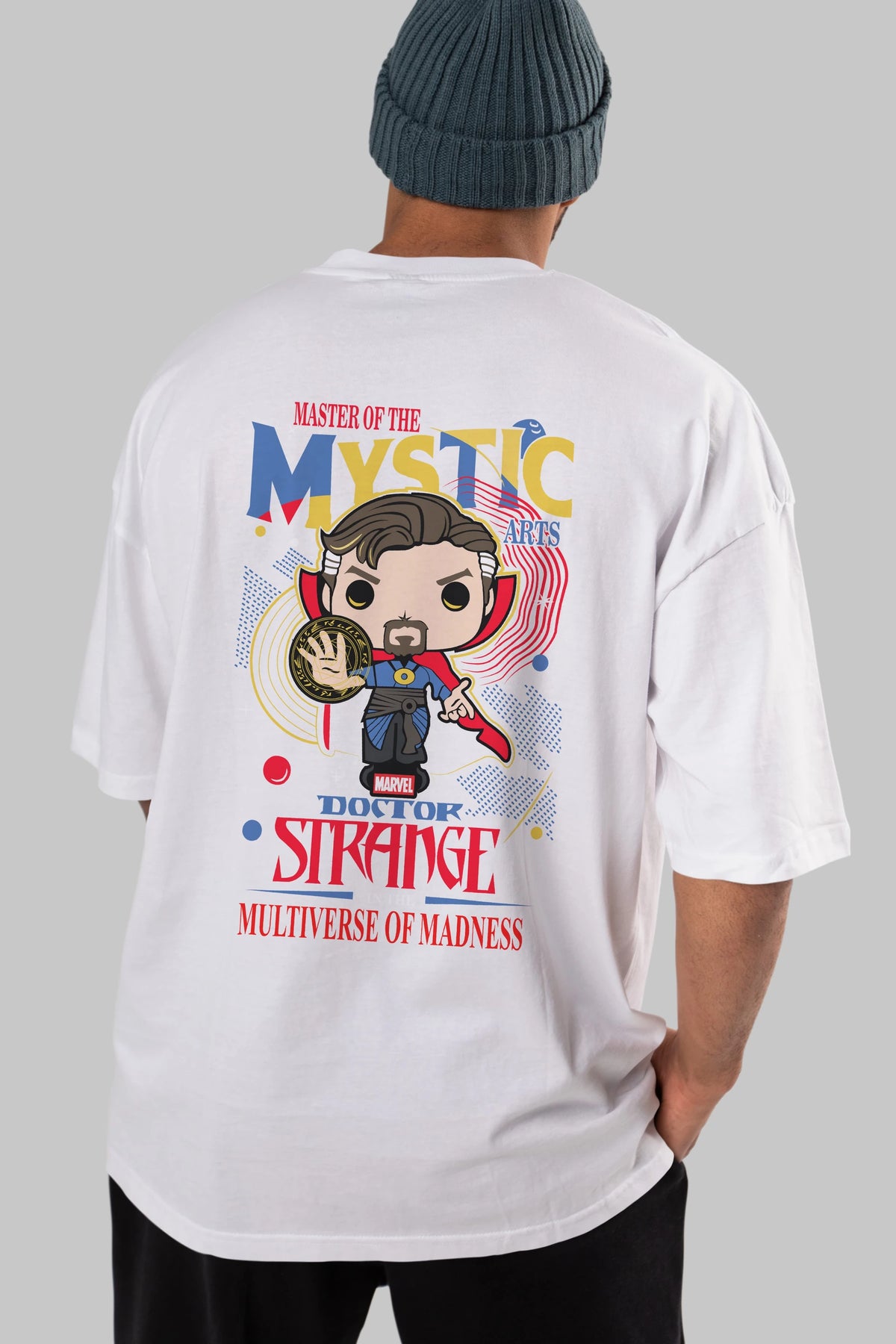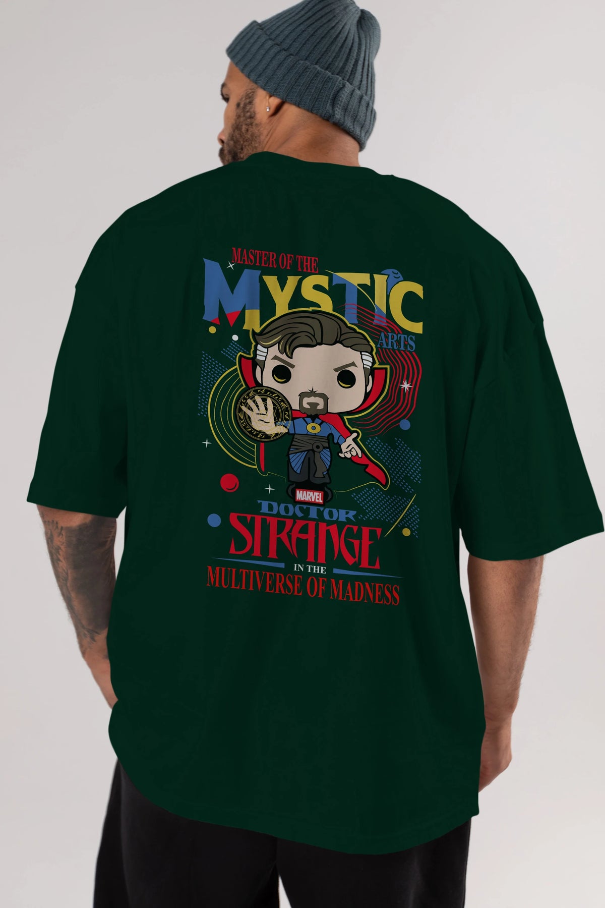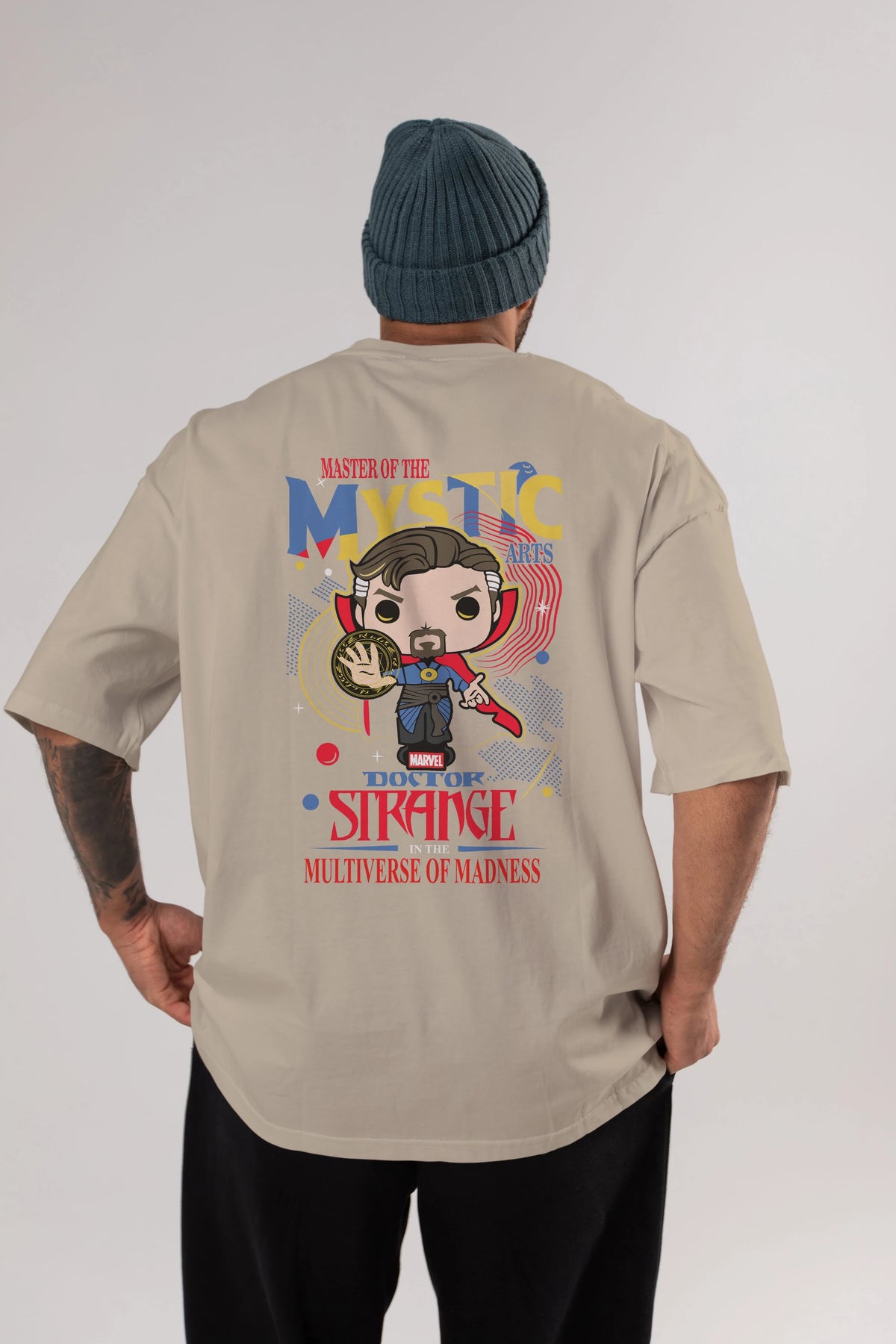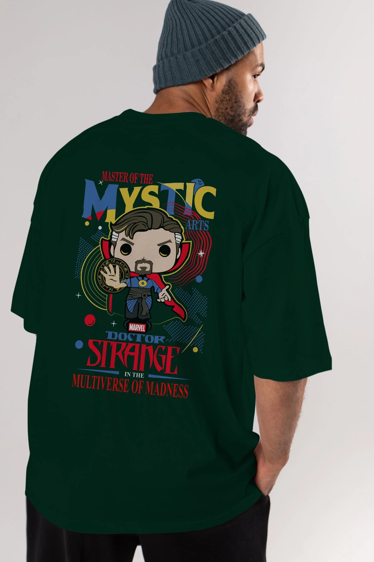 Doctor Strange Arka Baskılı Oversize t-shirt Erkek Kadın Unisex %100 Pamuk Bisiklet Yaka tişort