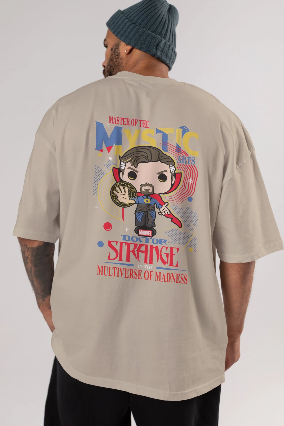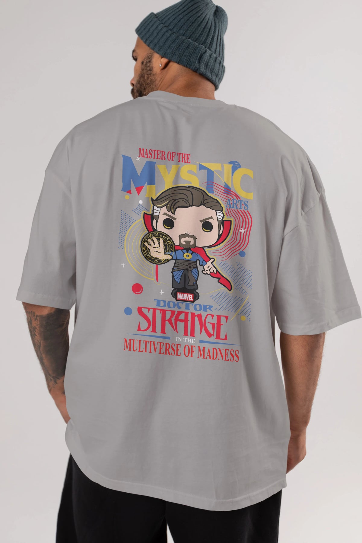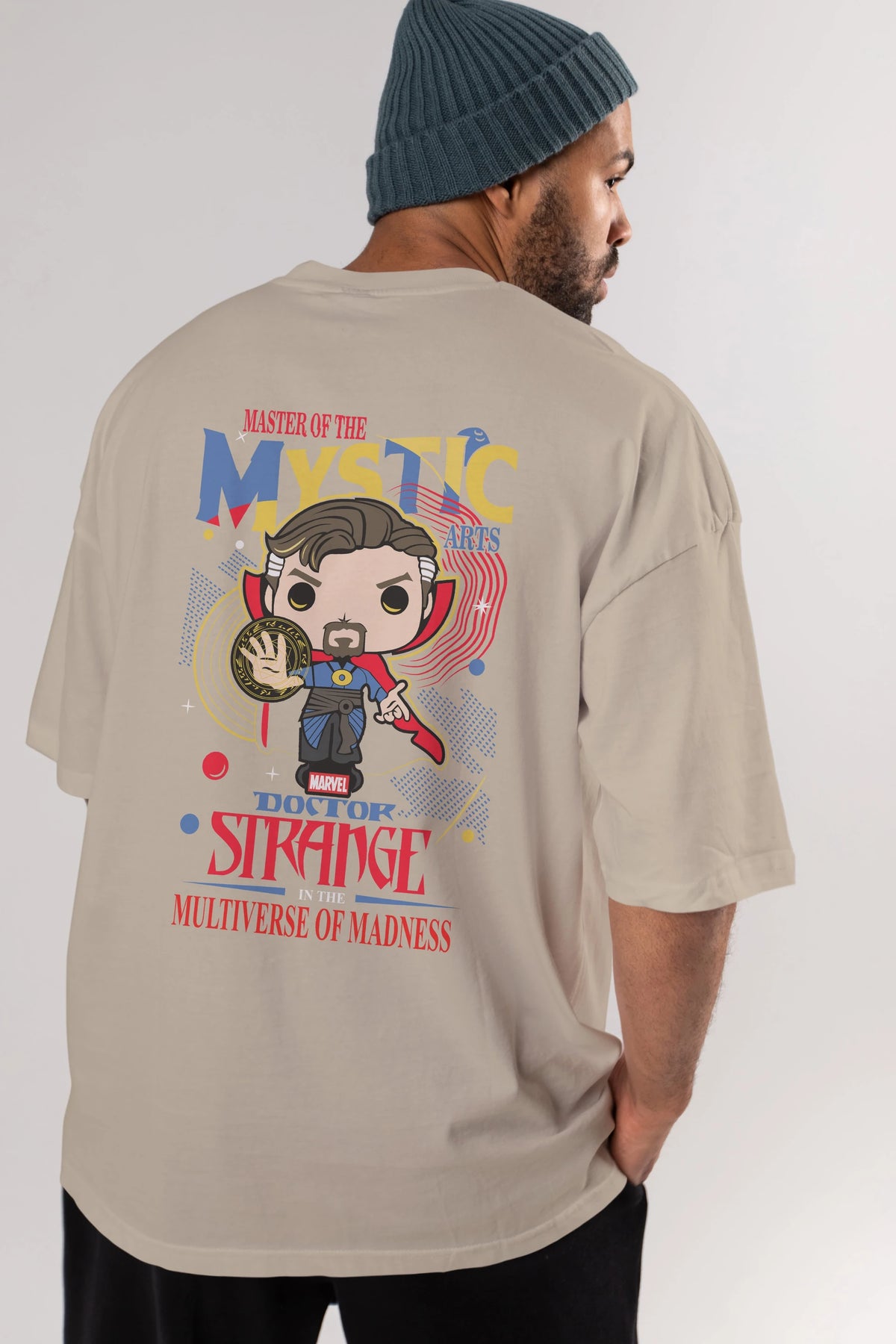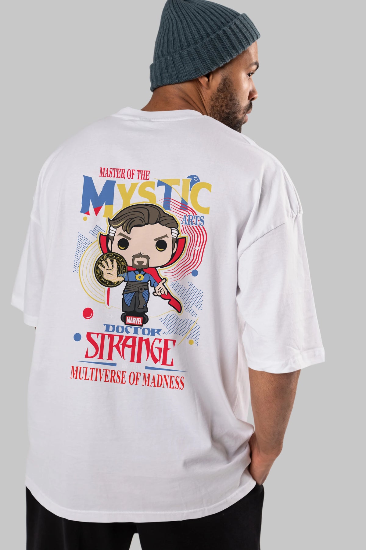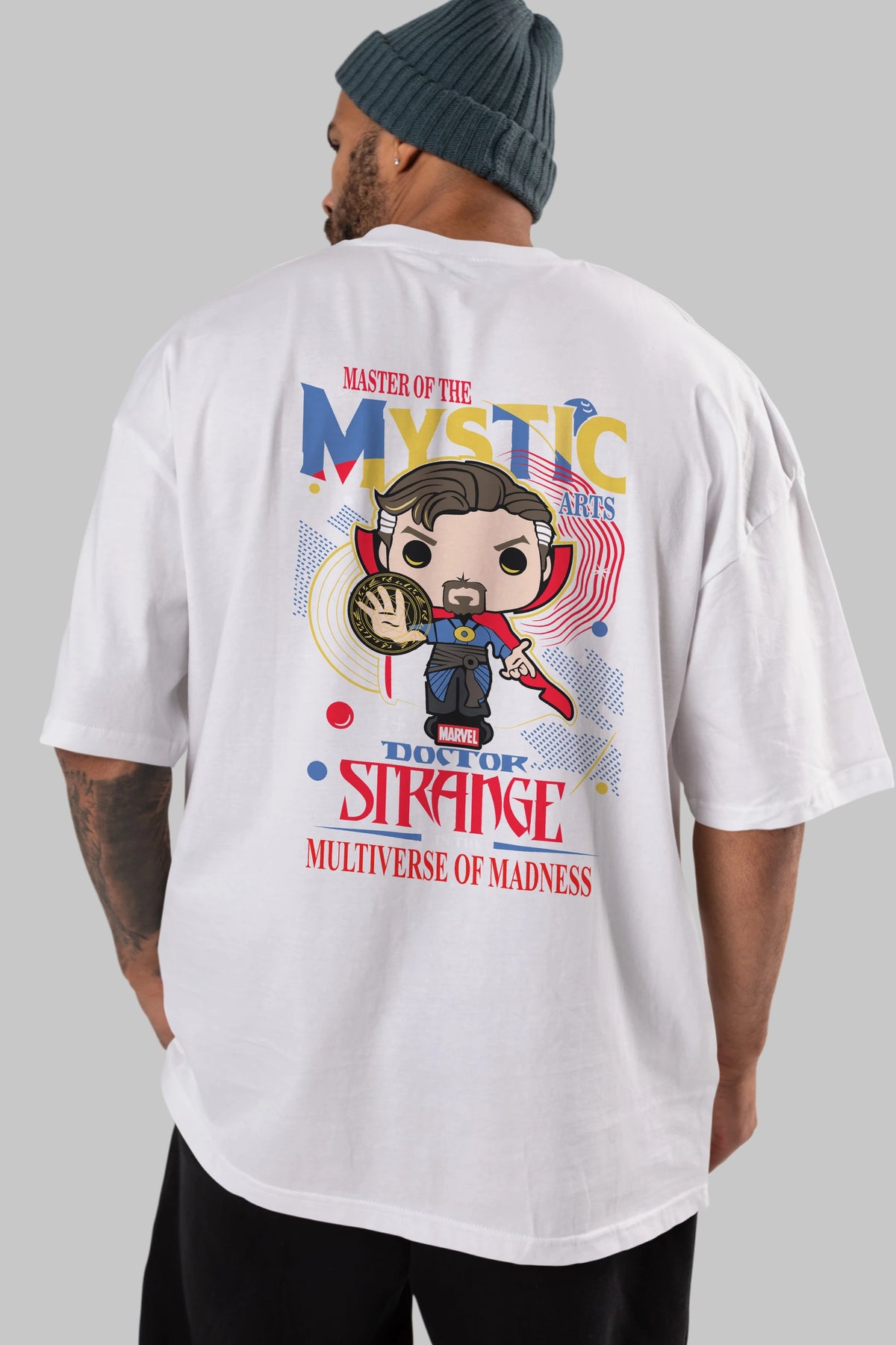 Doctor Strange Arka Baskılı Oversize t-shirt Erkek Kadın Unisex %100 Pamuk Bisiklet Yaka tişort