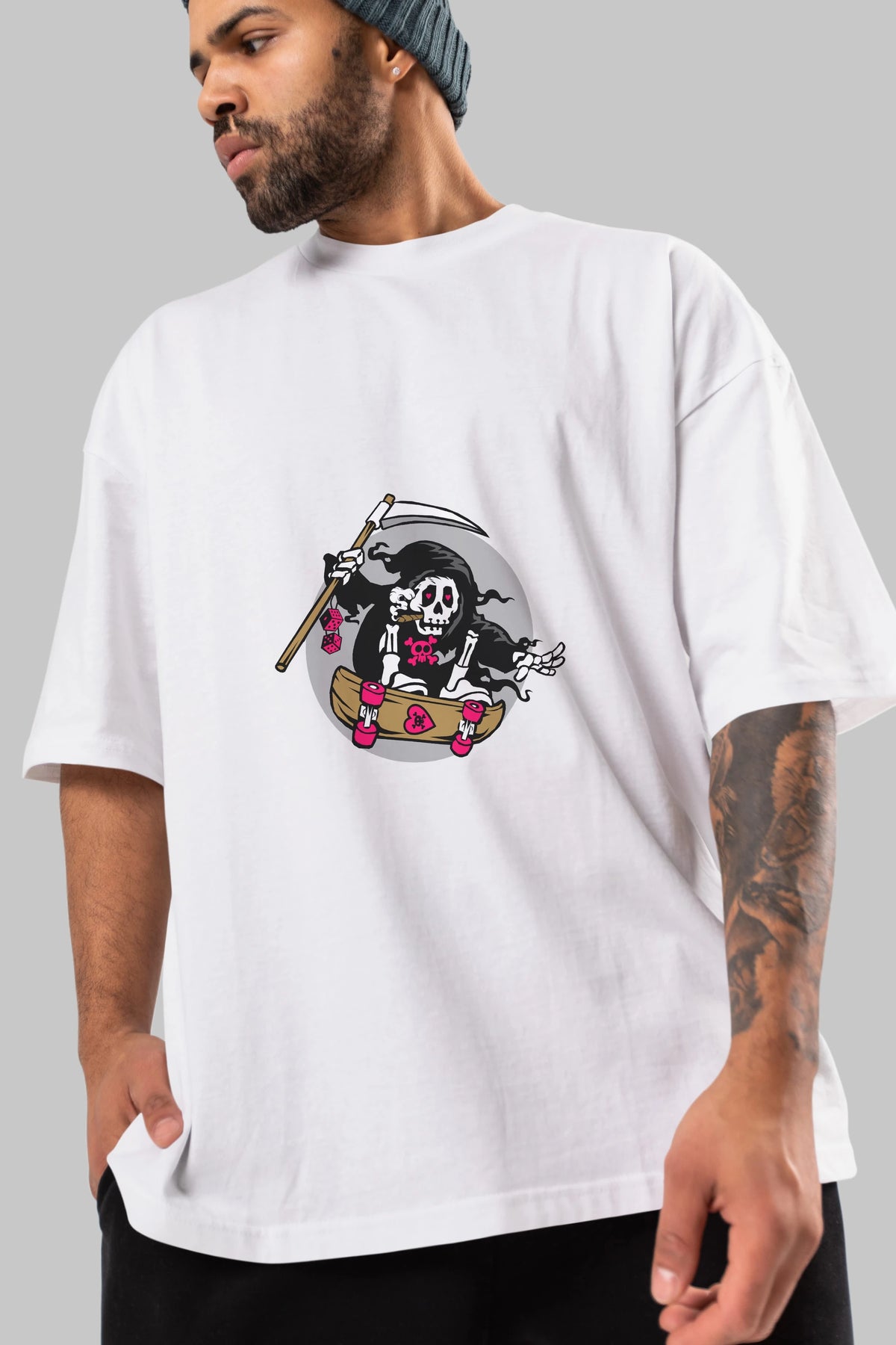Grim Skater Ön Baskılı Oversize t-shirt Erkek Kadın Unisex %100 Pamuk tişort