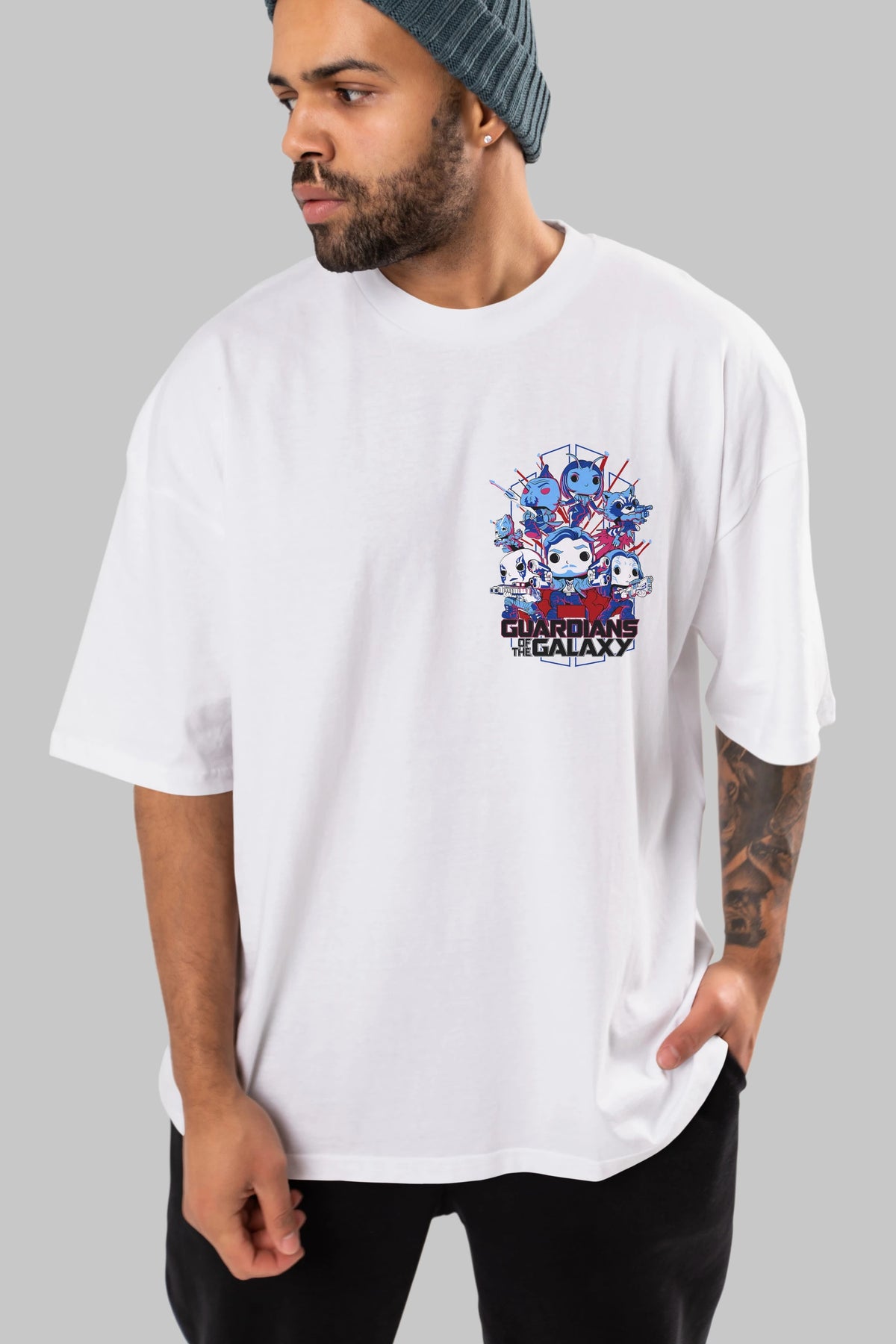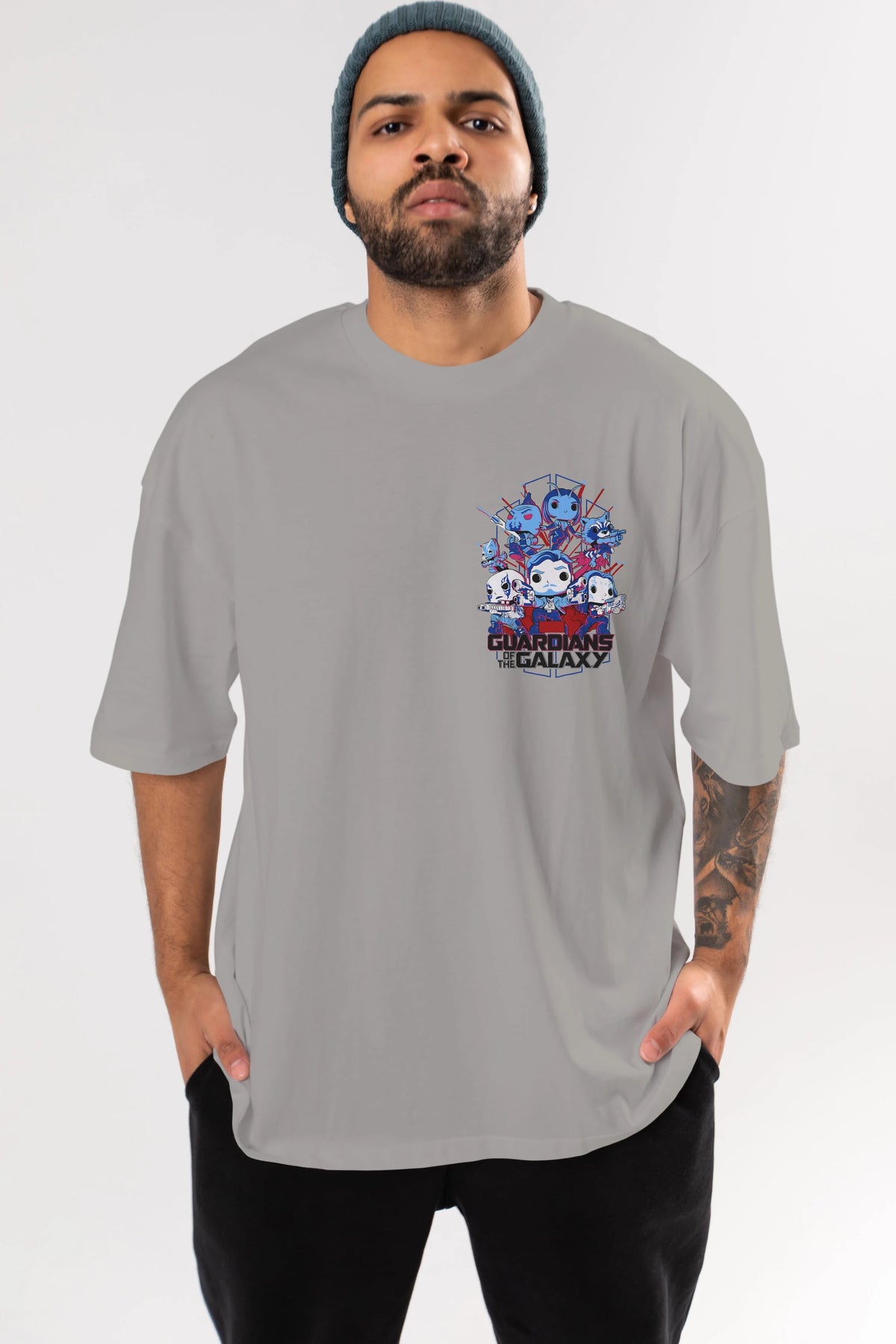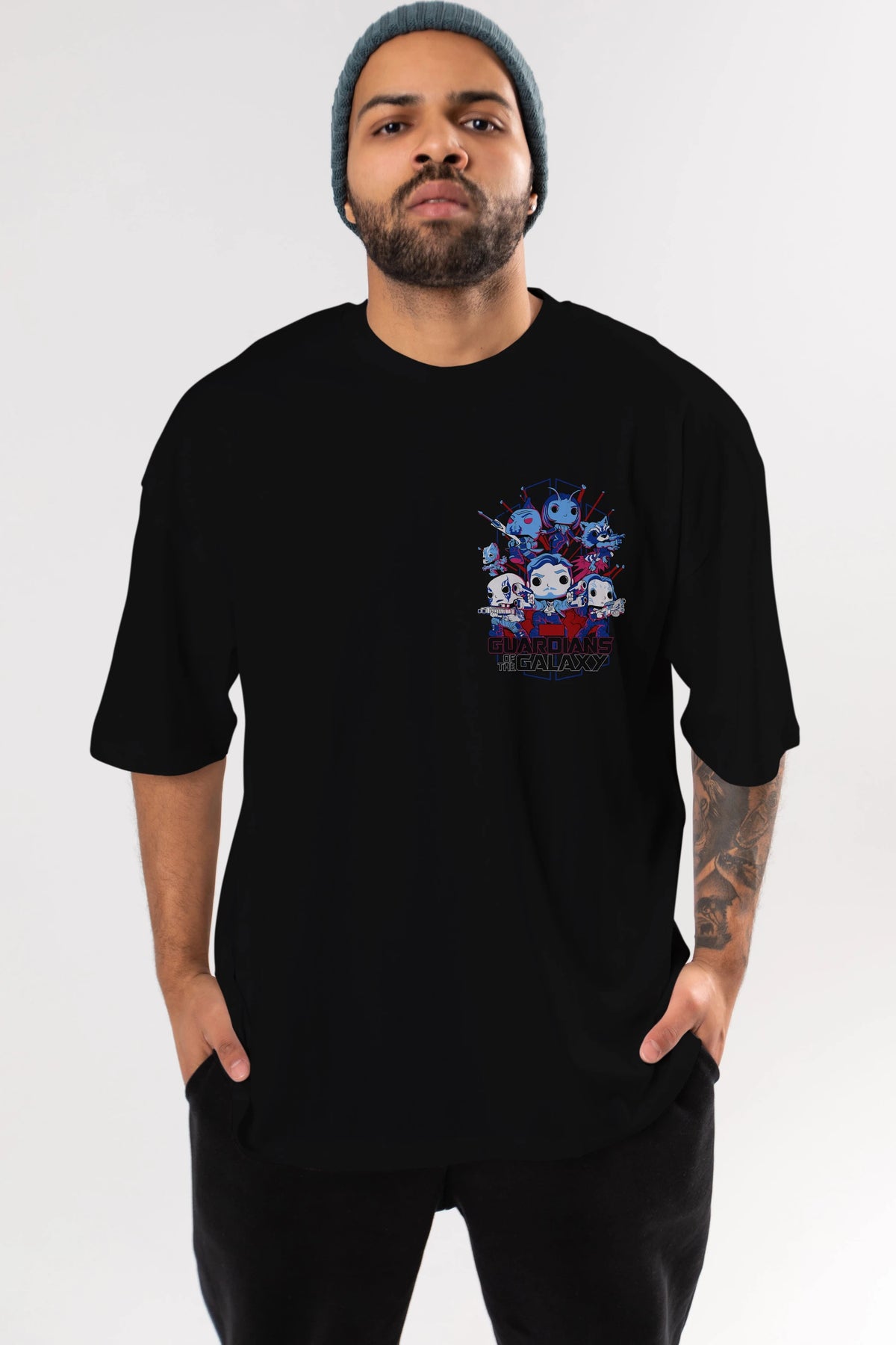 Guardians of the Galaxy Ön Sol Baskılı Oversize t-shirt Erkek Kadın Unisex %100 Pamuk Bisiklet Yaka tişort