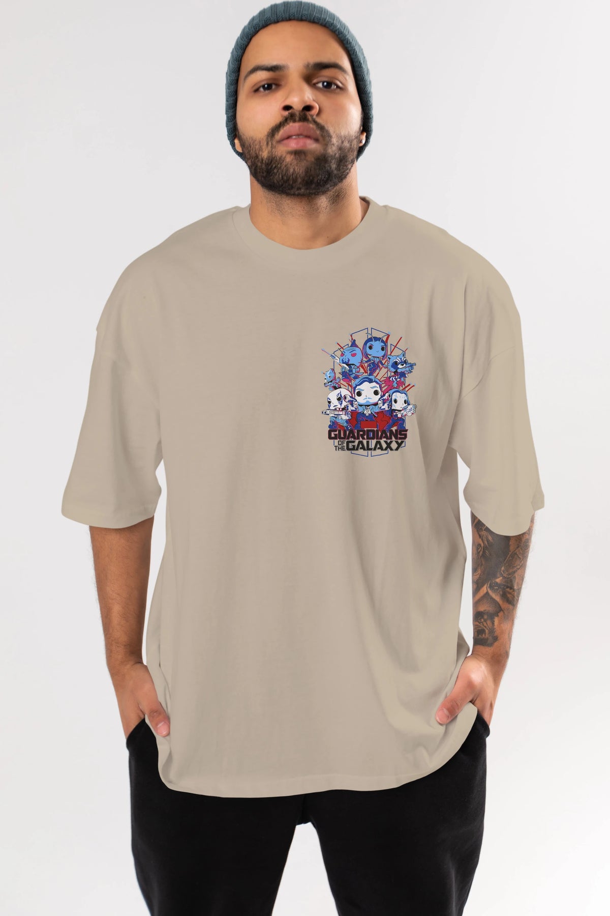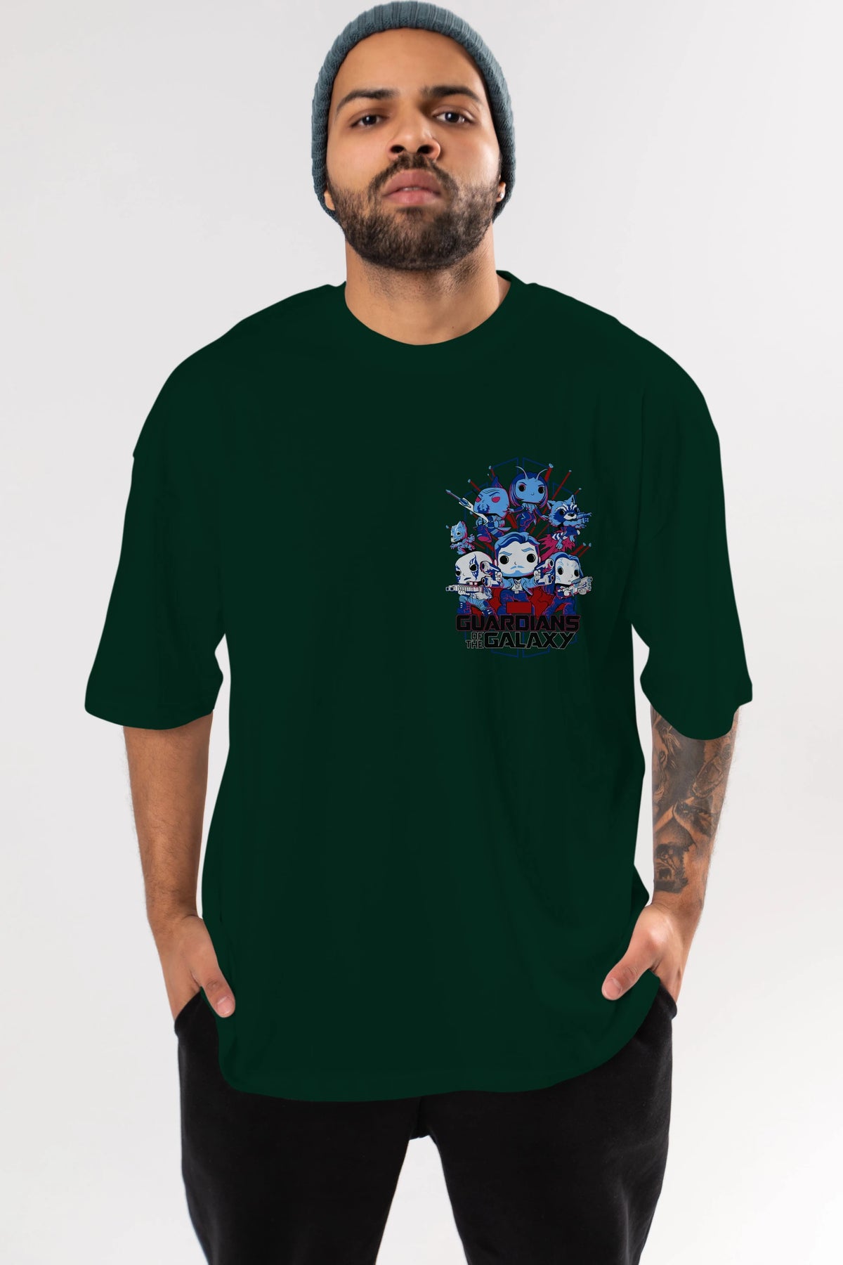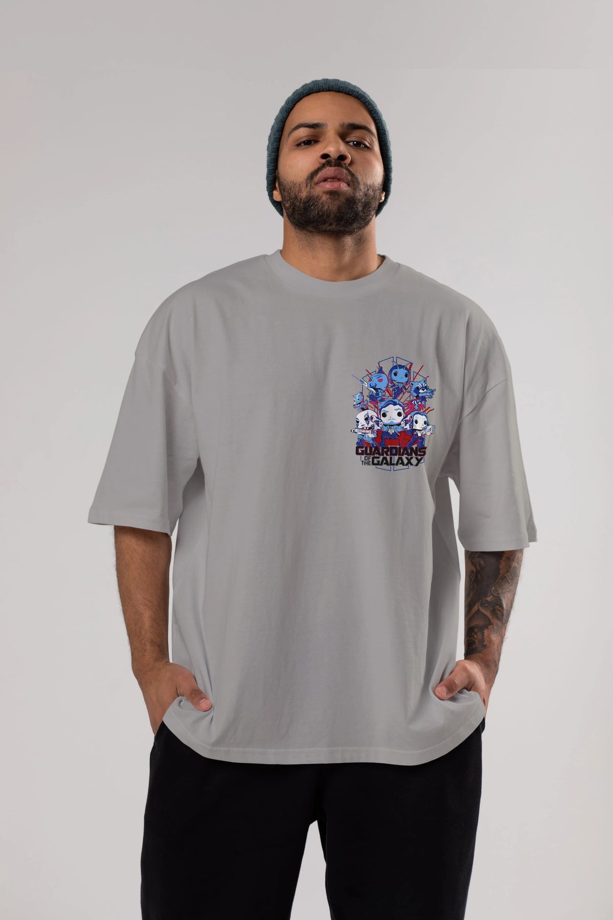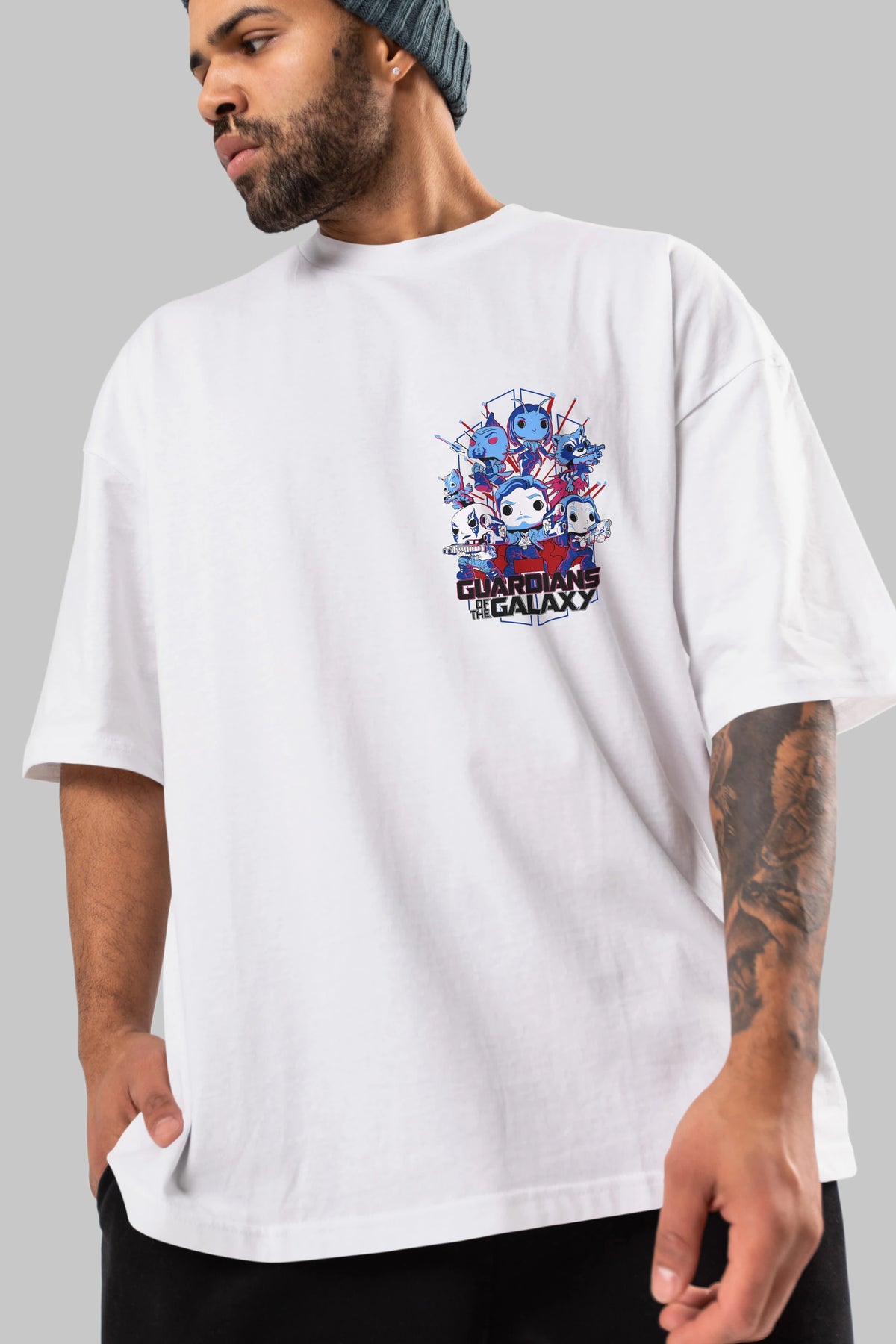 Guardians of the Galaxy Ön Sol Baskılı Oversize t-shirt Erkek Kadın Unisex %100 Pamuk Bisiklet Yaka tişort