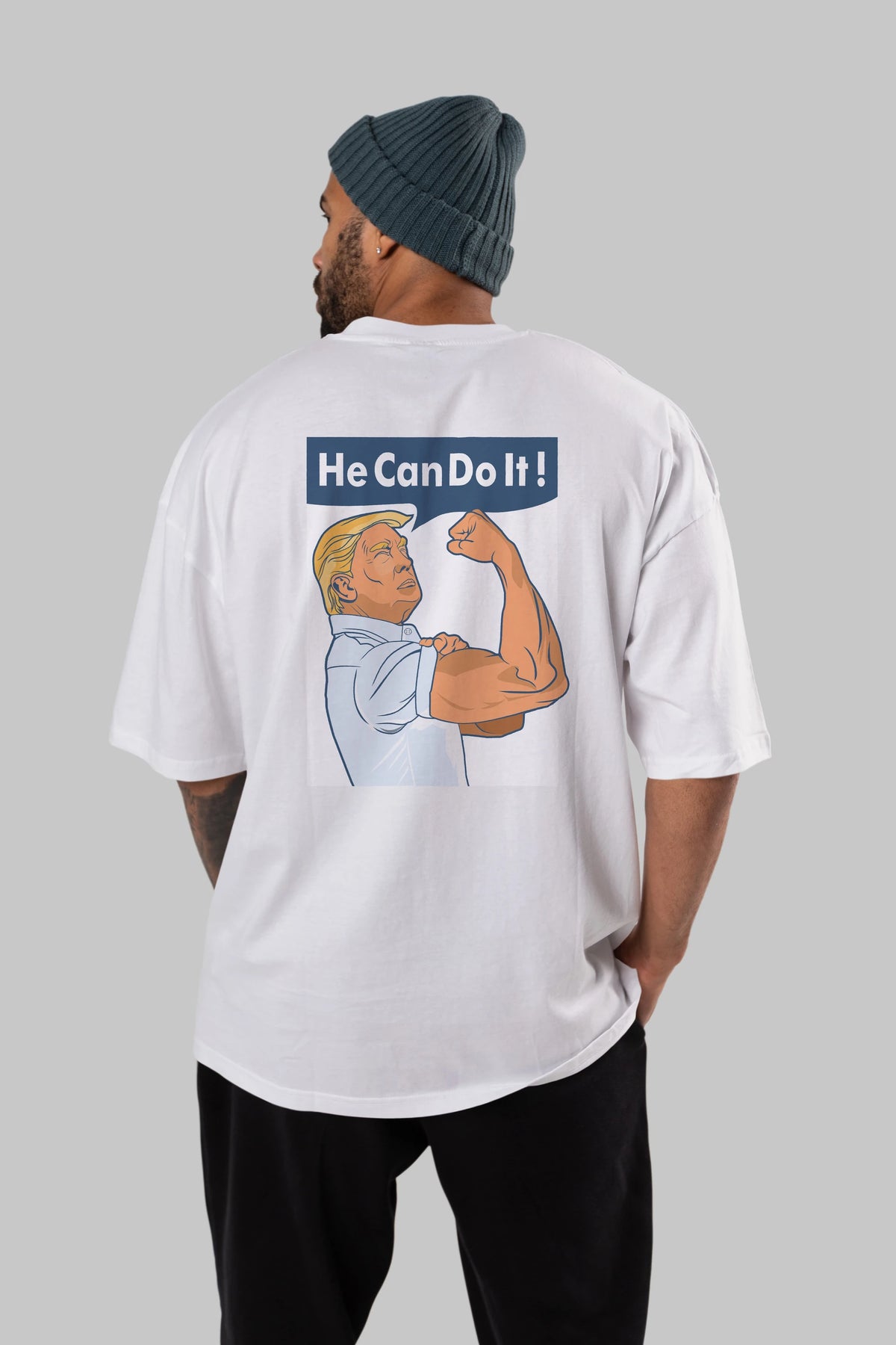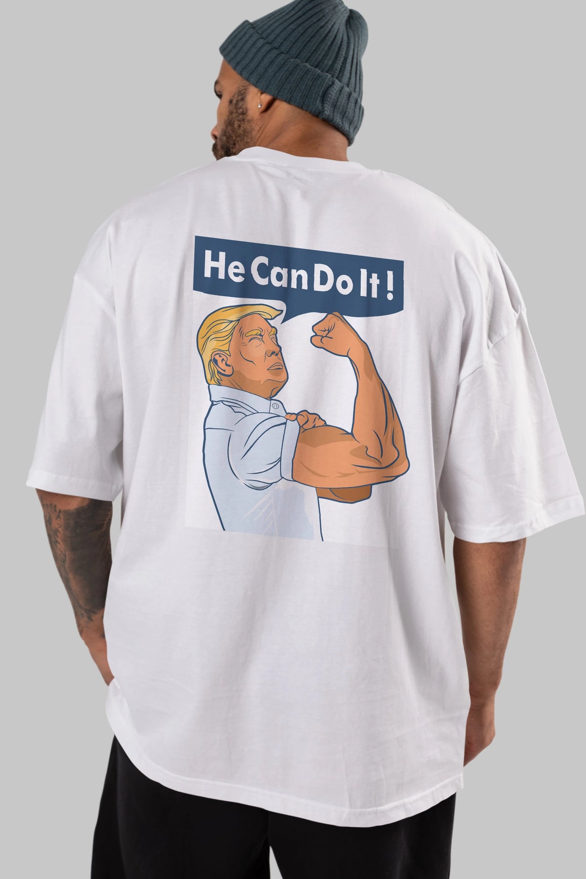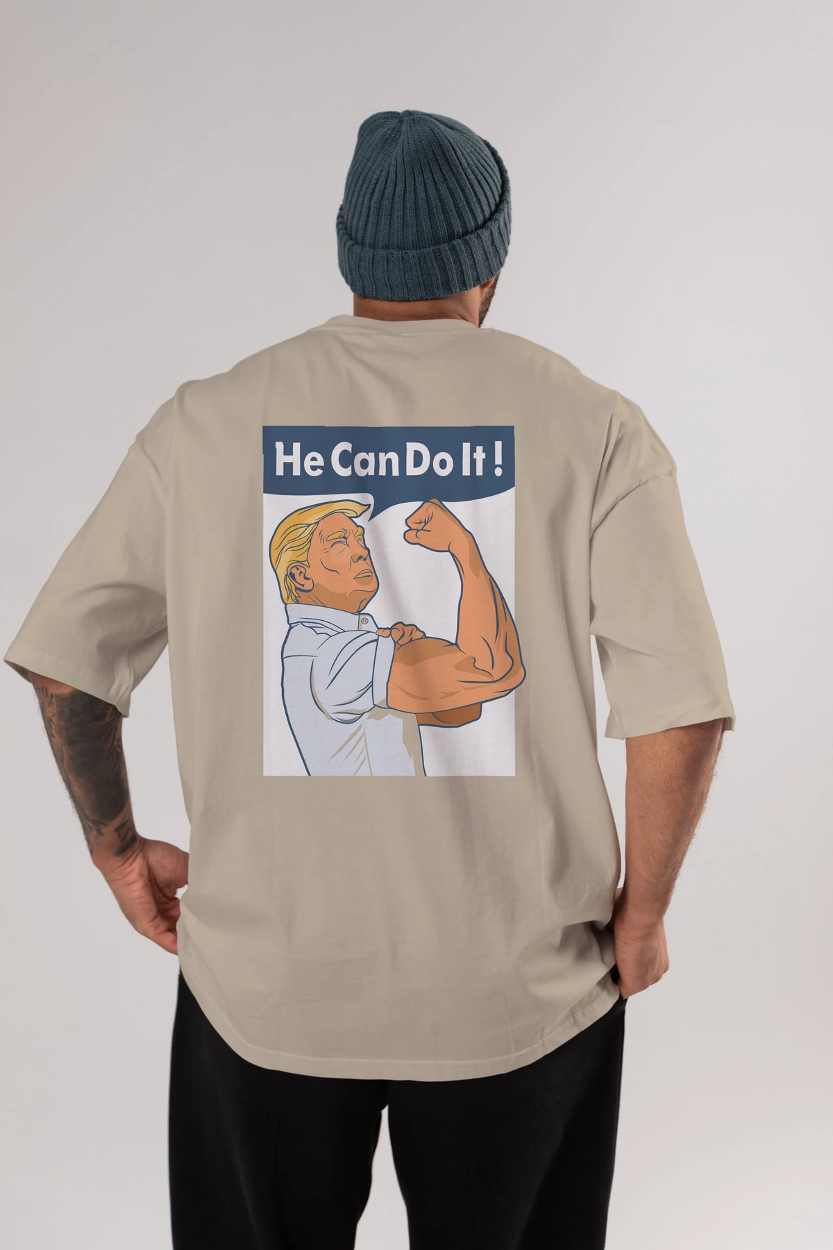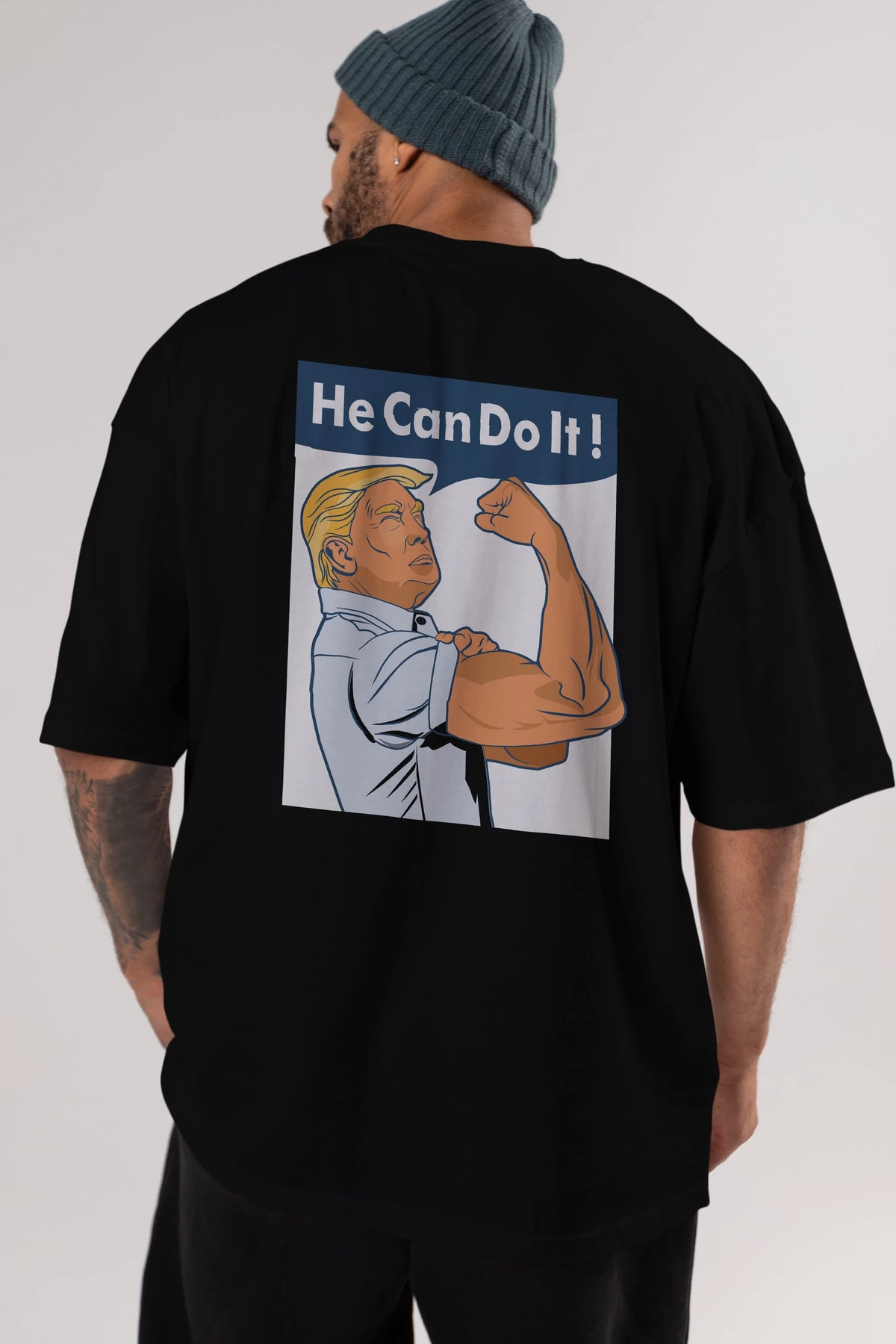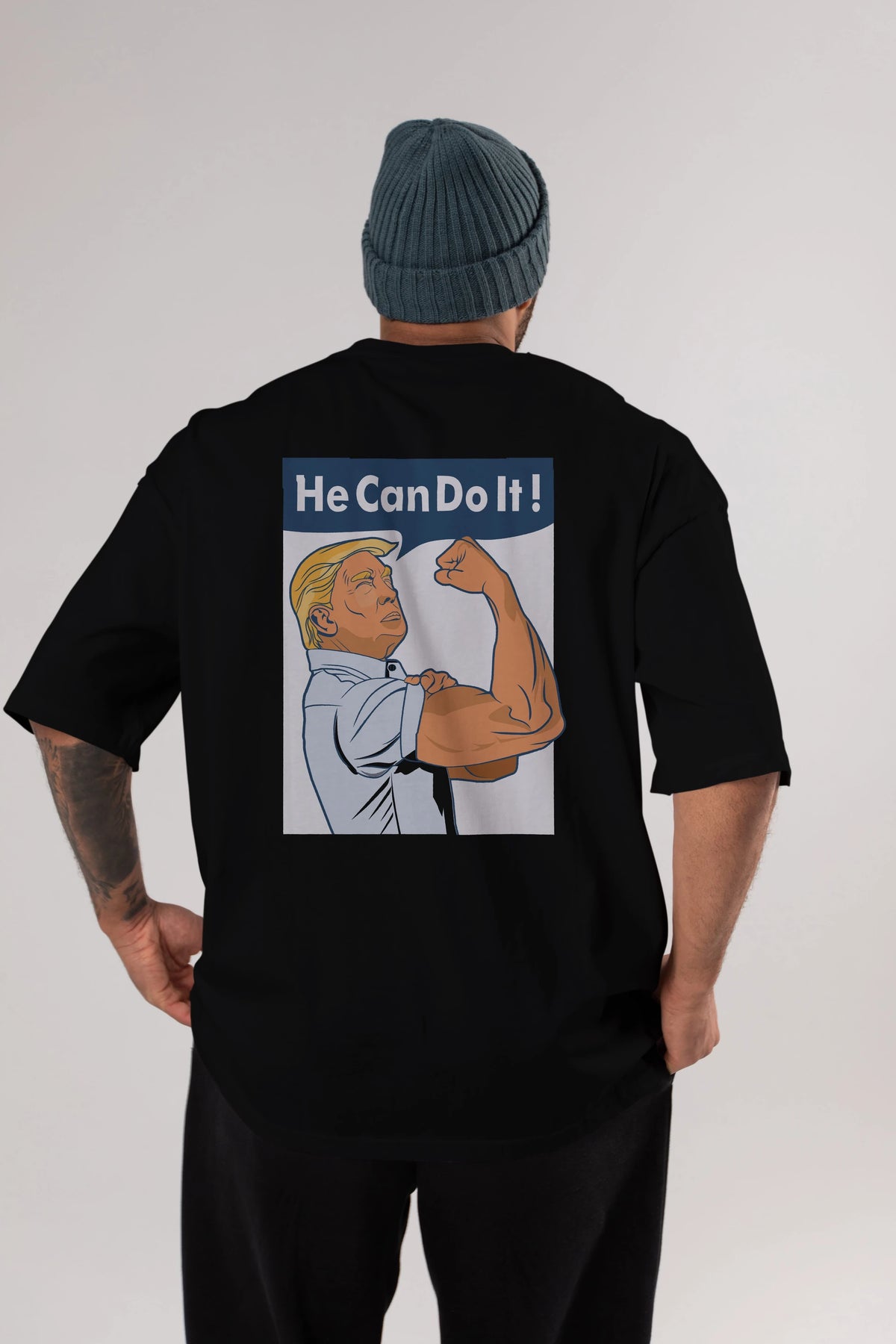 He Can Do It Trump Arka Baskılı Oversize t-shirt Erkek Kadın Unisex %100 Pamuk tişort