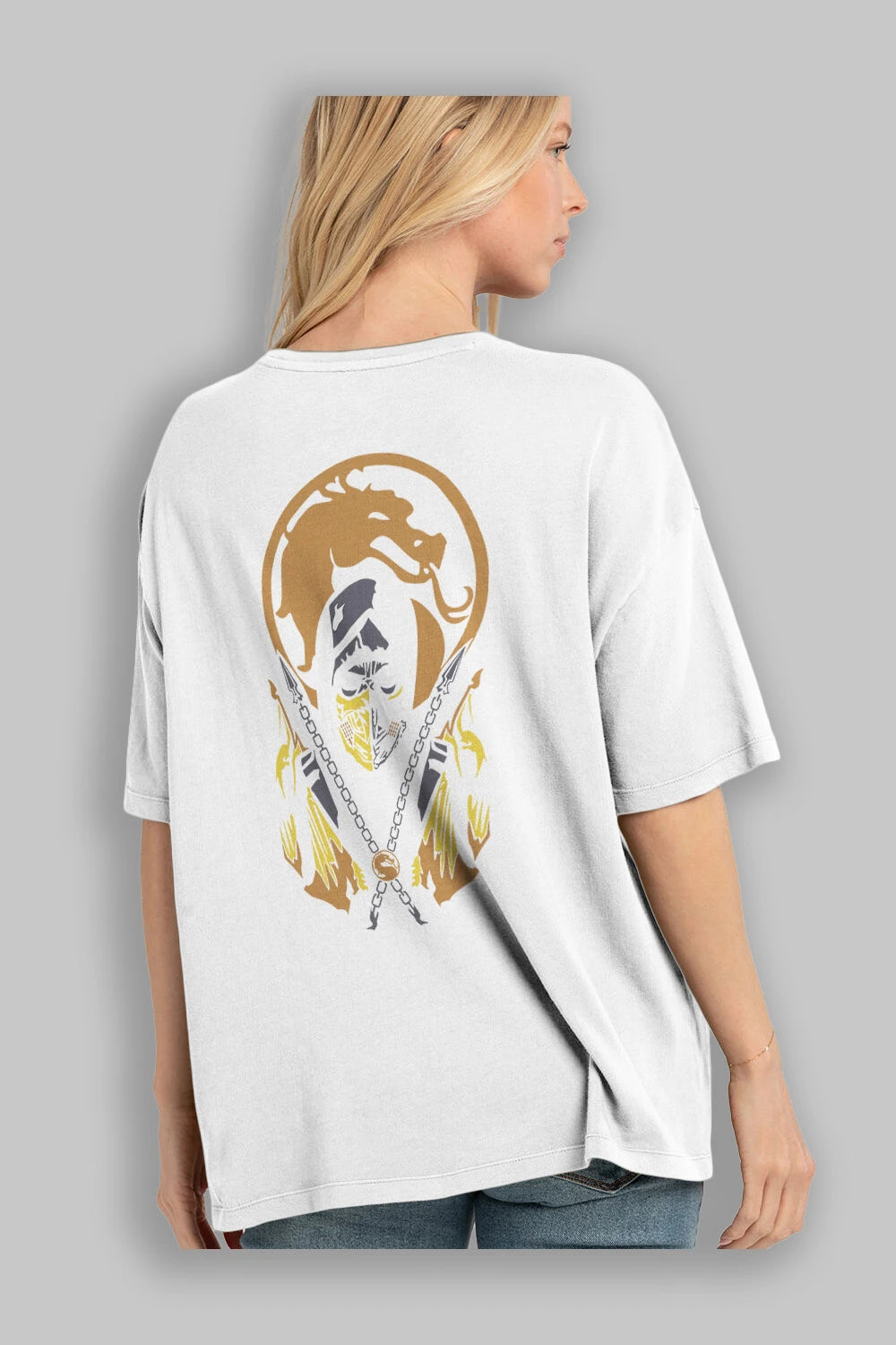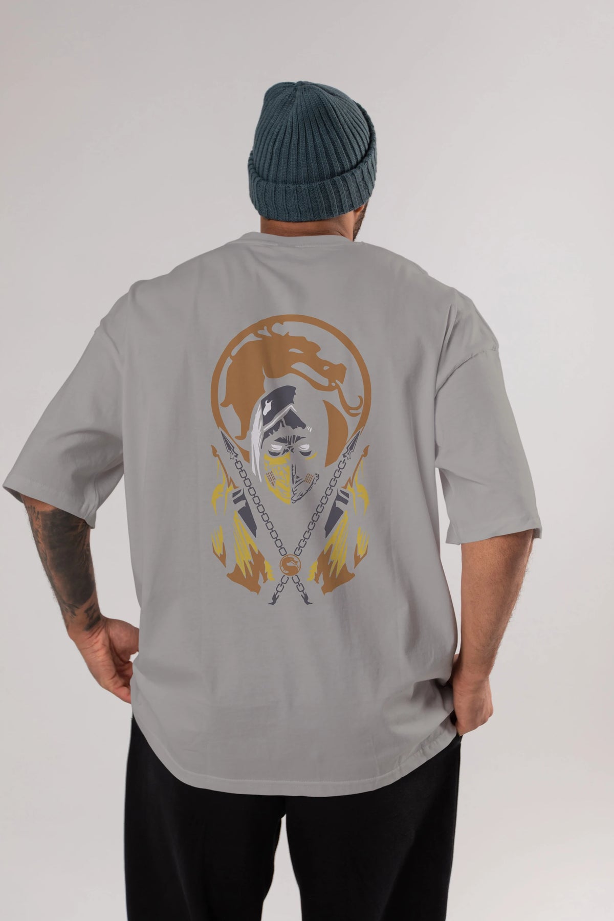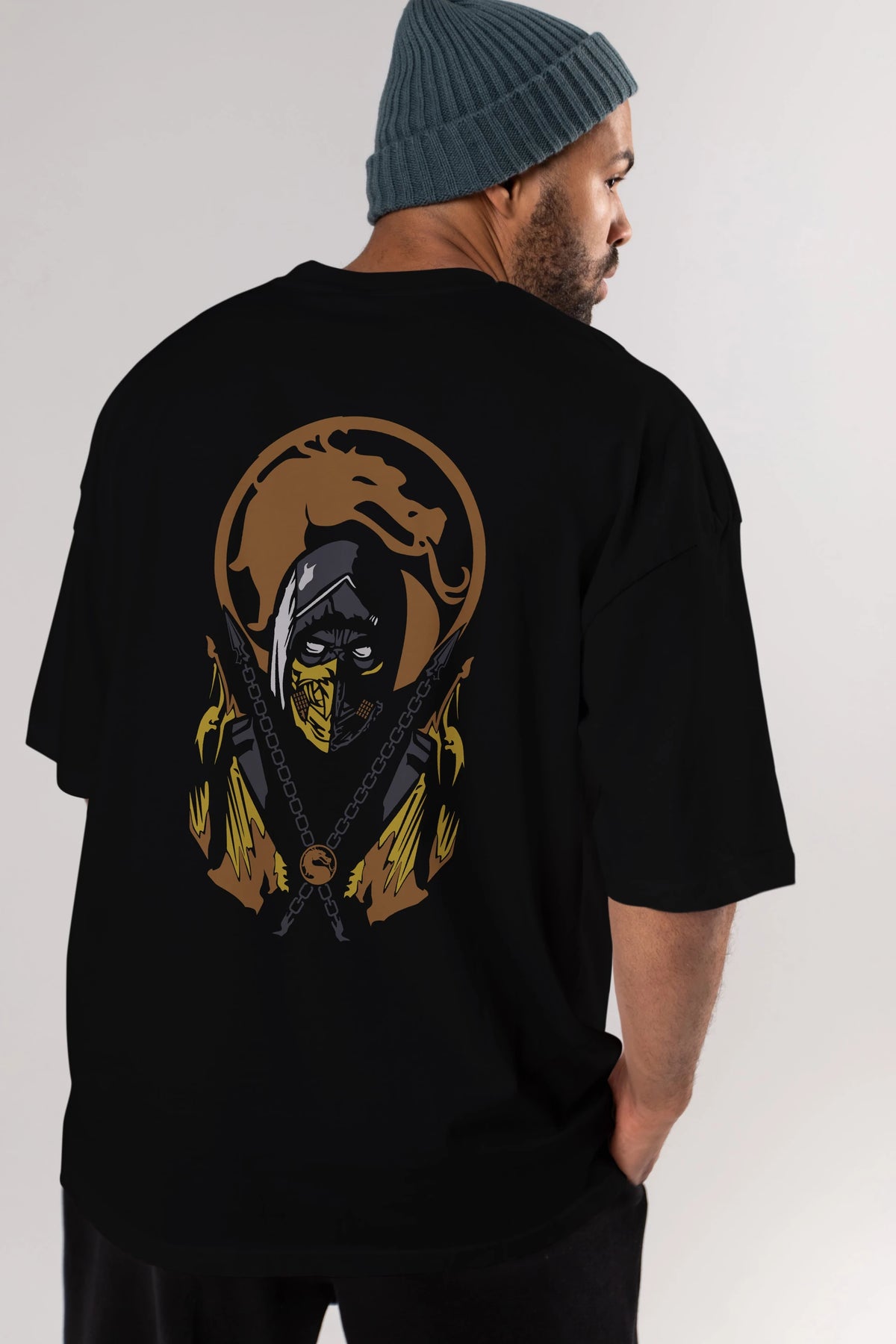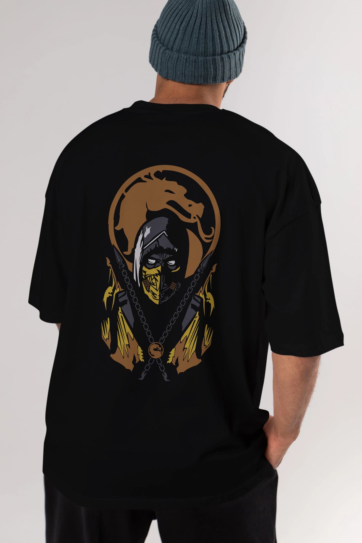 Mortal Kombat Arka Baskılı Oversize t-shirt Erkek Kadın Unisex %100 Pamuk Bisiklet Yaka tişort