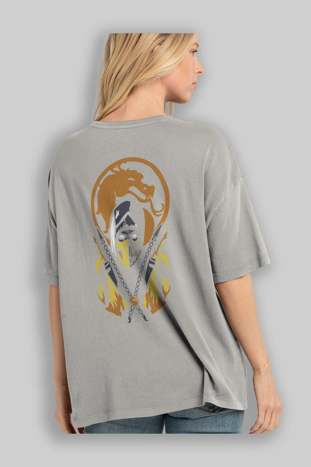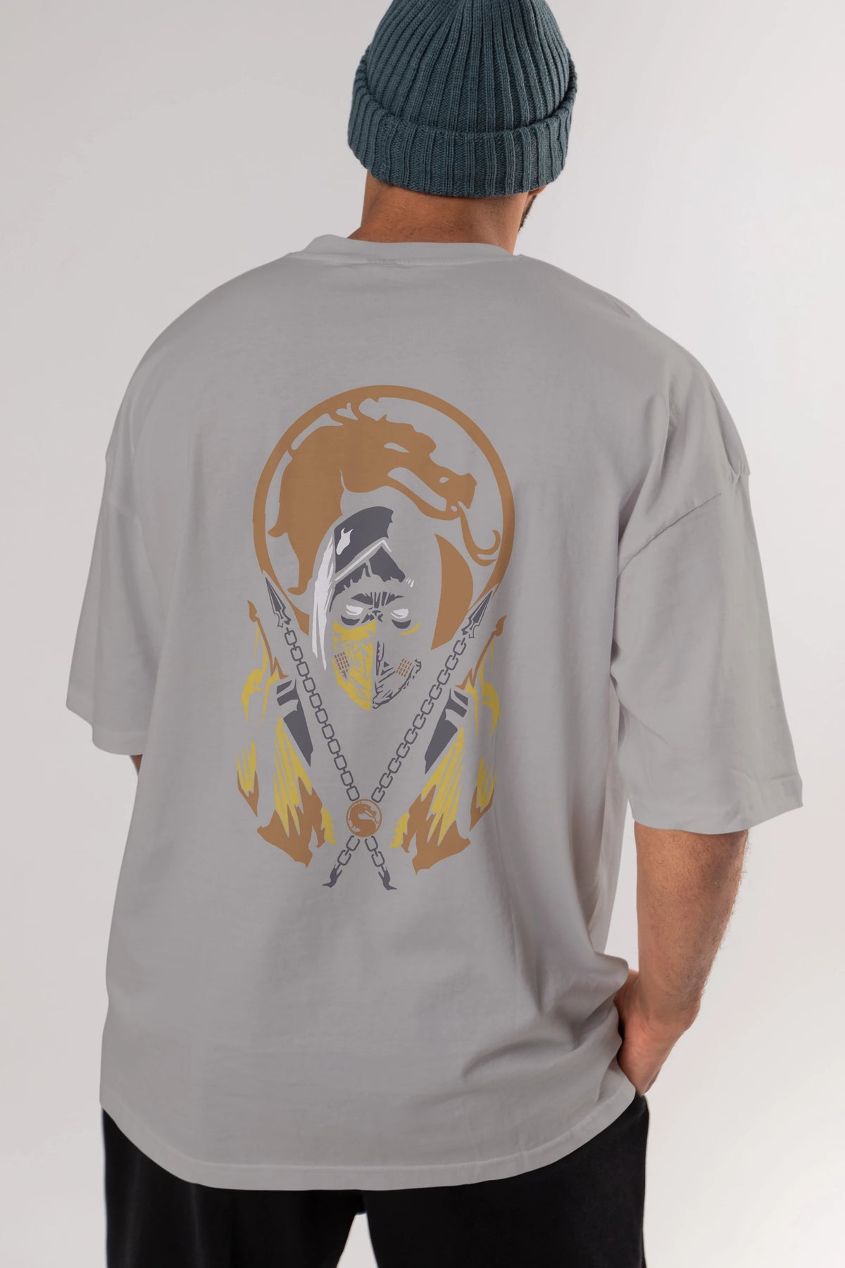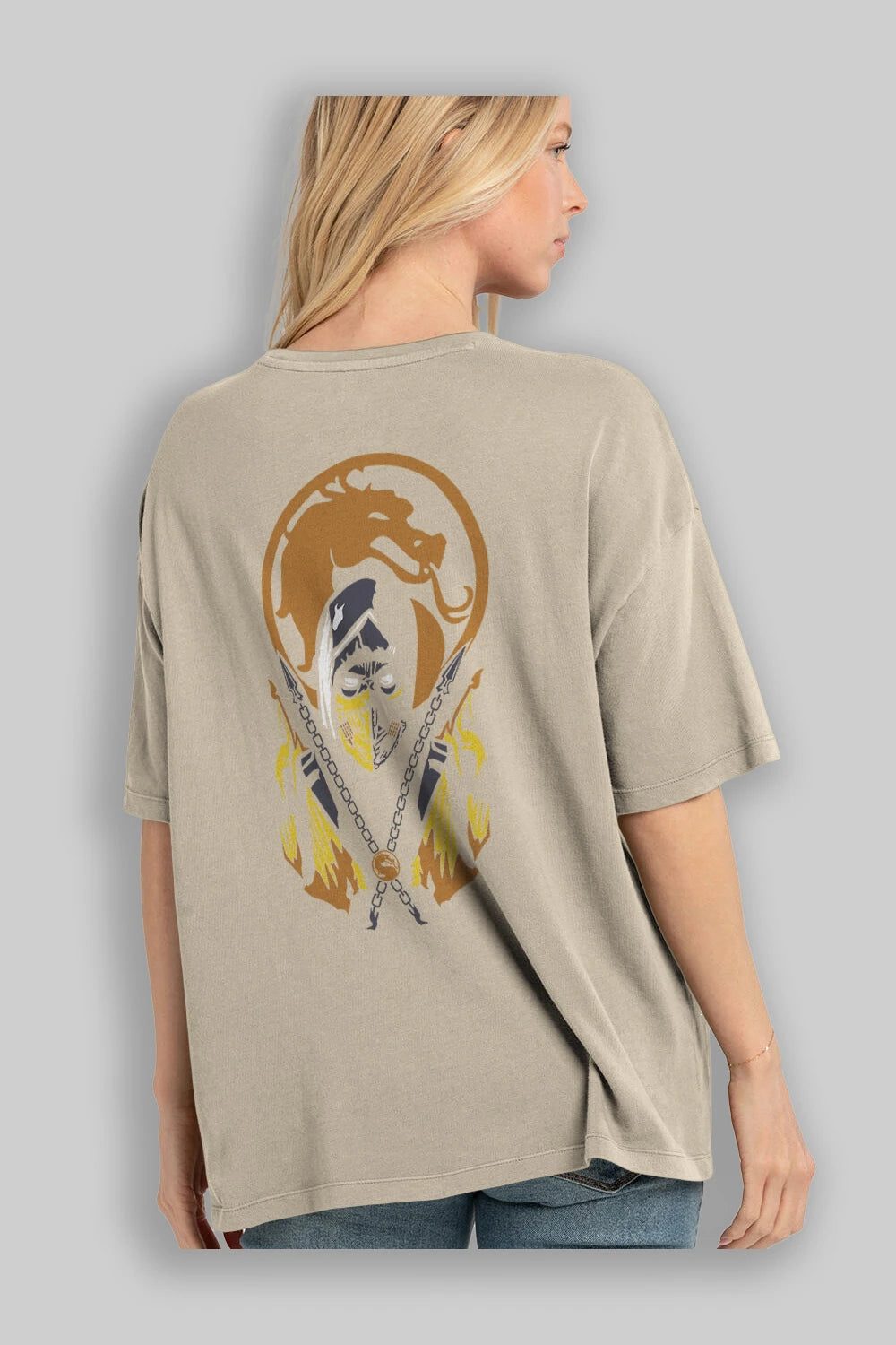 Mortal Kombat Arka Baskılı Oversize t-shirt Erkek Kadın Unisex %100 Pamuk Bisiklet Yaka tişort