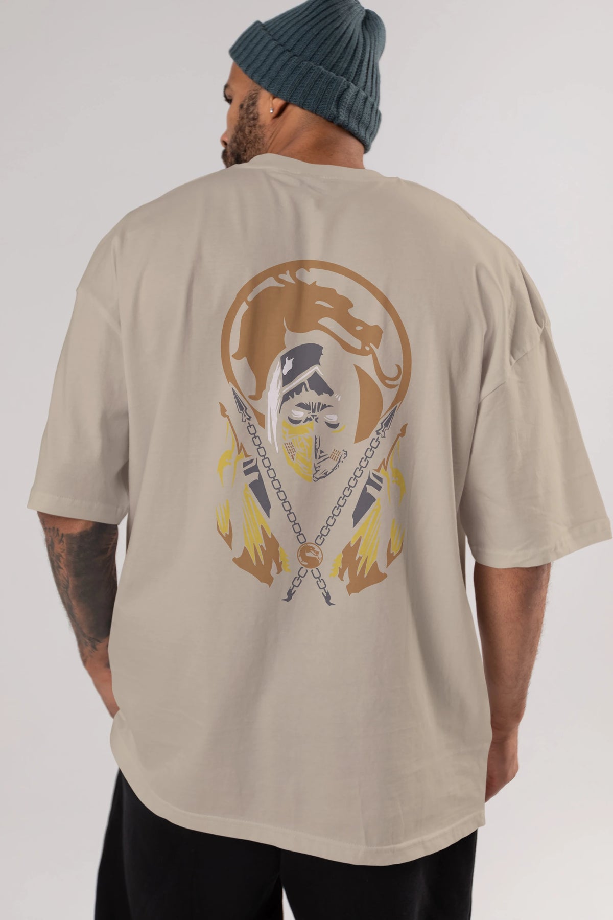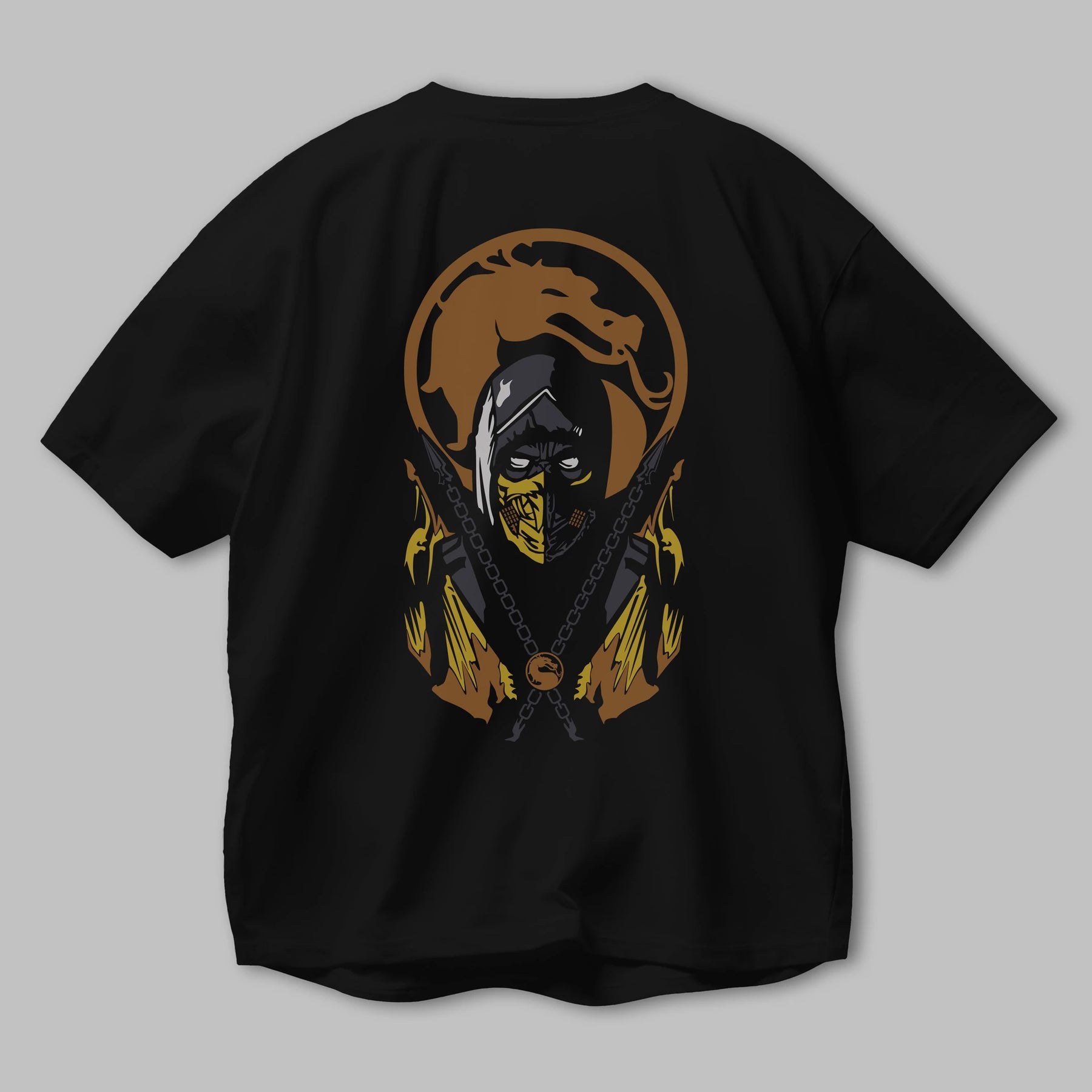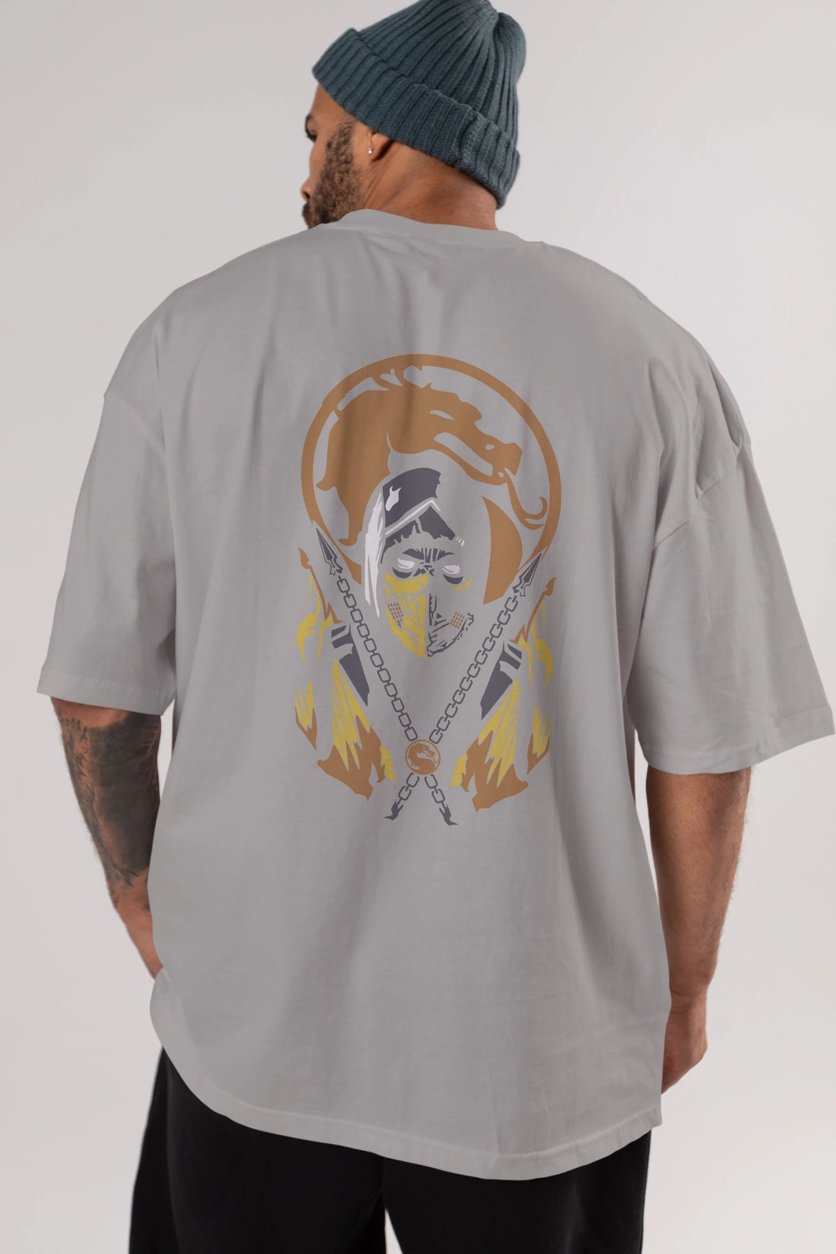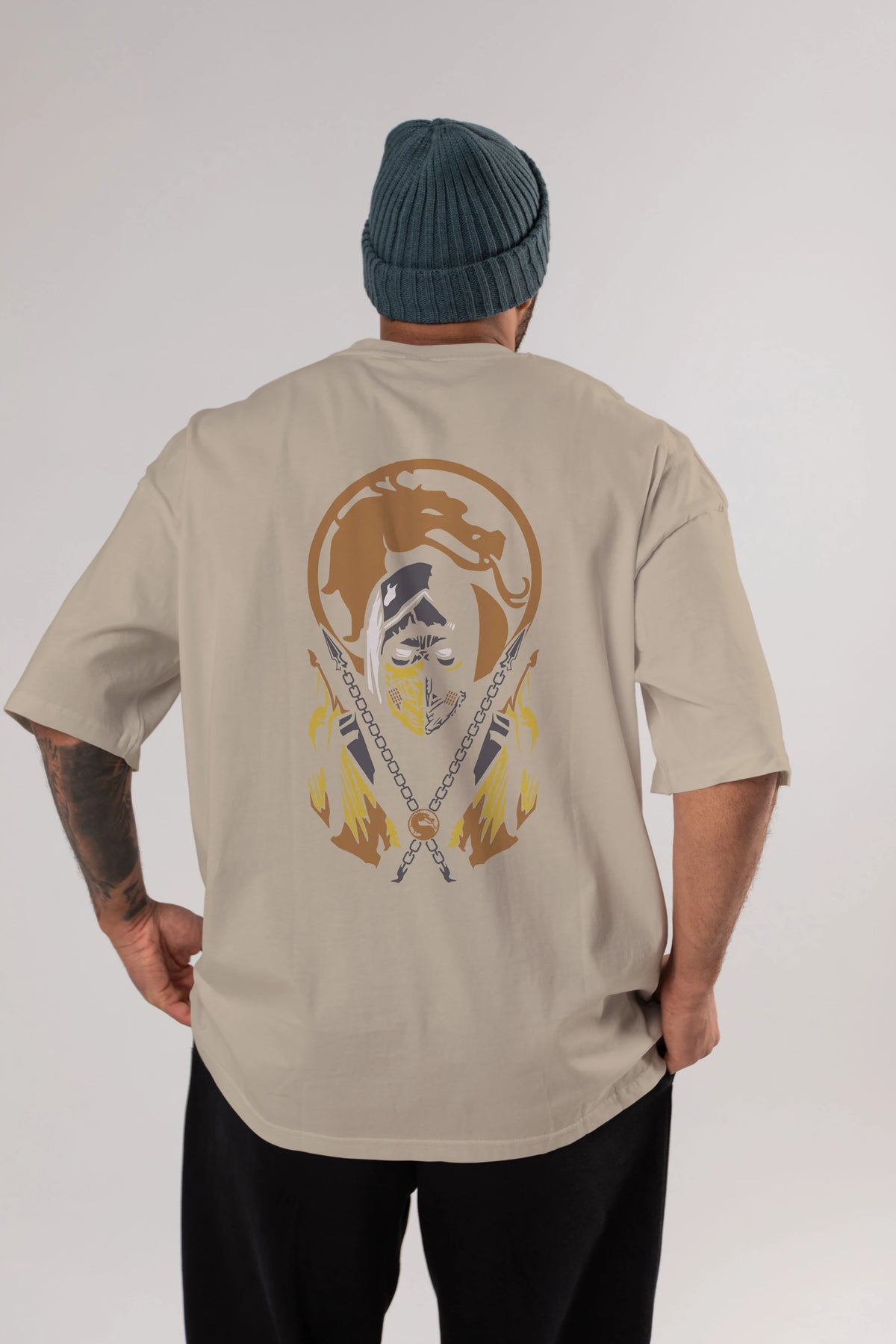 Mortal Kombat Arka Baskılı Oversize t-shirt Erkek Kadın Unisex %100 Pamuk Bisiklet Yaka tişort