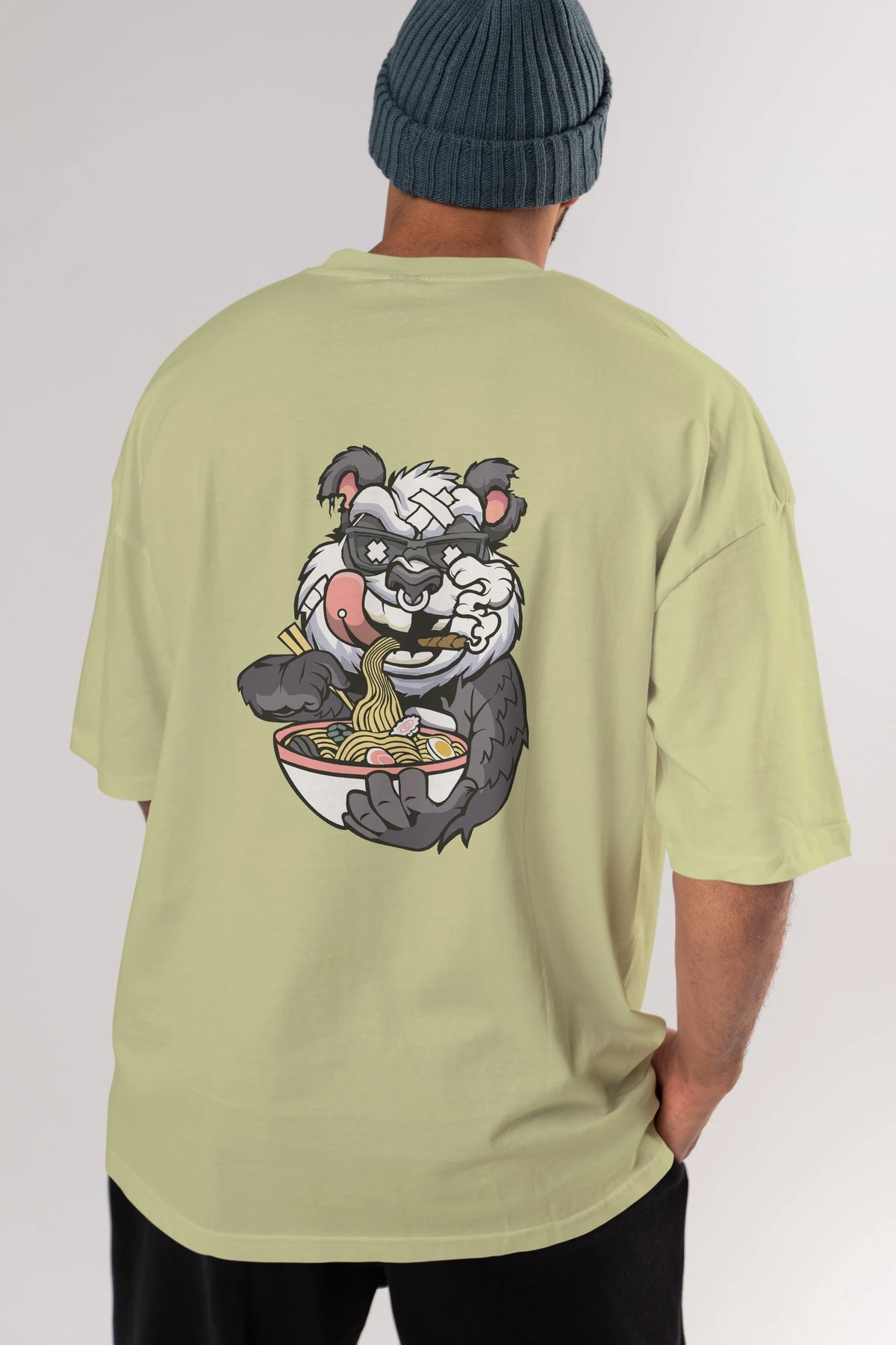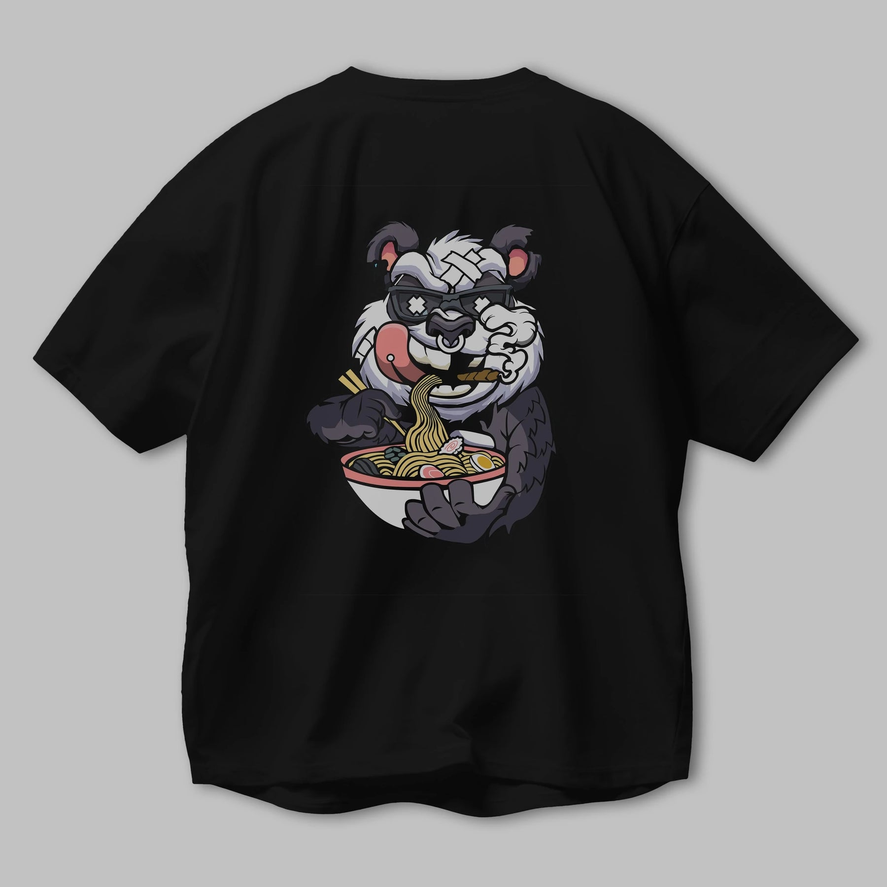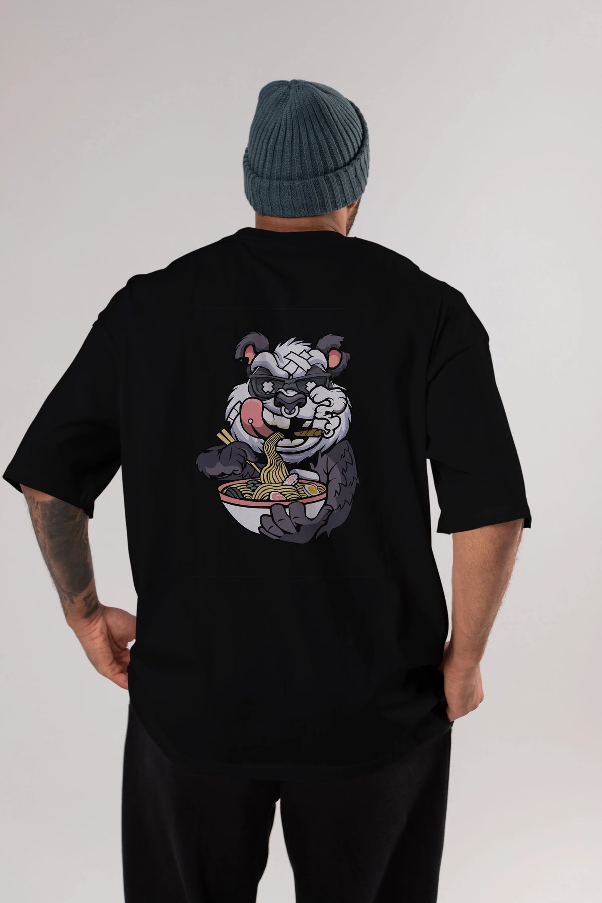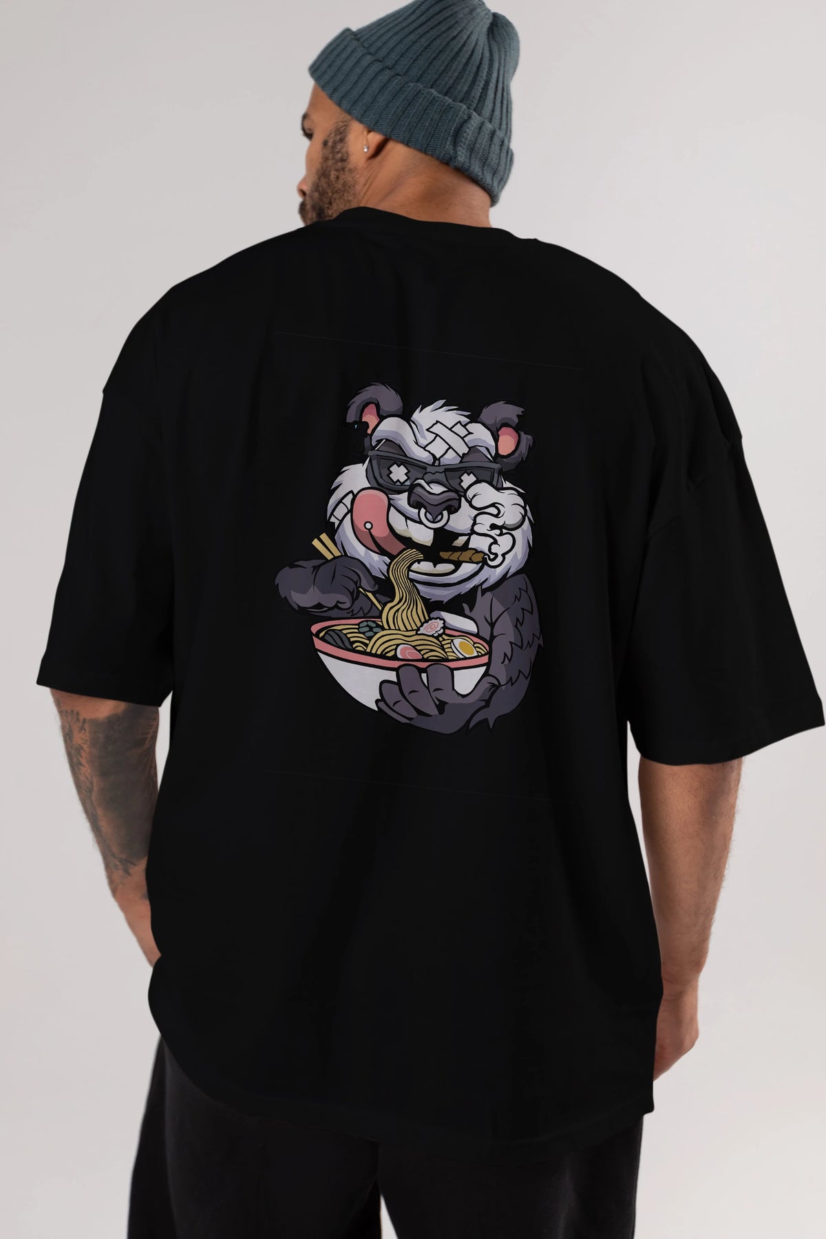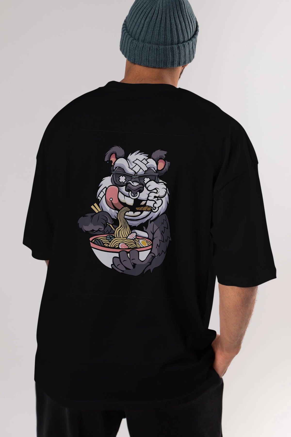 Panda Ramen Arka Baskılı Oversize t-shirt Erkek Kadın Unisex %100 Pamuk tişort