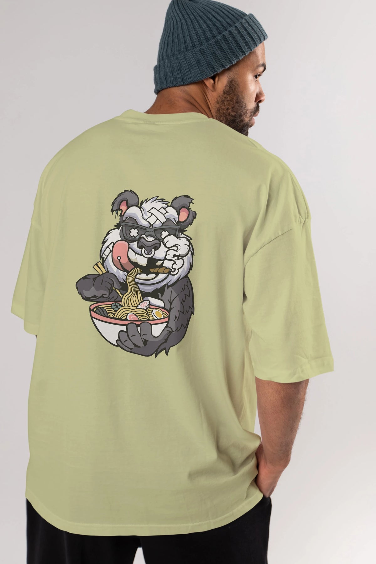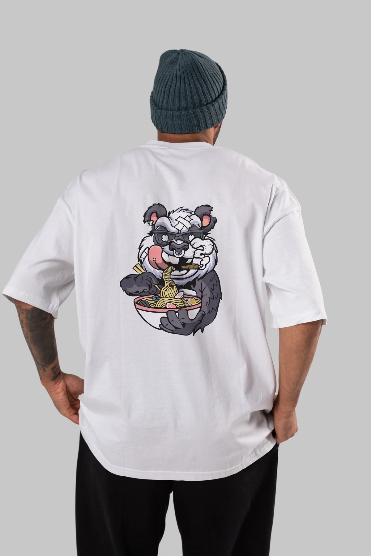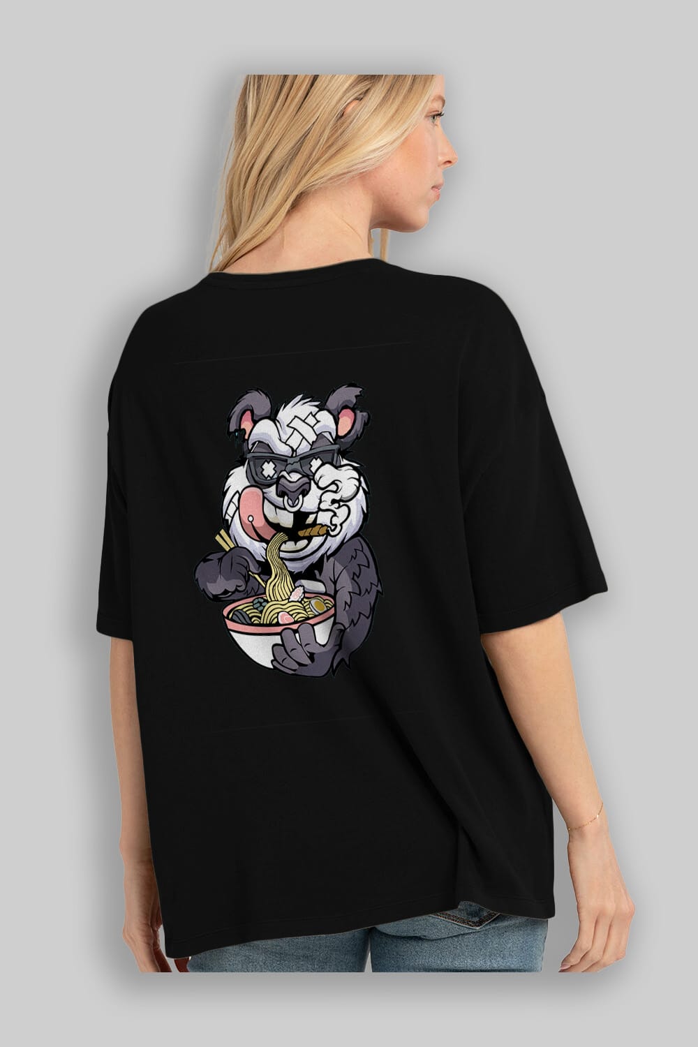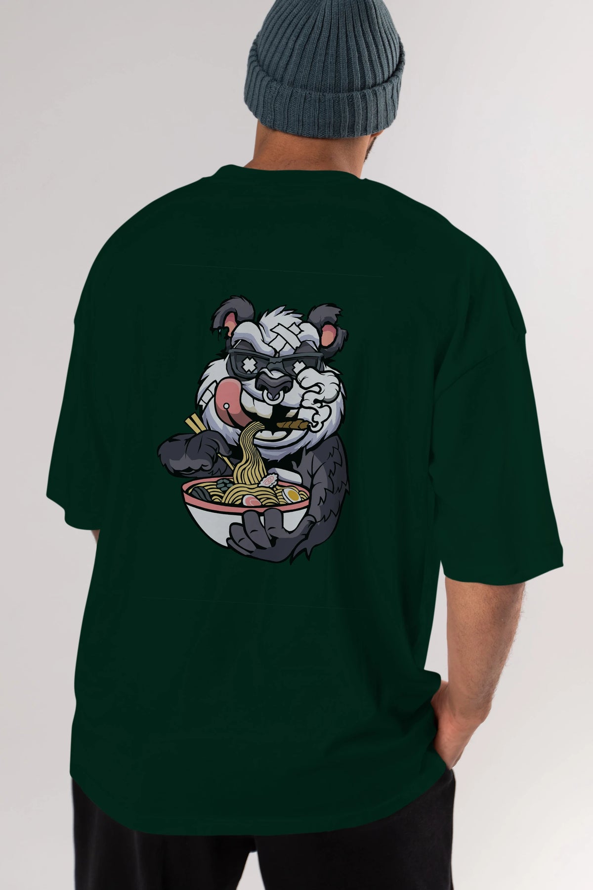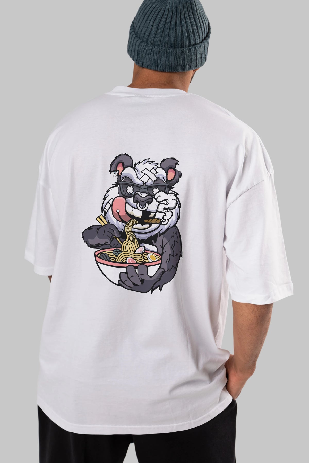 Panda Ramen Arka Baskılı Oversize t-shirt Erkek Kadın Unisex %100 Pamuk tişort
