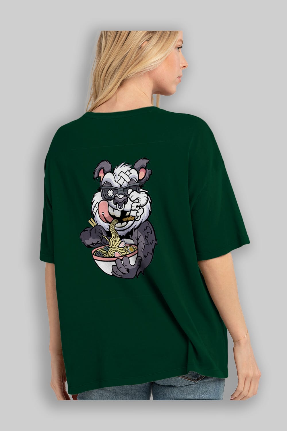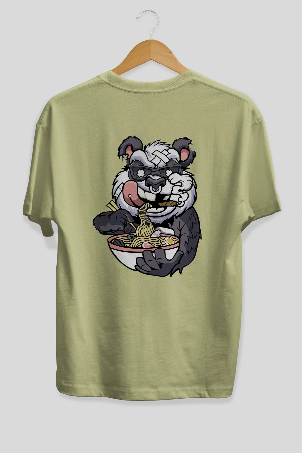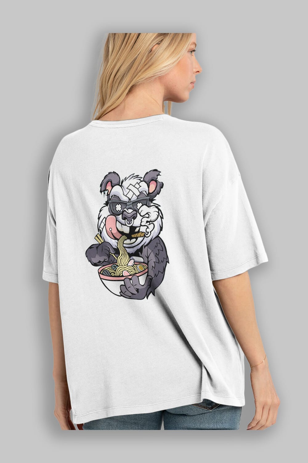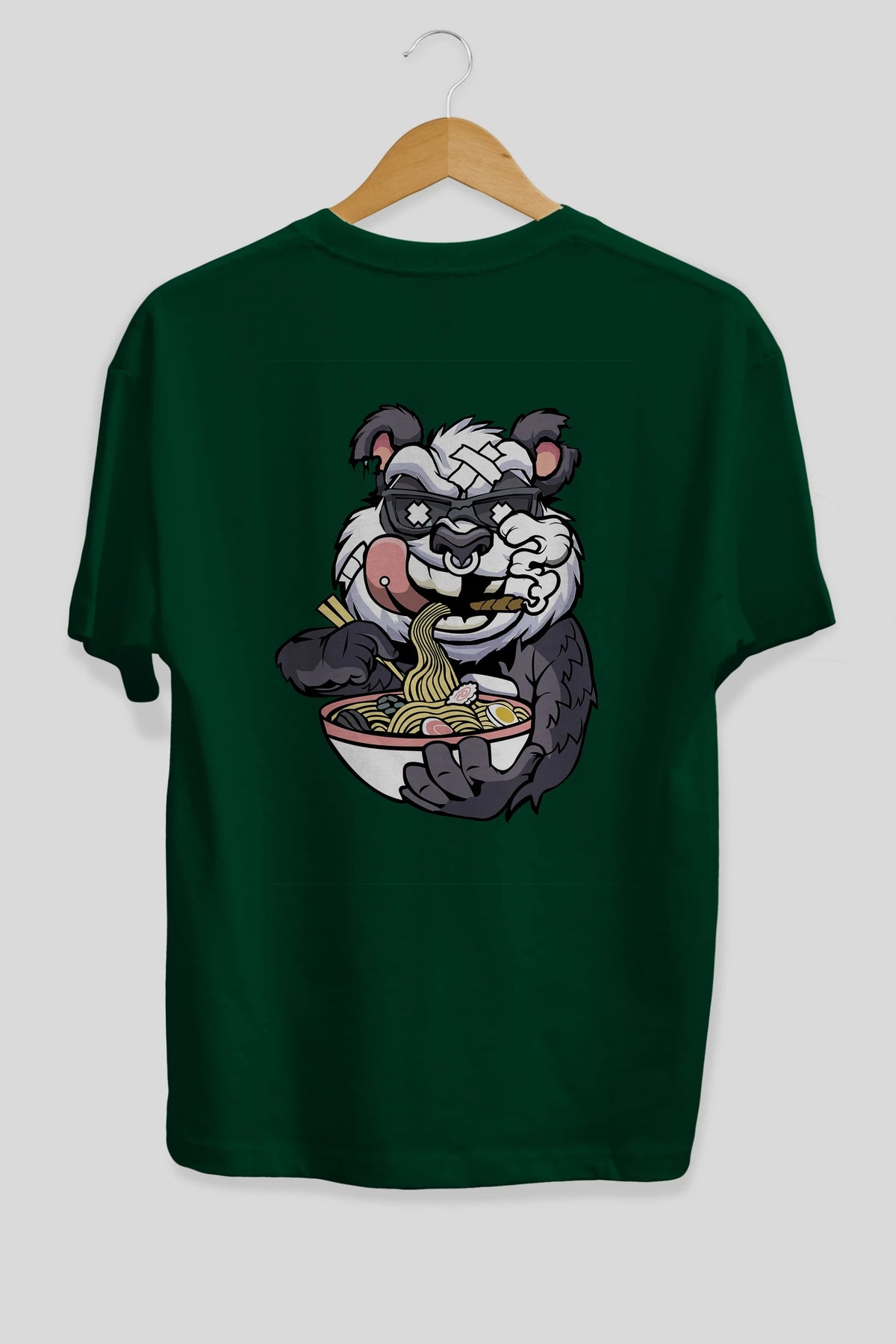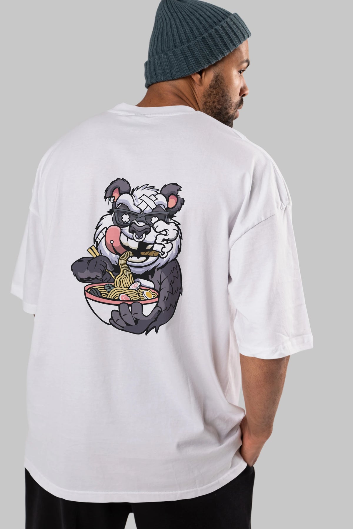Panda Ramen Arka Baskılı Oversize t-shirt Erkek Kadın Unisex %100 Pamuk tişort