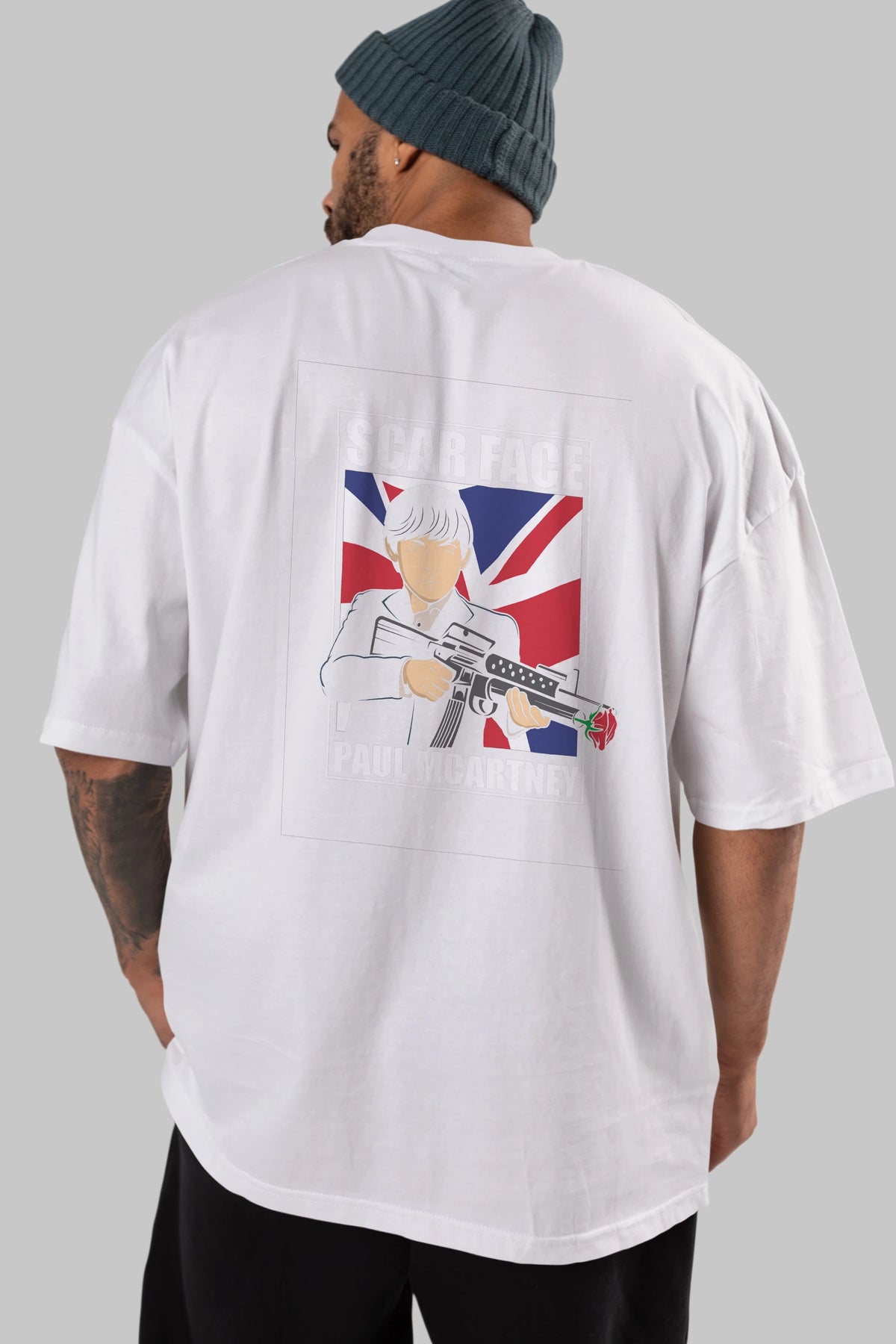 Paul Mccartney Scar Face Arka Baskılı Oversize t-shirt Erkek Kadın Unisex %100 Pamuk tişort