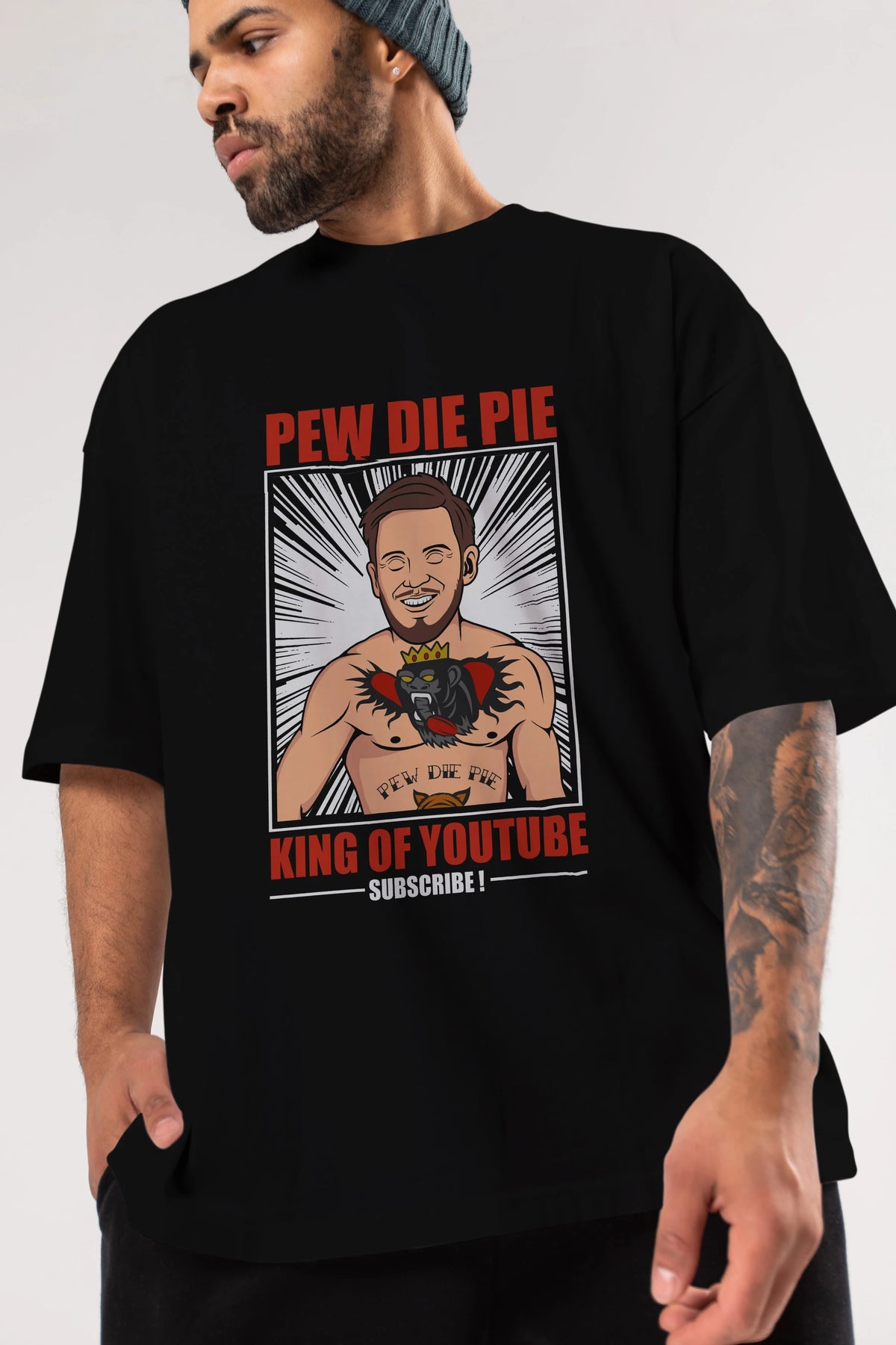 Pew Die Pie Fighter Ön Baskılı Oversize t-shirt Erkek Kadın Unisex %100 Pamuk tişort