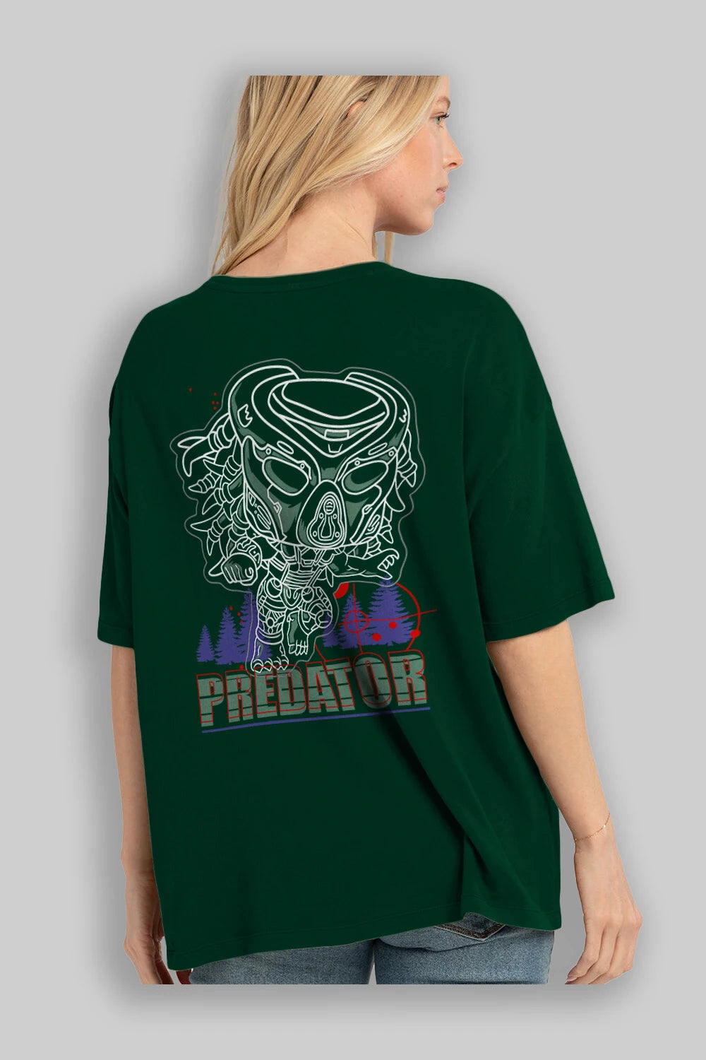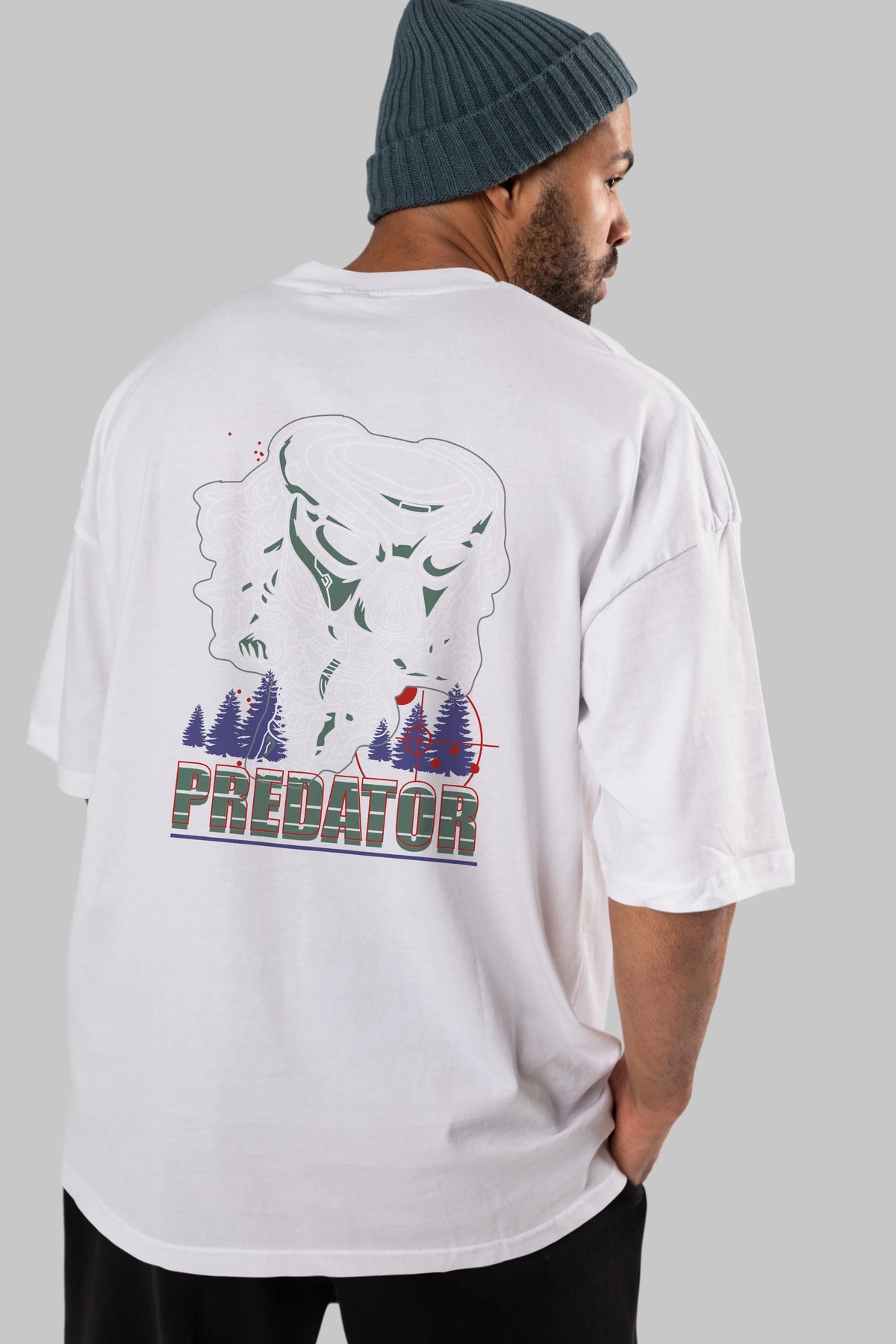 Predator Arka Baskılı Oversize t-shirt Erkek Kadın Unisex %100 Pamuk Bisiklet Yaka tişort