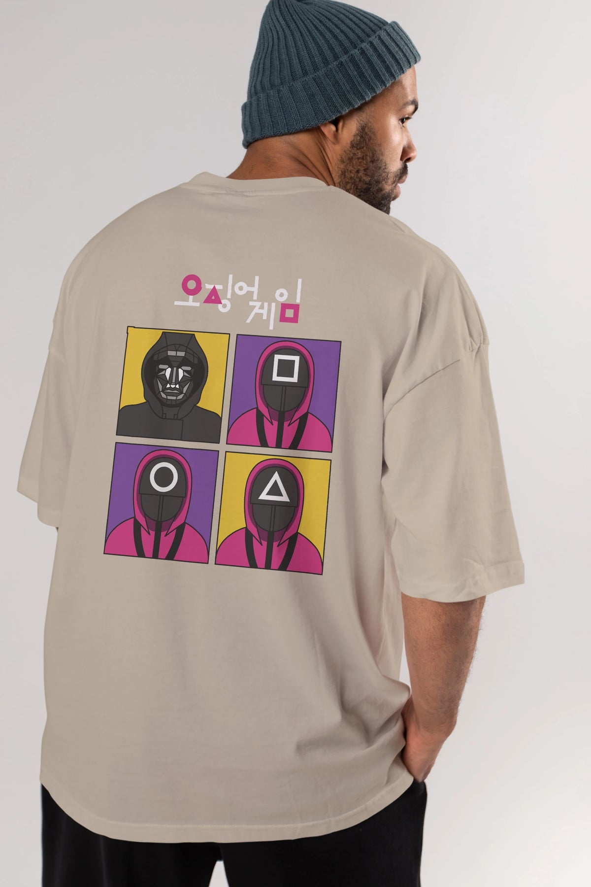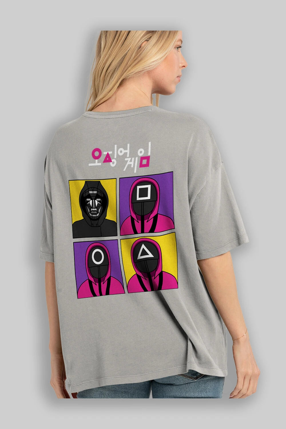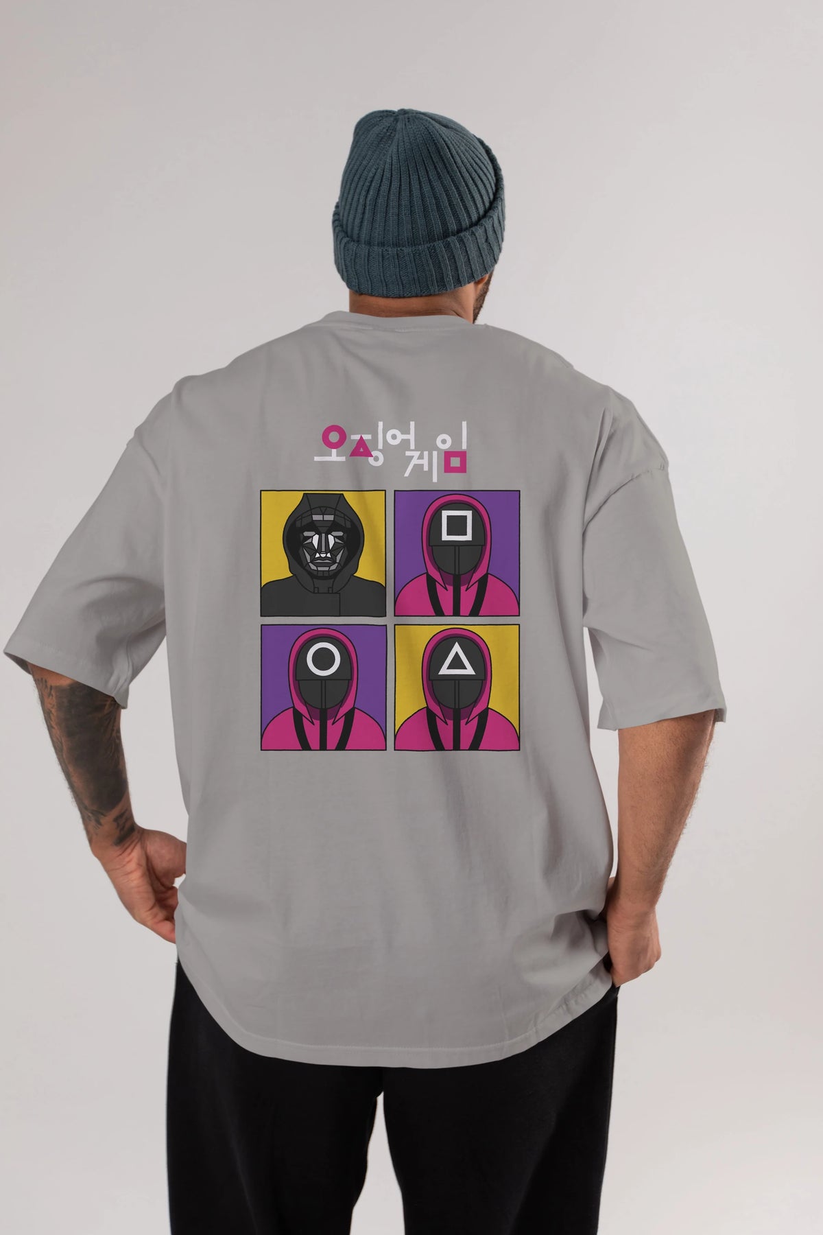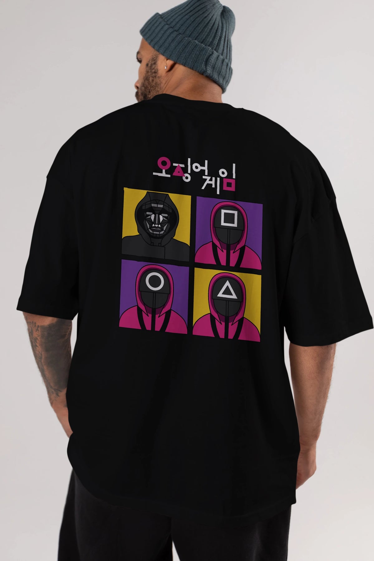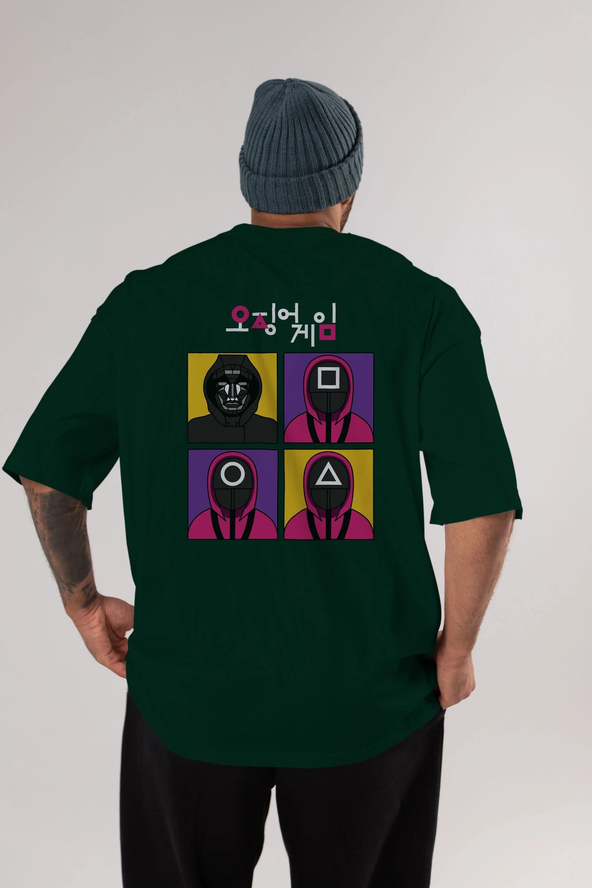 Squid Game (1) Arka Baskılı Oversize t-shirt Erkek Kadın Unisex %100 Pamuk Bisiklet Yaka tişort