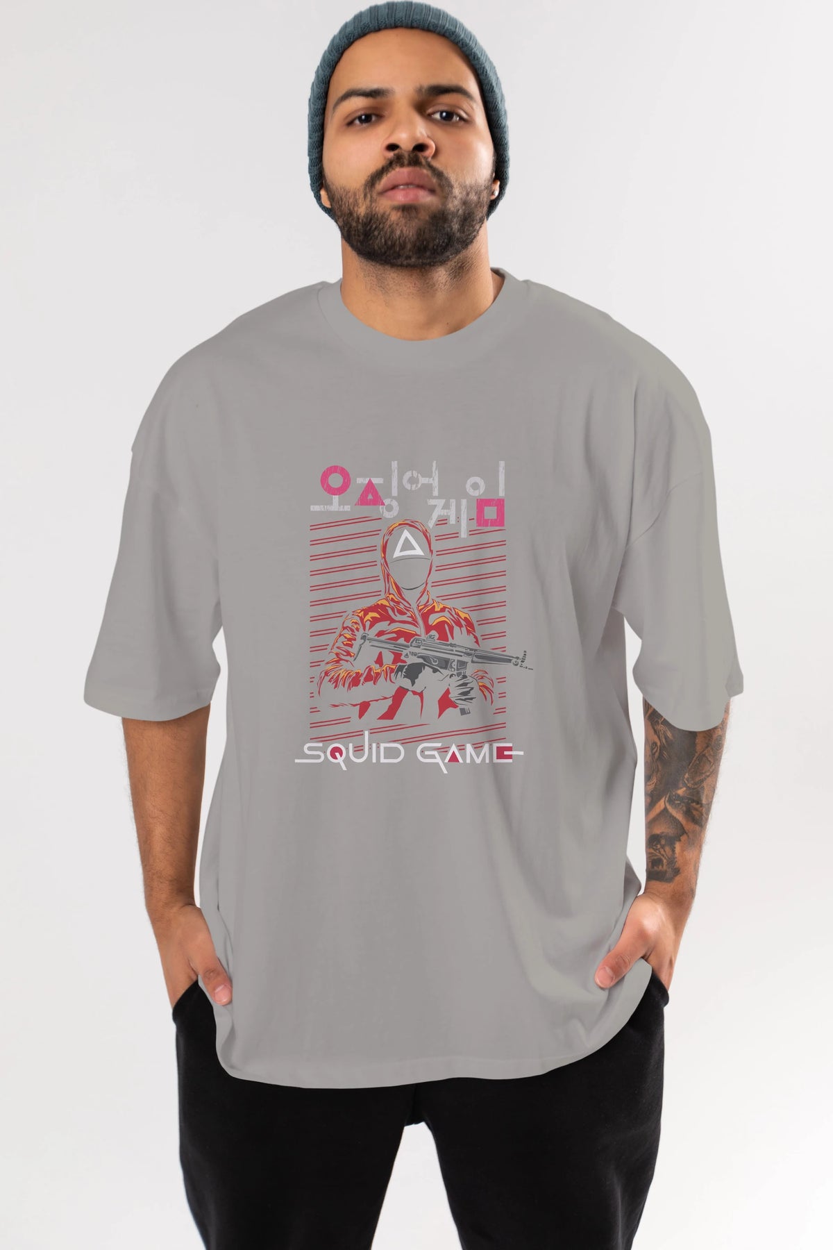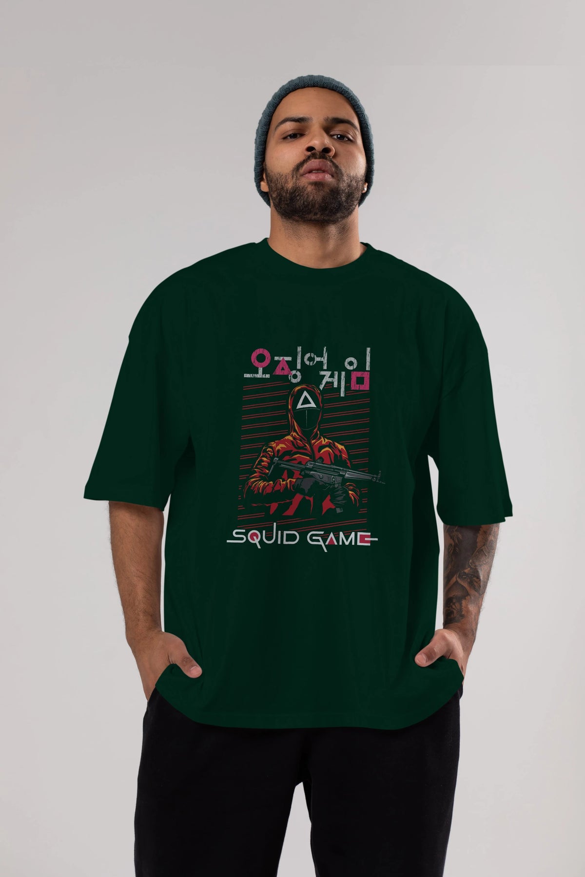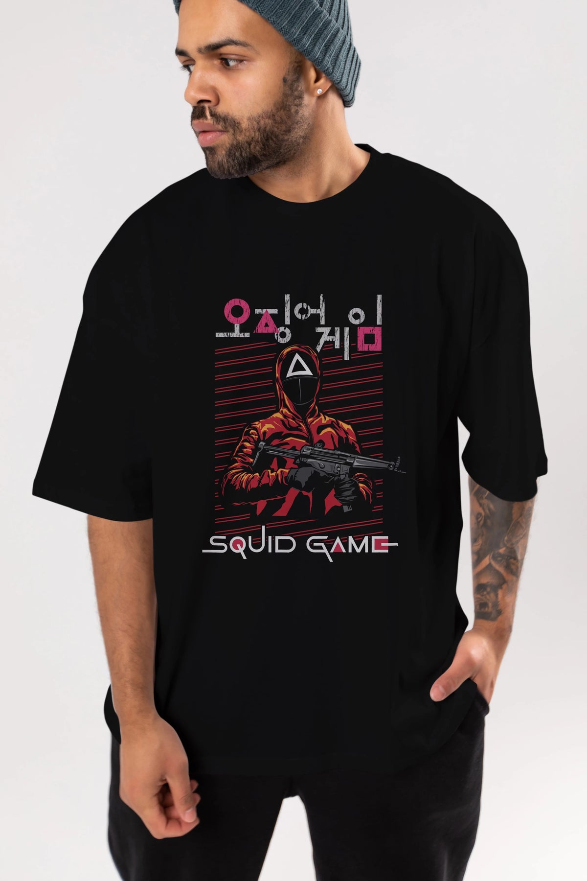 Squid Game (2) Ön Baskılı Oversize t-shirt Erkek Kadın Unisex %100 Pamuk Bisiklet Yaka tişort