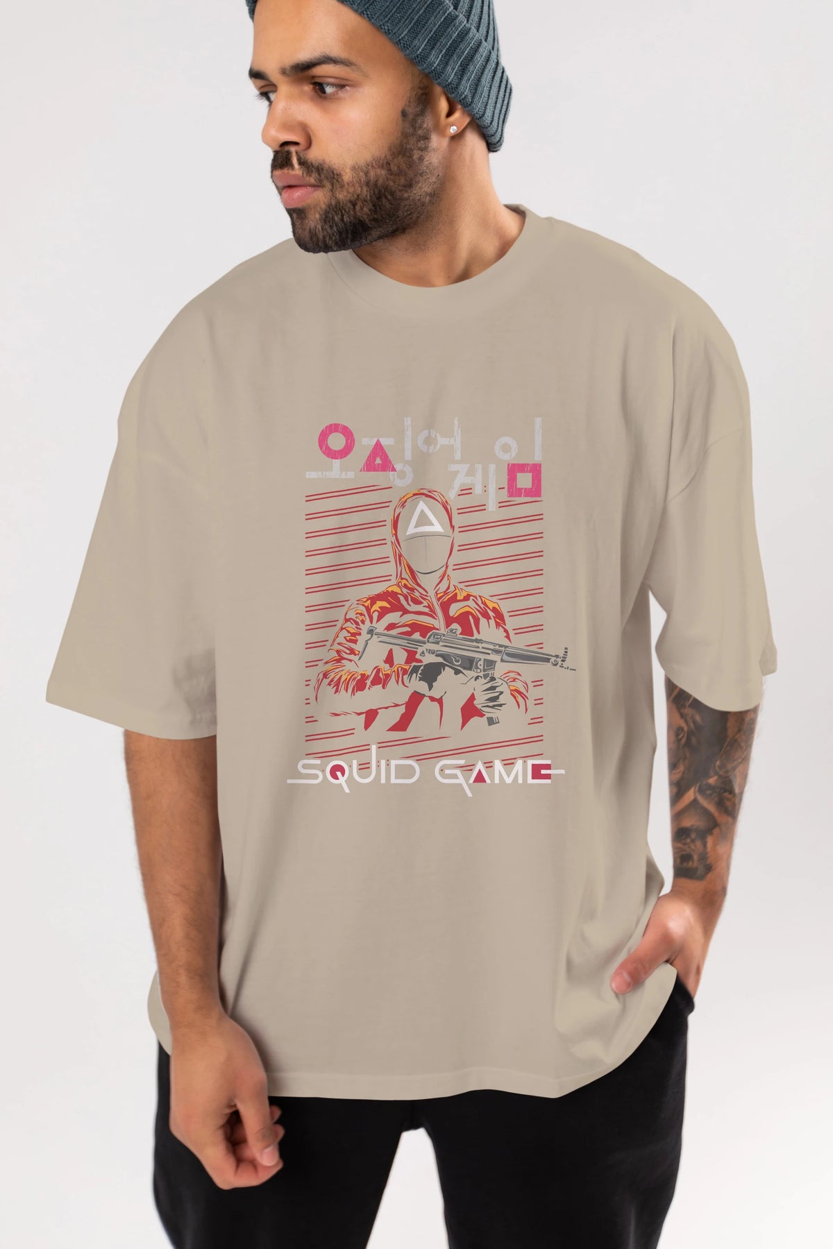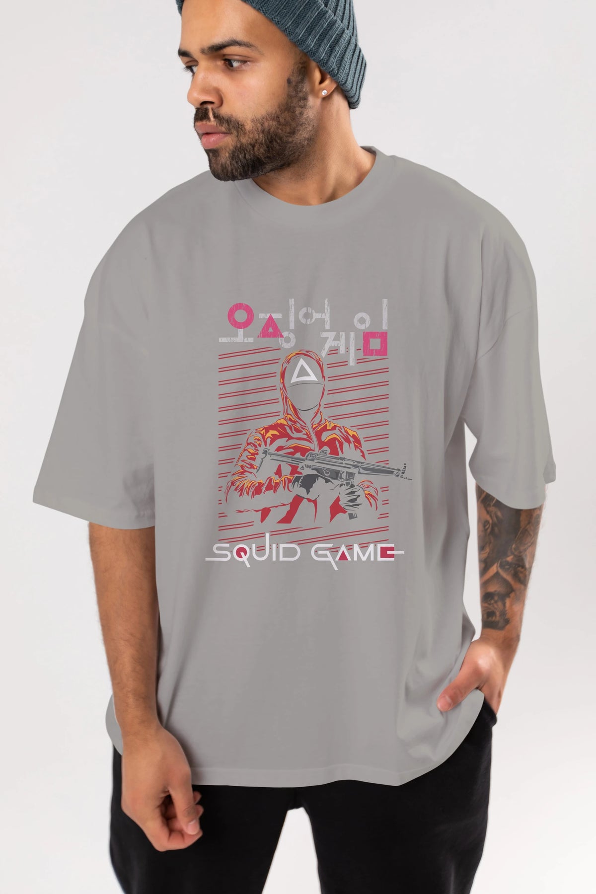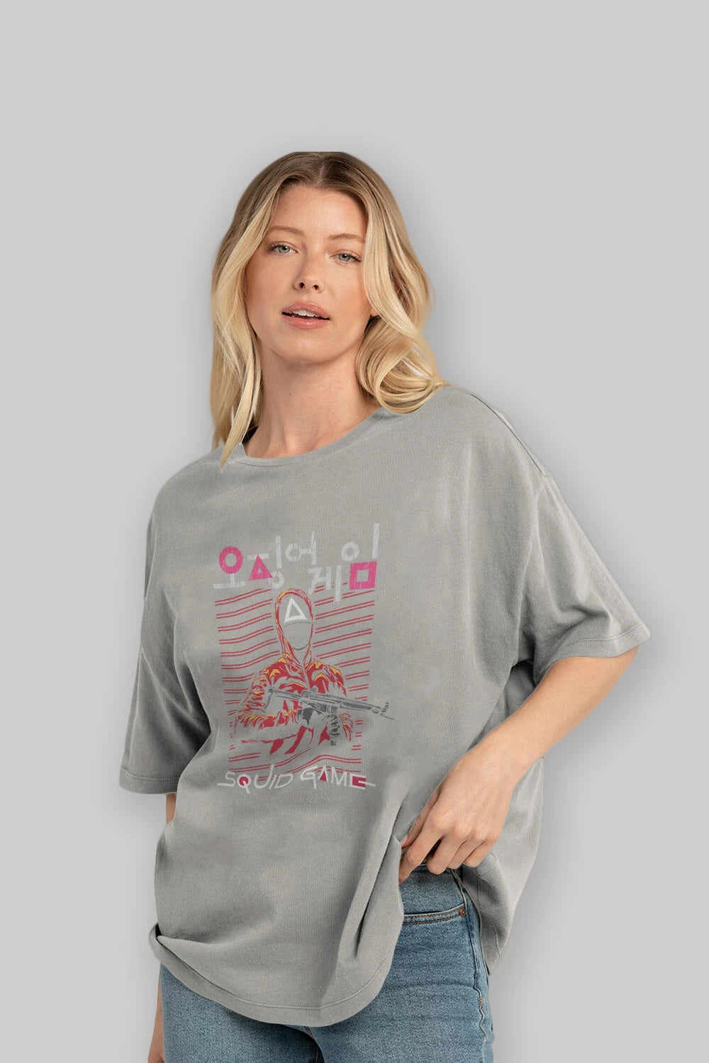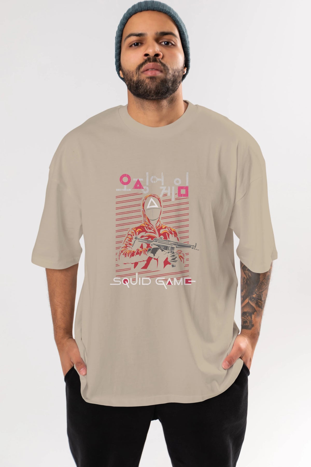 Squid Game (2) Ön Baskılı Oversize t-shirt Erkek Kadın Unisex %100 Pamuk Bisiklet Yaka tişort