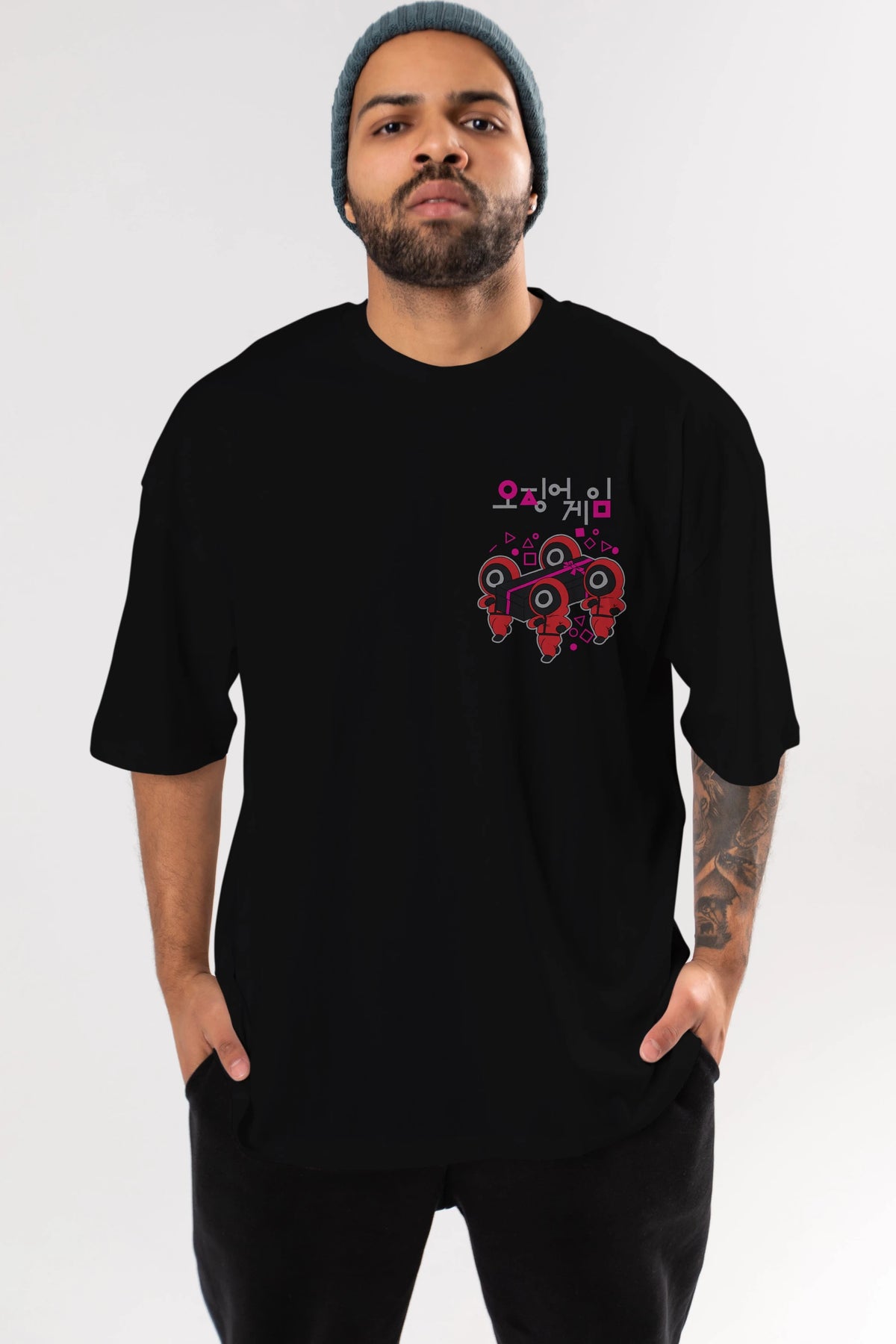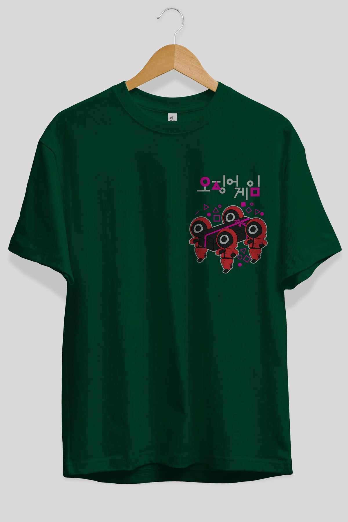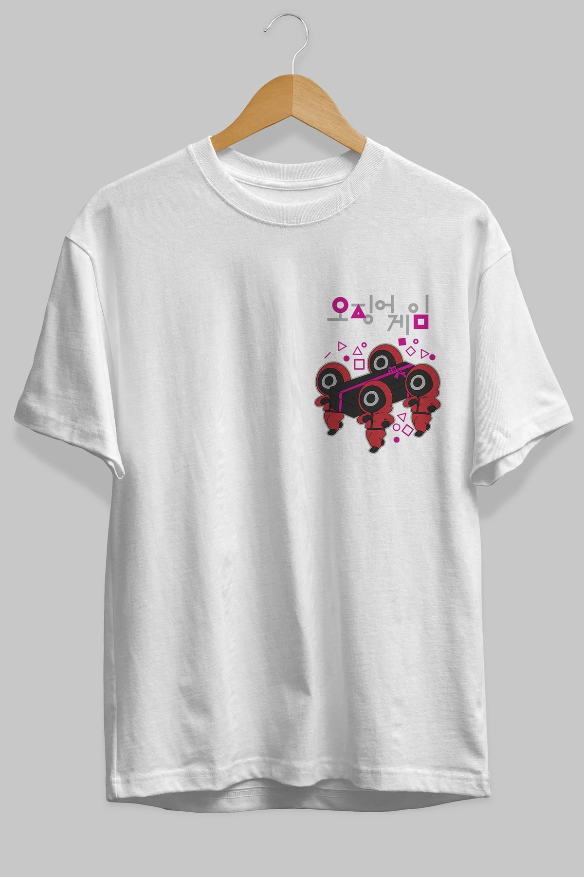 Squid Game (6) Ön Sol Baskılı Oversize t-shirt Erkek Kadın Unisex %100 Pamuk Bisiklet Yaka tişort