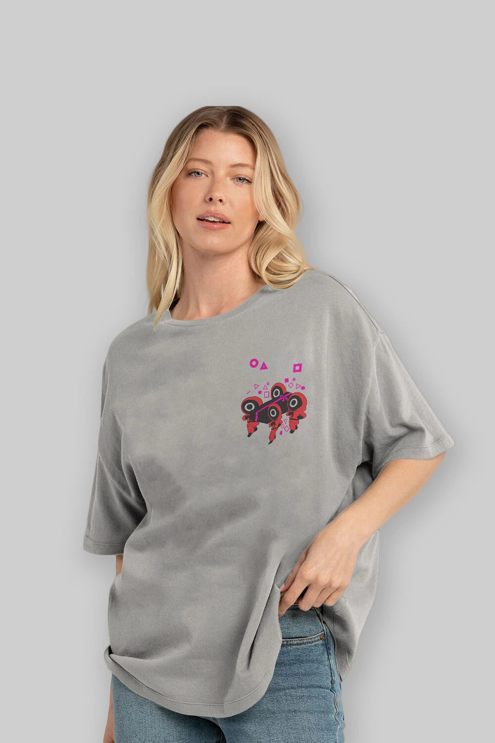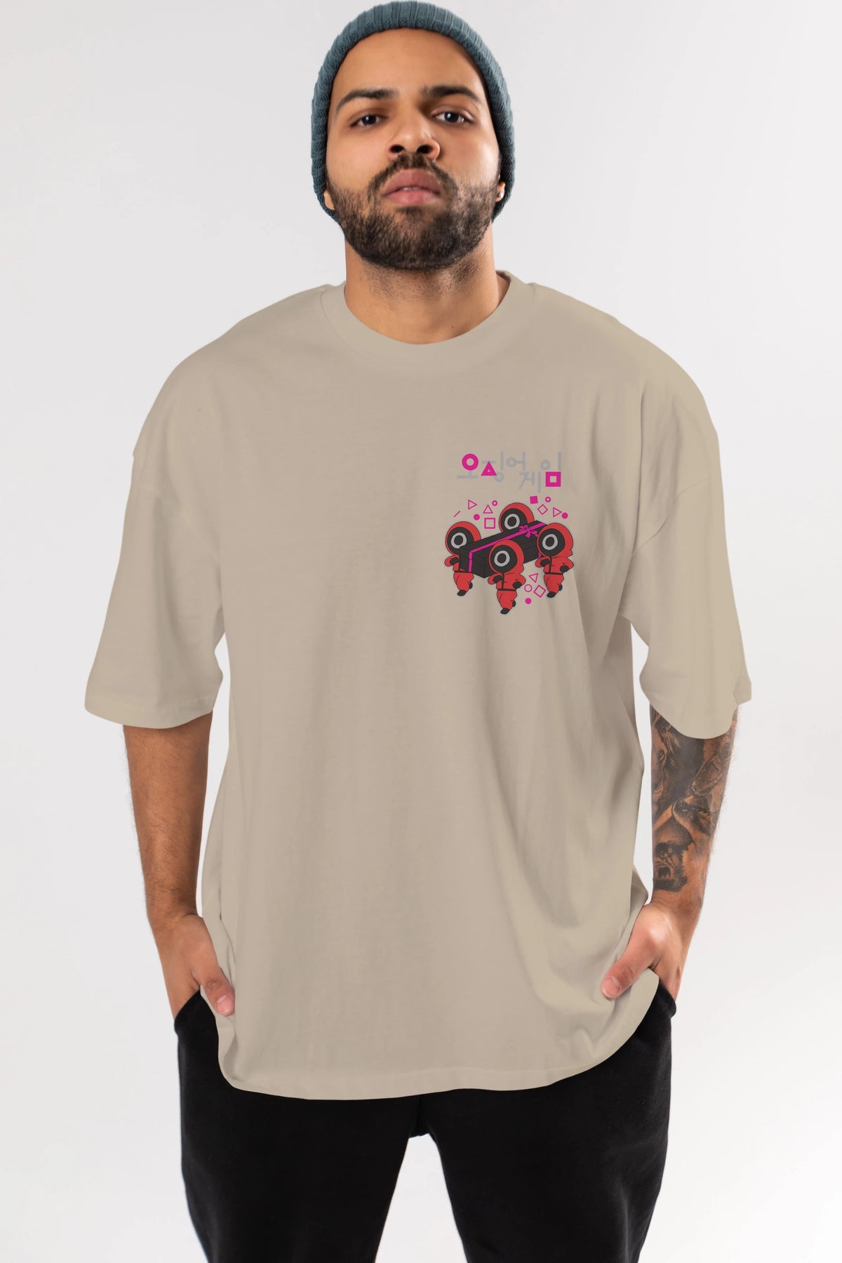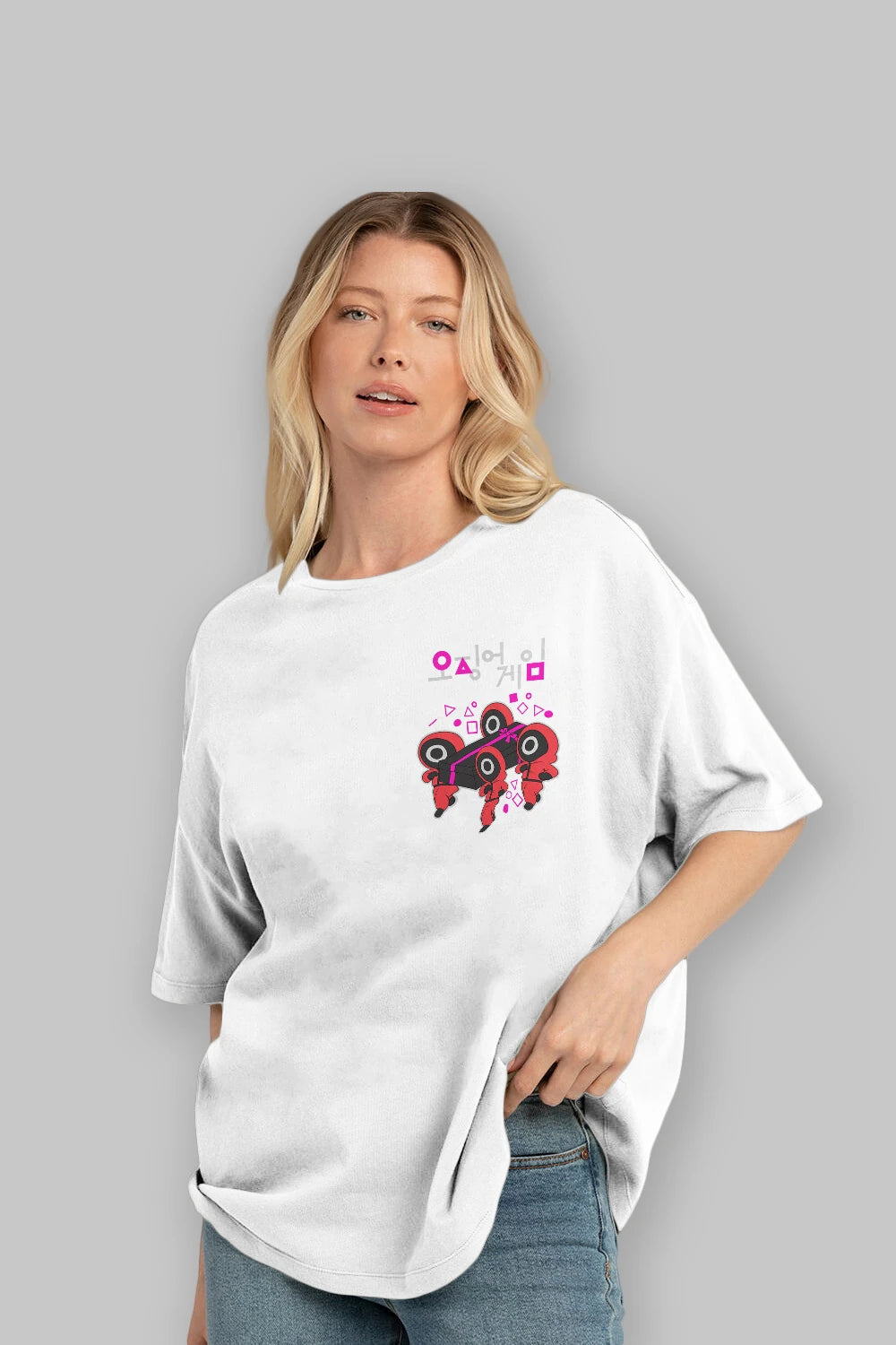 Squid Game (6) Ön Sol Baskılı Oversize t-shirt Erkek Kadın Unisex %100 Pamuk Bisiklet Yaka tişort