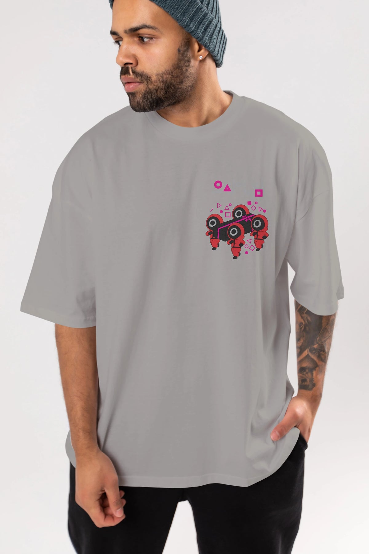 Tarzınıza şıklık katmak için tasarlanan bu unisex baskılı oversize t-shirt, gardırobunuzun vazgeçilmezi olmaya aday!