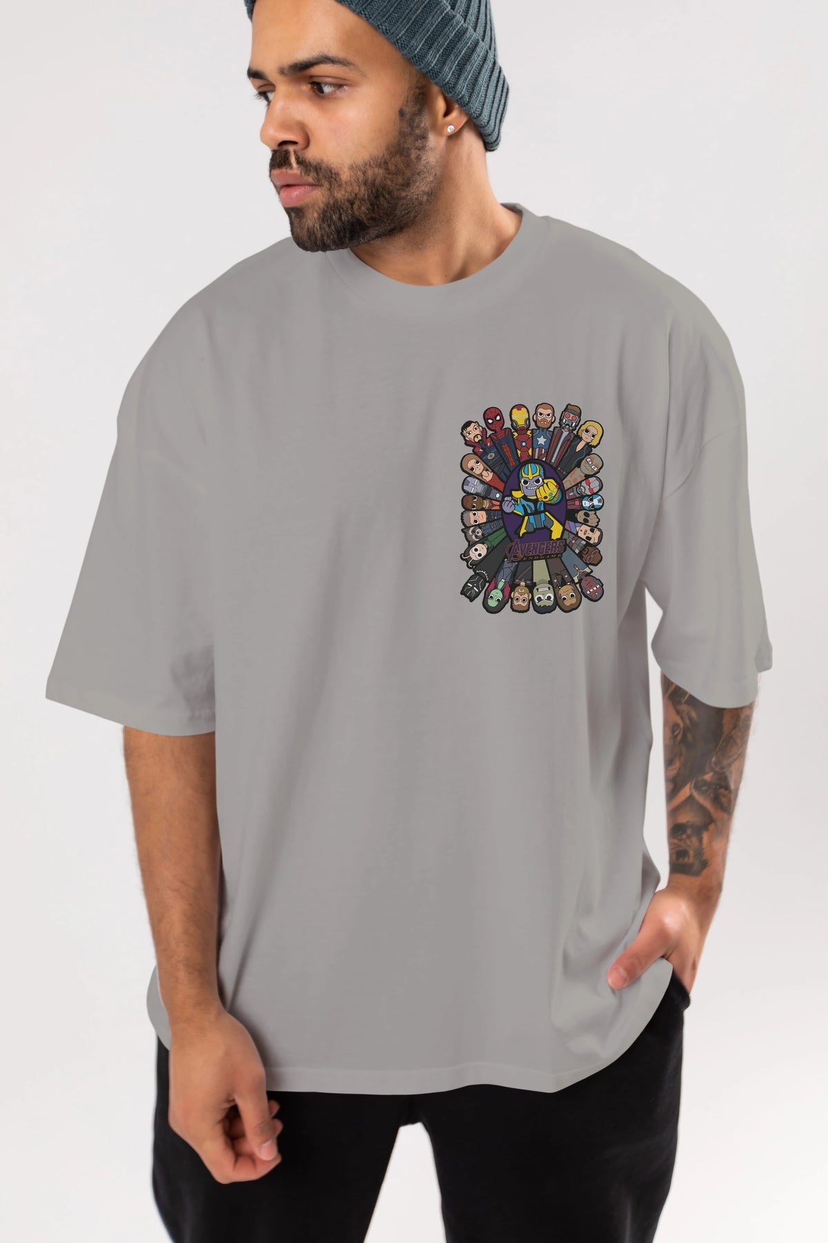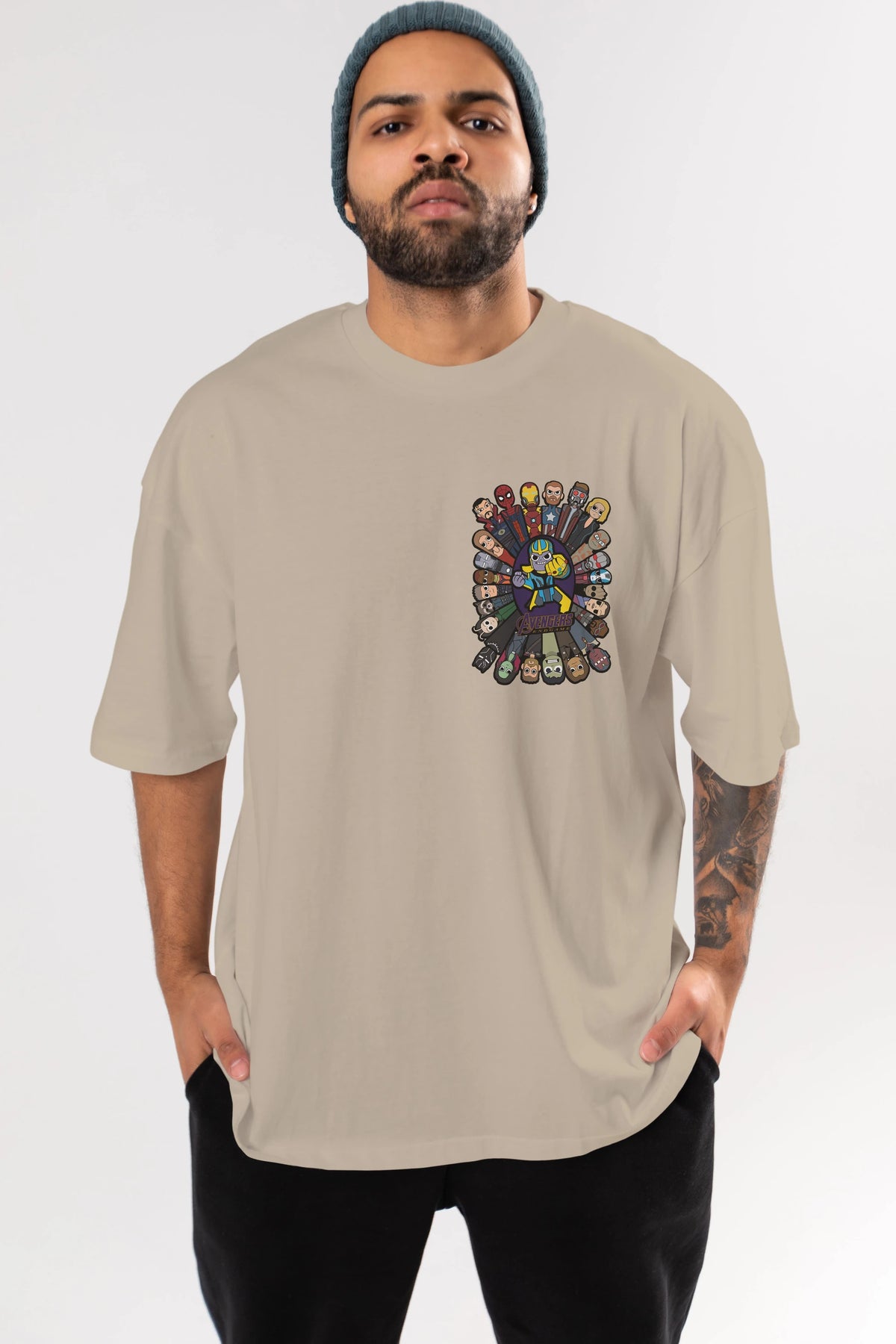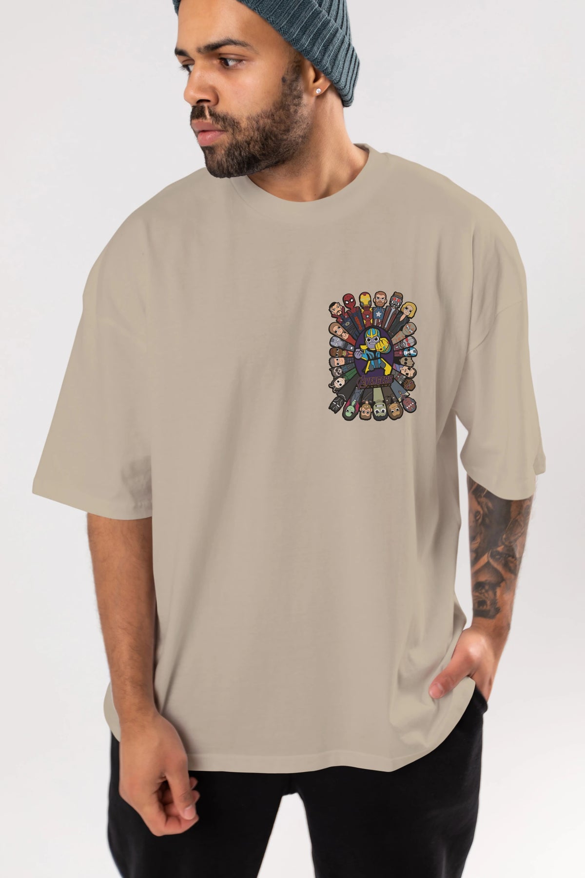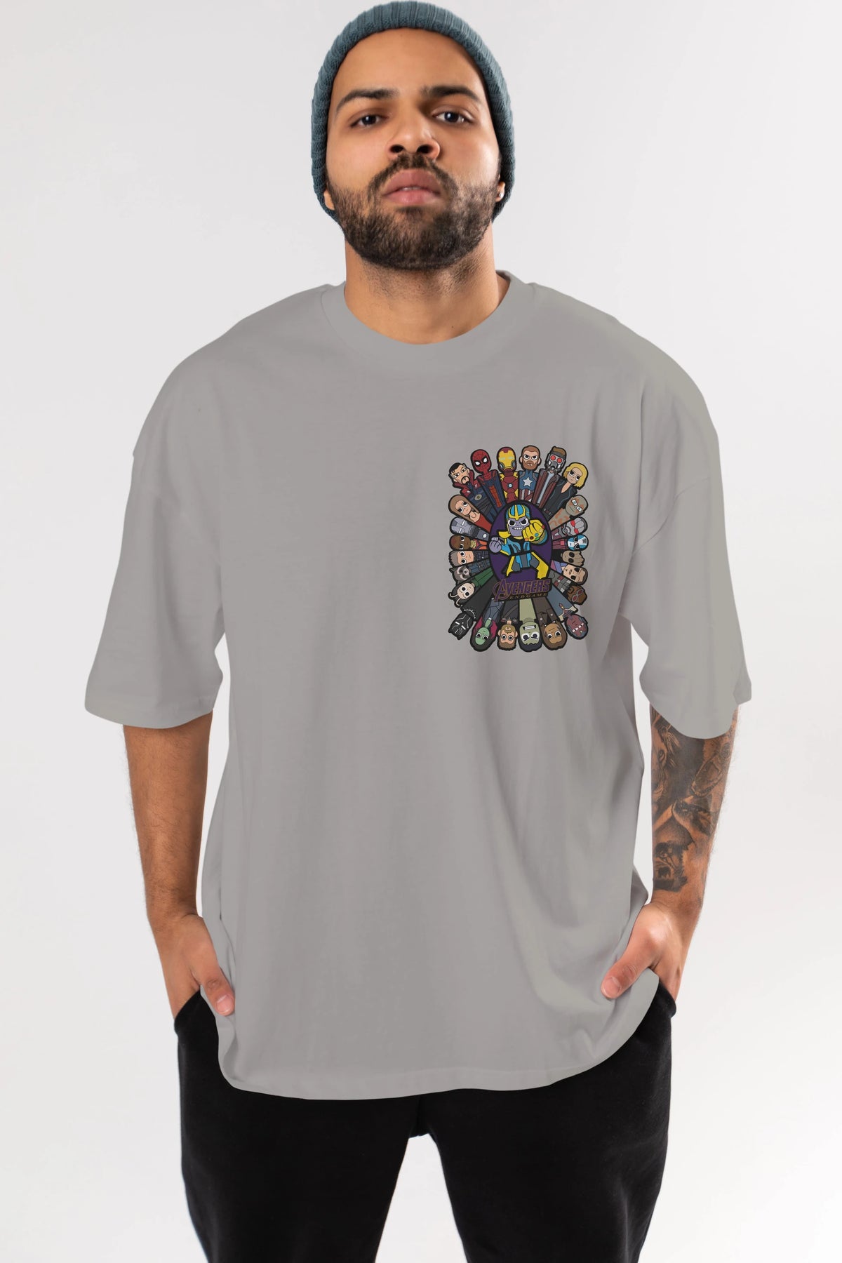 The Avengers (2) Ön Sol Baskılı Oversize t-shirt Erkek Kadın Unisex %100 Pamuk Bisiklet Yaka tişort