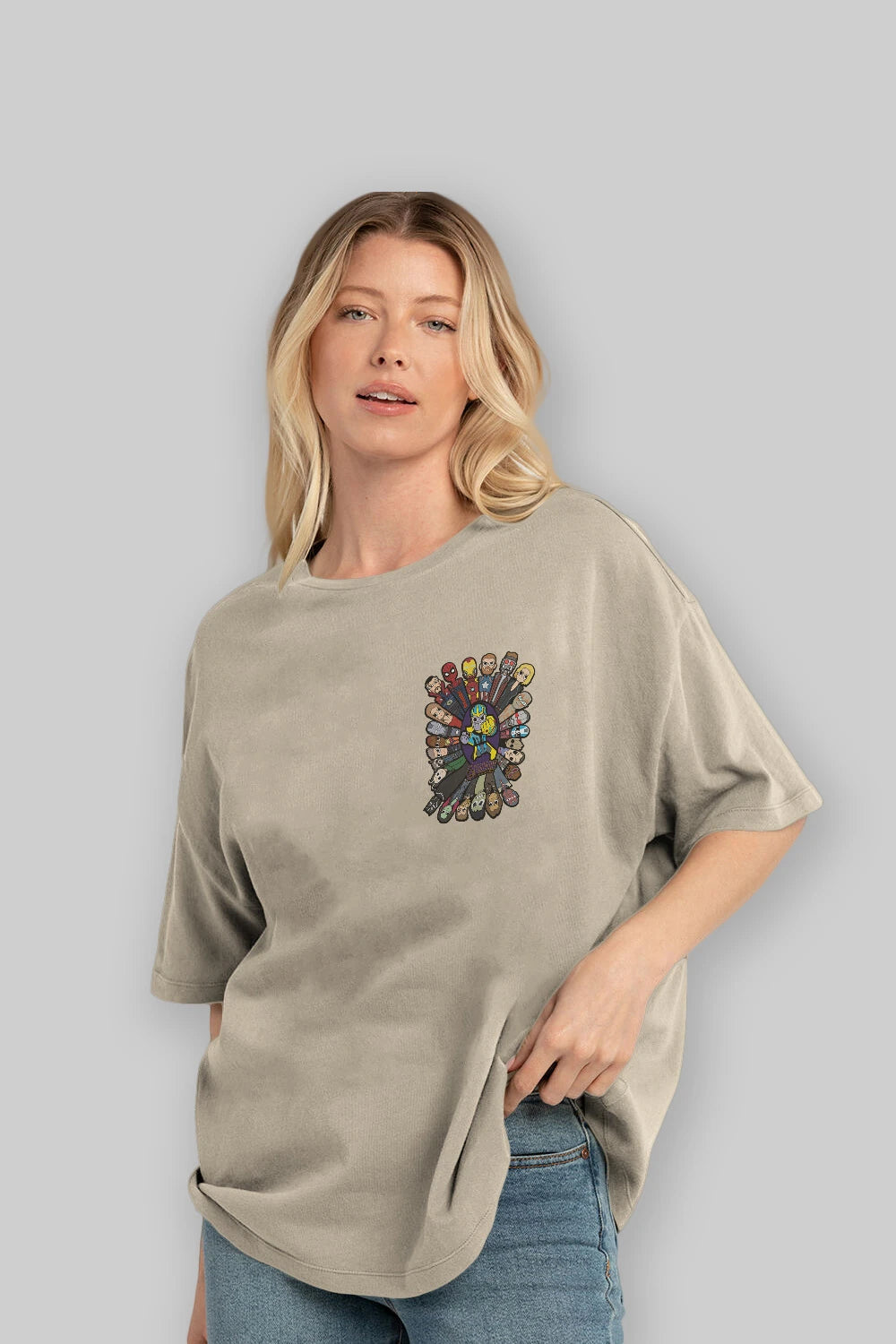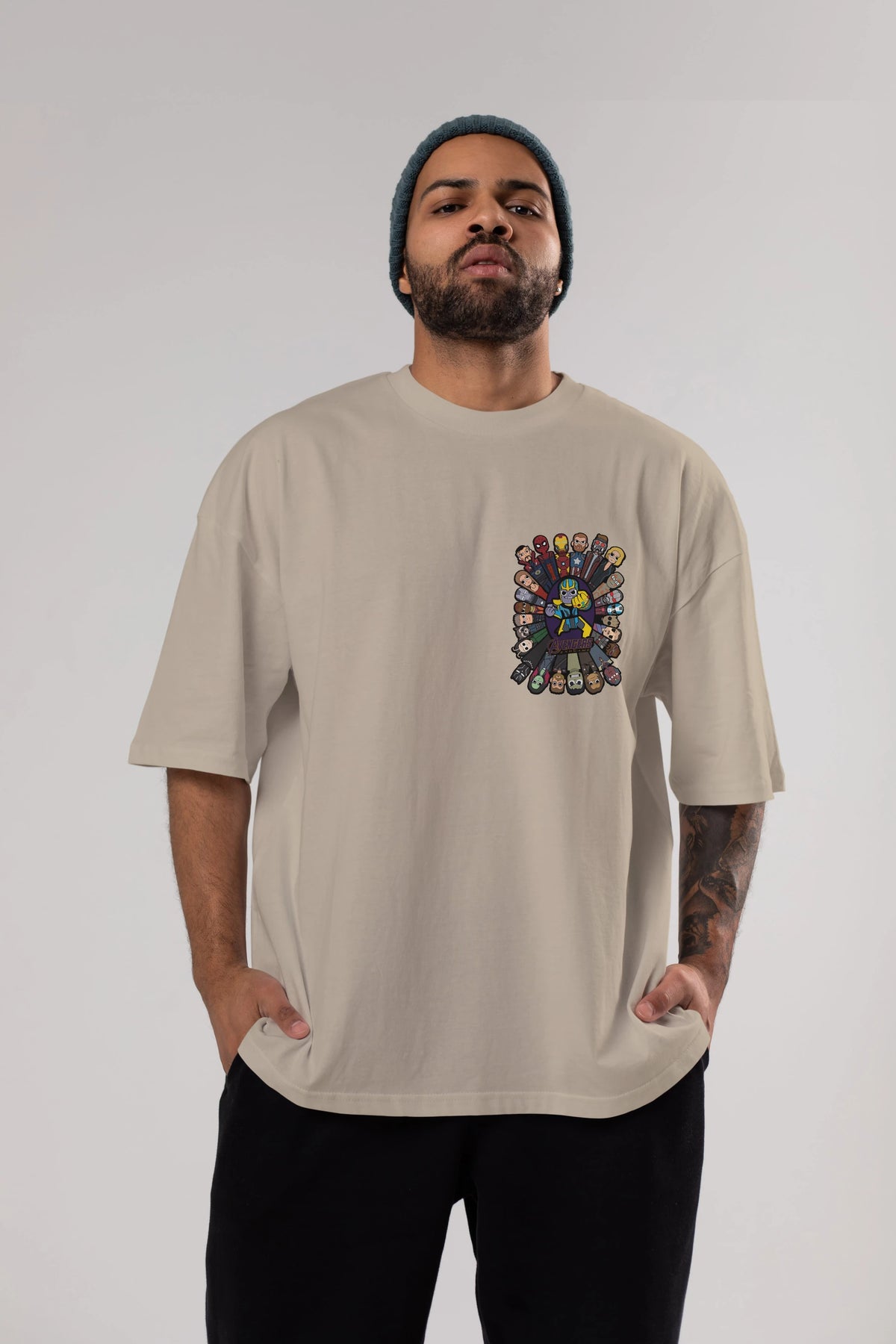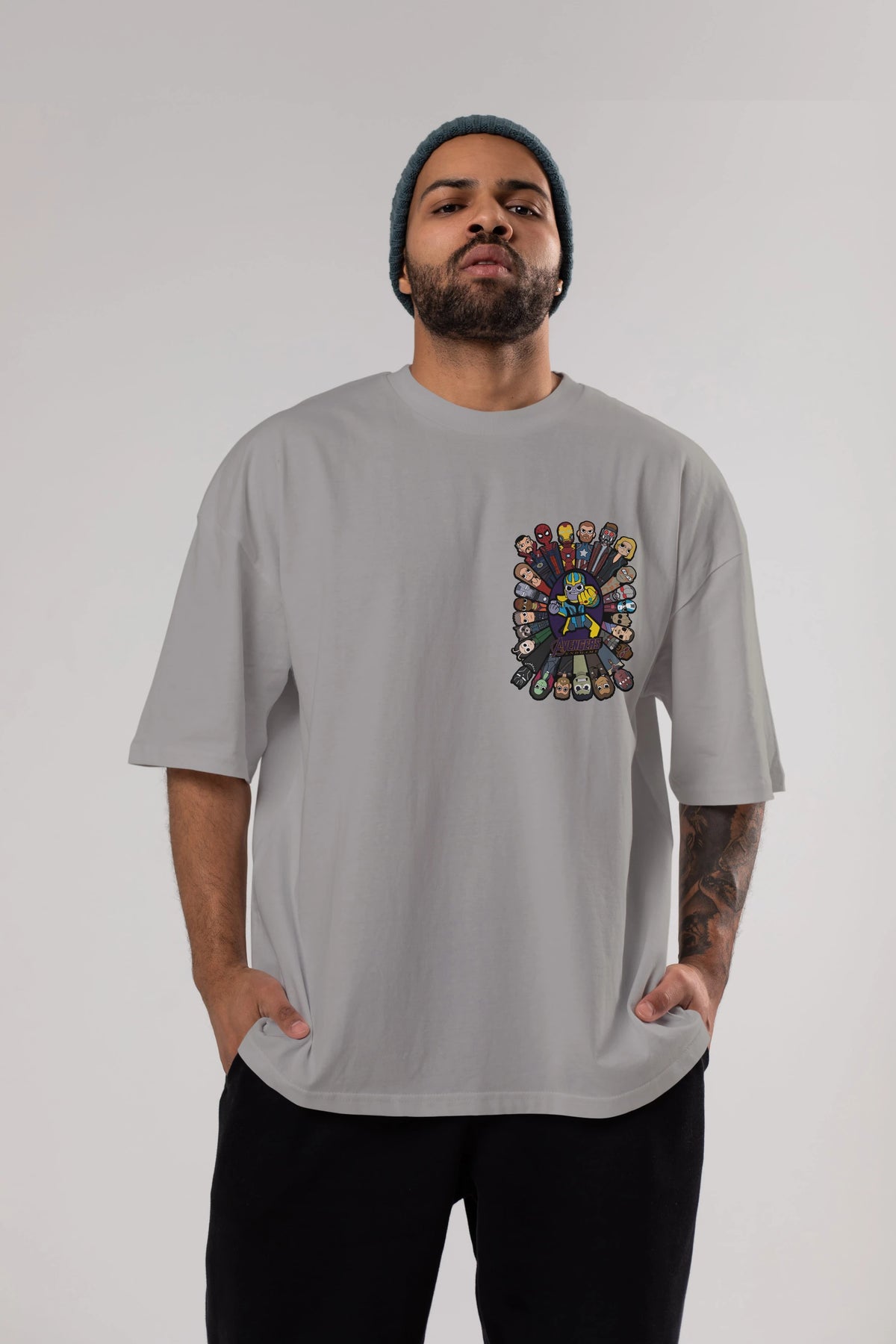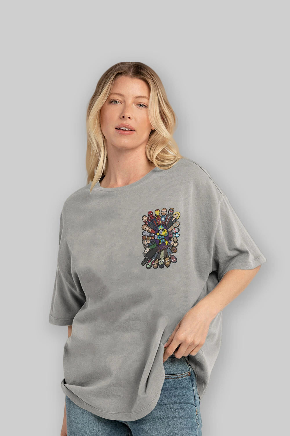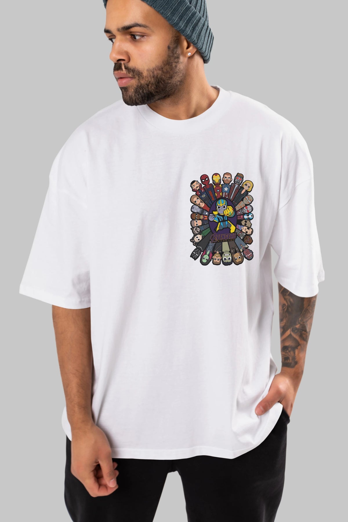 The Avengers (2) Ön Sol Baskılı Oversize t-shirt Erkek Kadın Unisex %100 Pamuk Bisiklet Yaka tişort