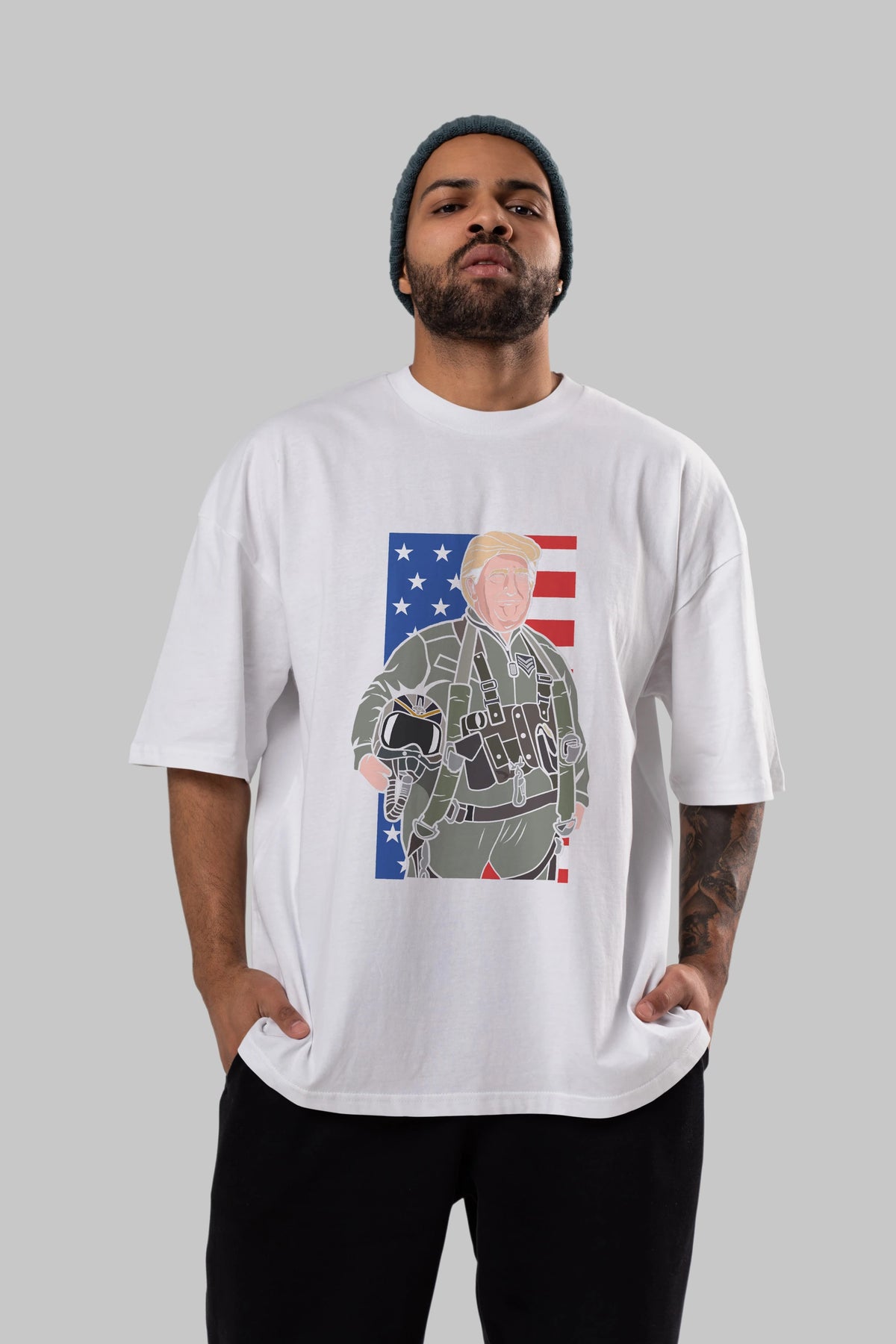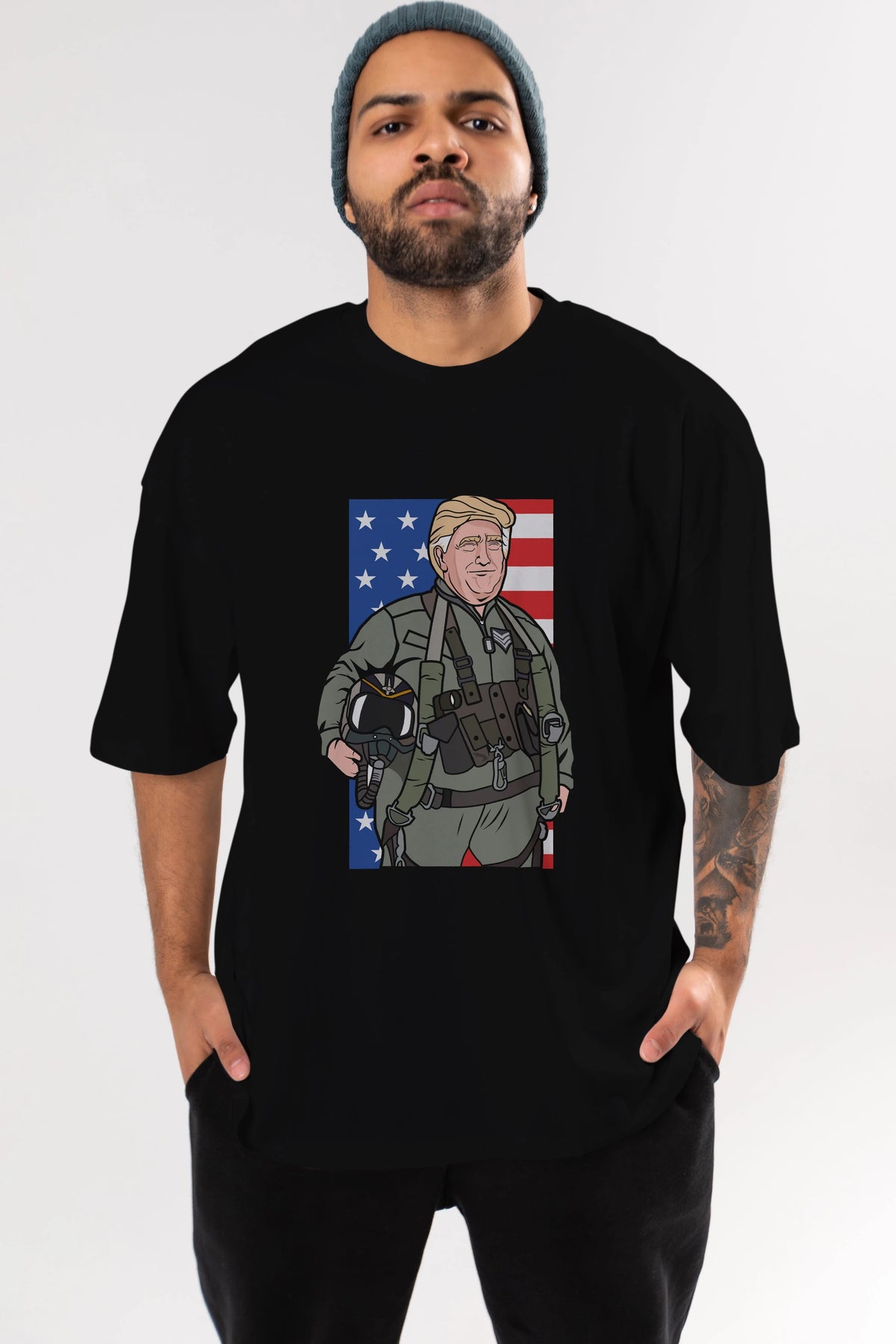 Trump Jetplane Pilot Ön Baskılı Oversize t-shirt Erkek Kadın Unisex %100 Pamuk tişort