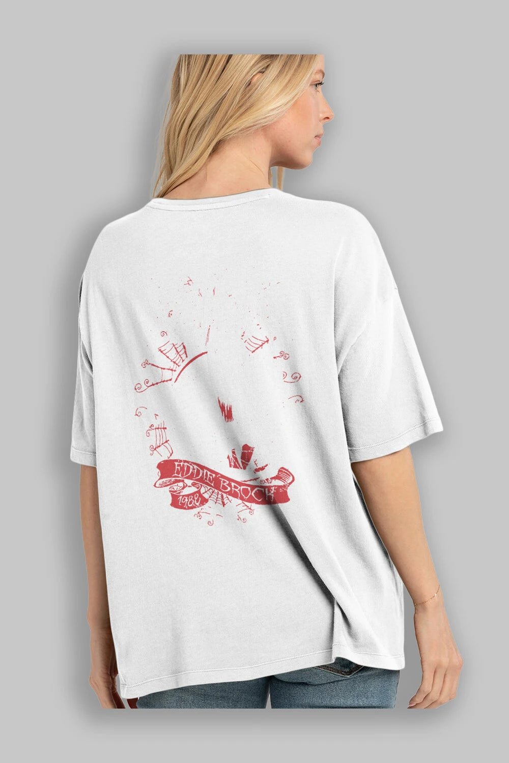 Hem erkekler hem de kadınlar için uygun, taze, modern bir baskıya sahip baskılı oversize t-shirt.