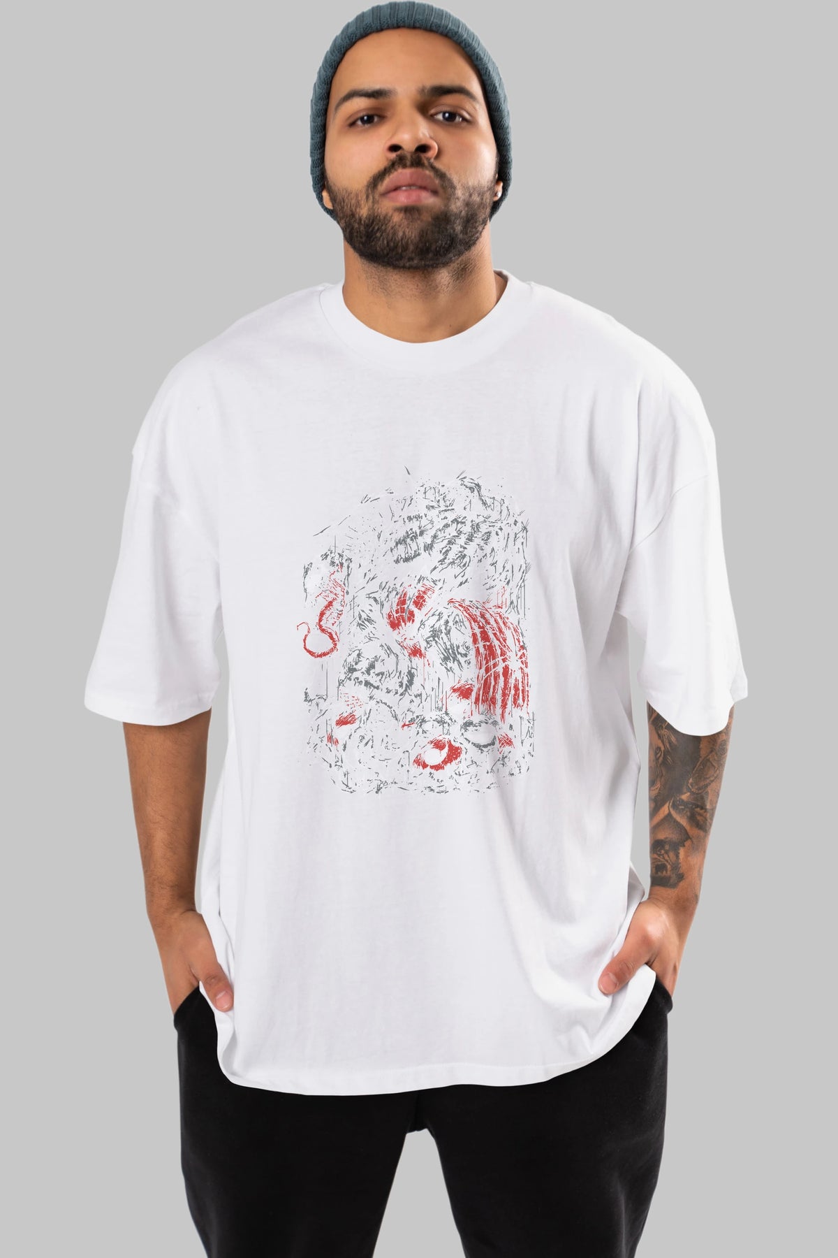 Unisex Baskılı Oversize t-shirt, gardırobunuza mükemmel bir ektir. Yumuşak ve hafif kumaştan üretilen bu şık tişort, kısa kollu ve Oversize uyumu ile tamamlanan klasik bir tasarımına sahiptir. Canlı baskılı grafikler, kalabalığın arasından şık bir şekilde sıyrılmanızı sağlayacaktır. Günlük giyim veya özel günler için mükemmel olan bu çok yönlü tişört, kısa sürede favorilerinizden biri haline gelecektir.