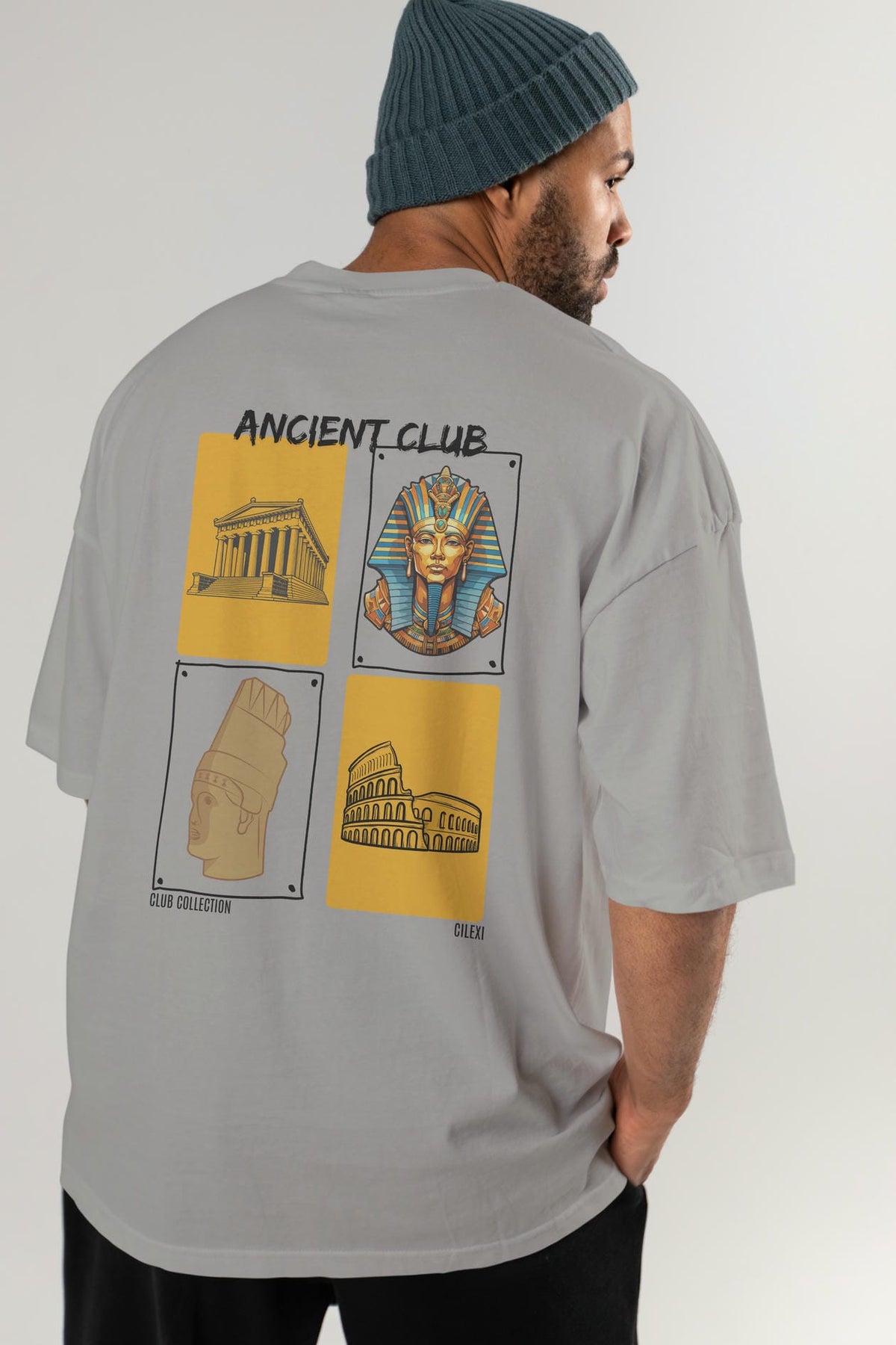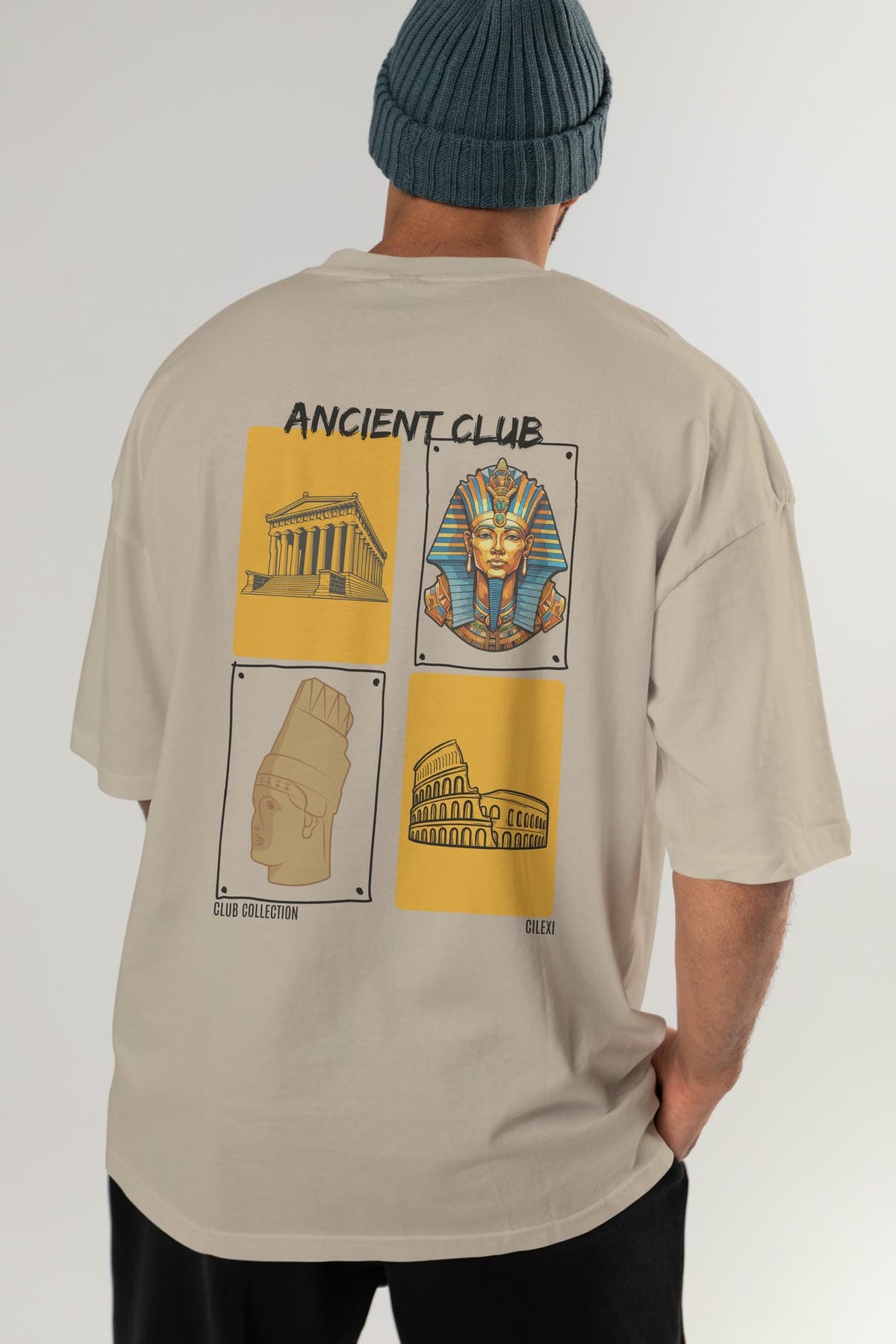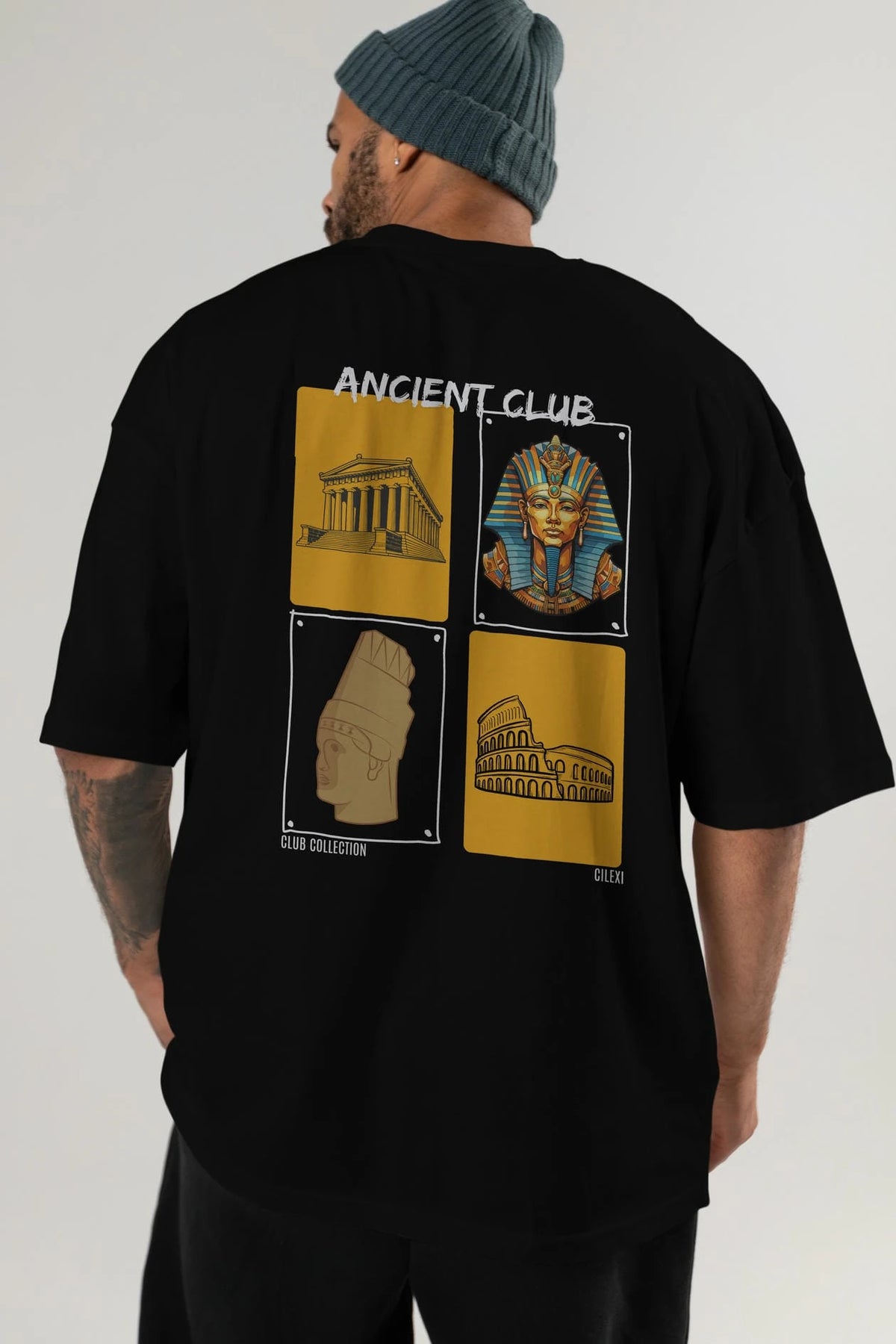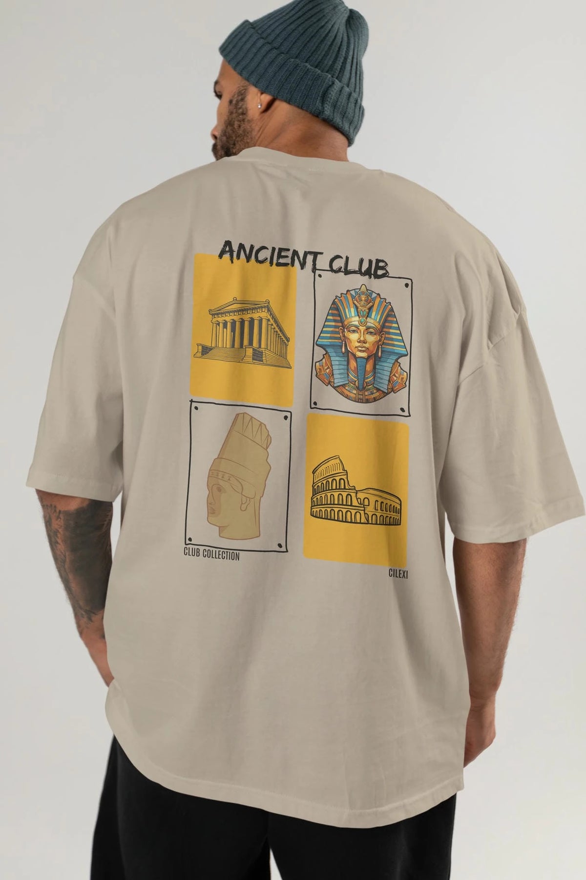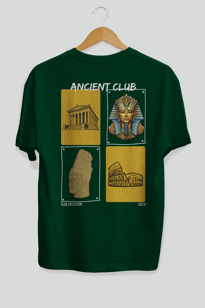 Ancient Club Arka Baskılı Oversize t-shirt Erkek Kadın %100 Pamuk Bisiklet Yaka tişort