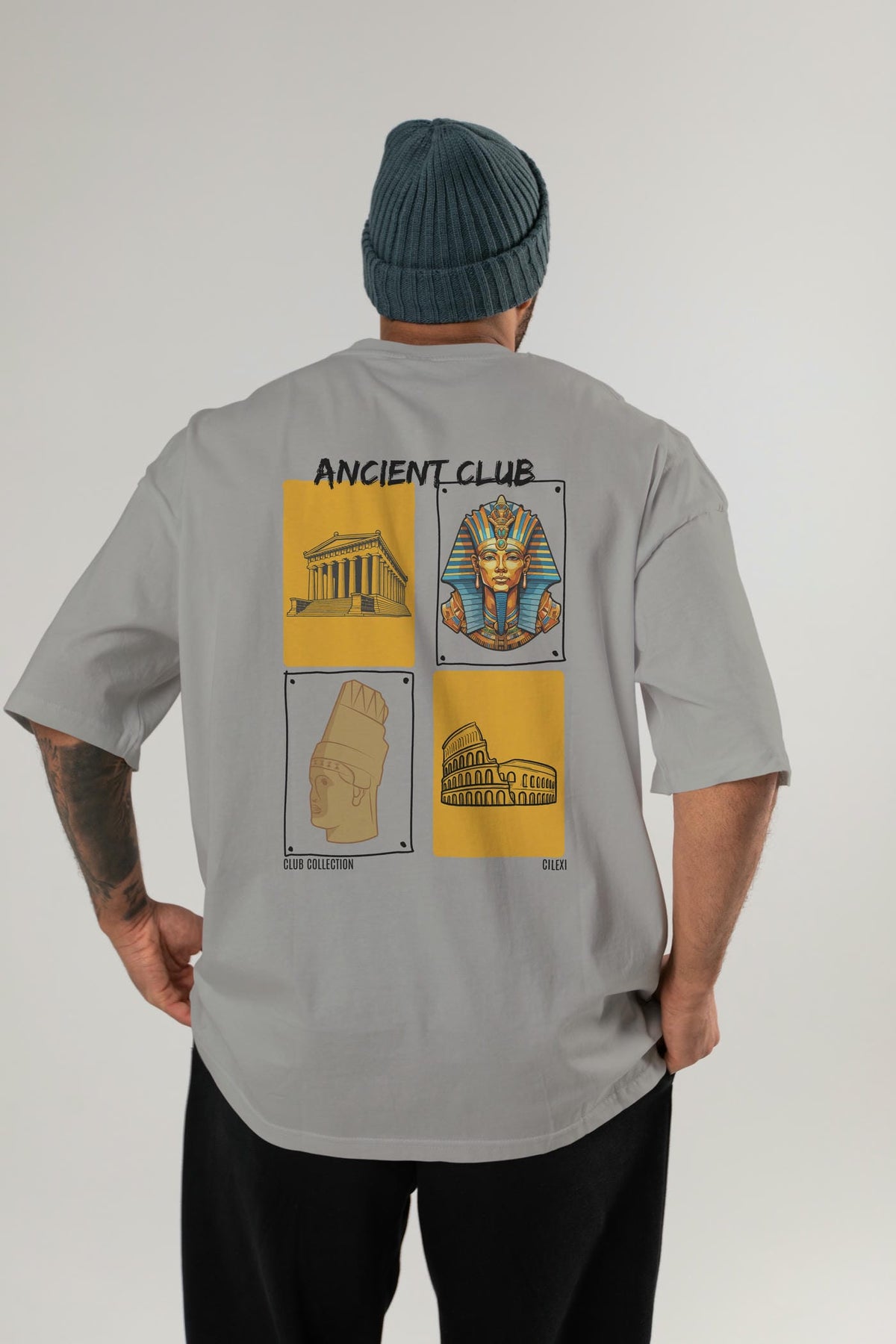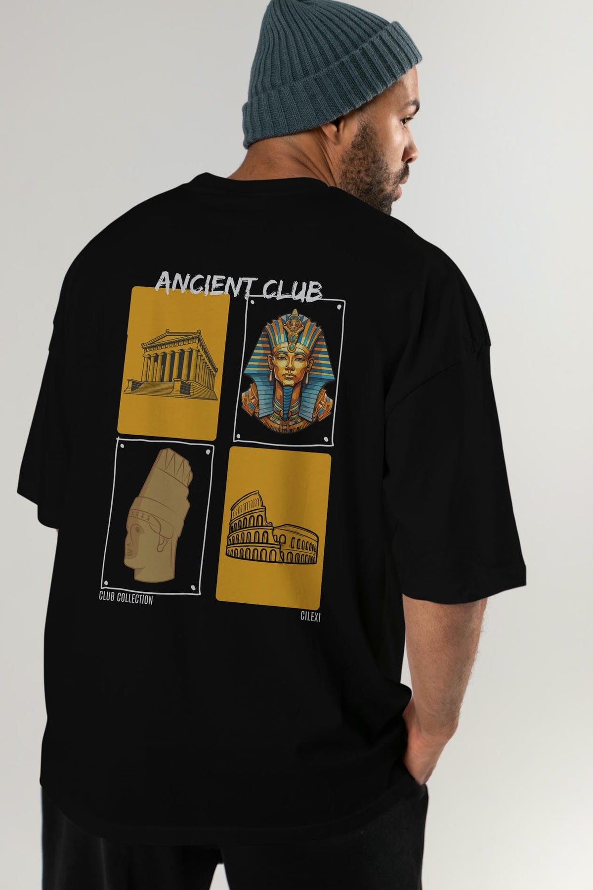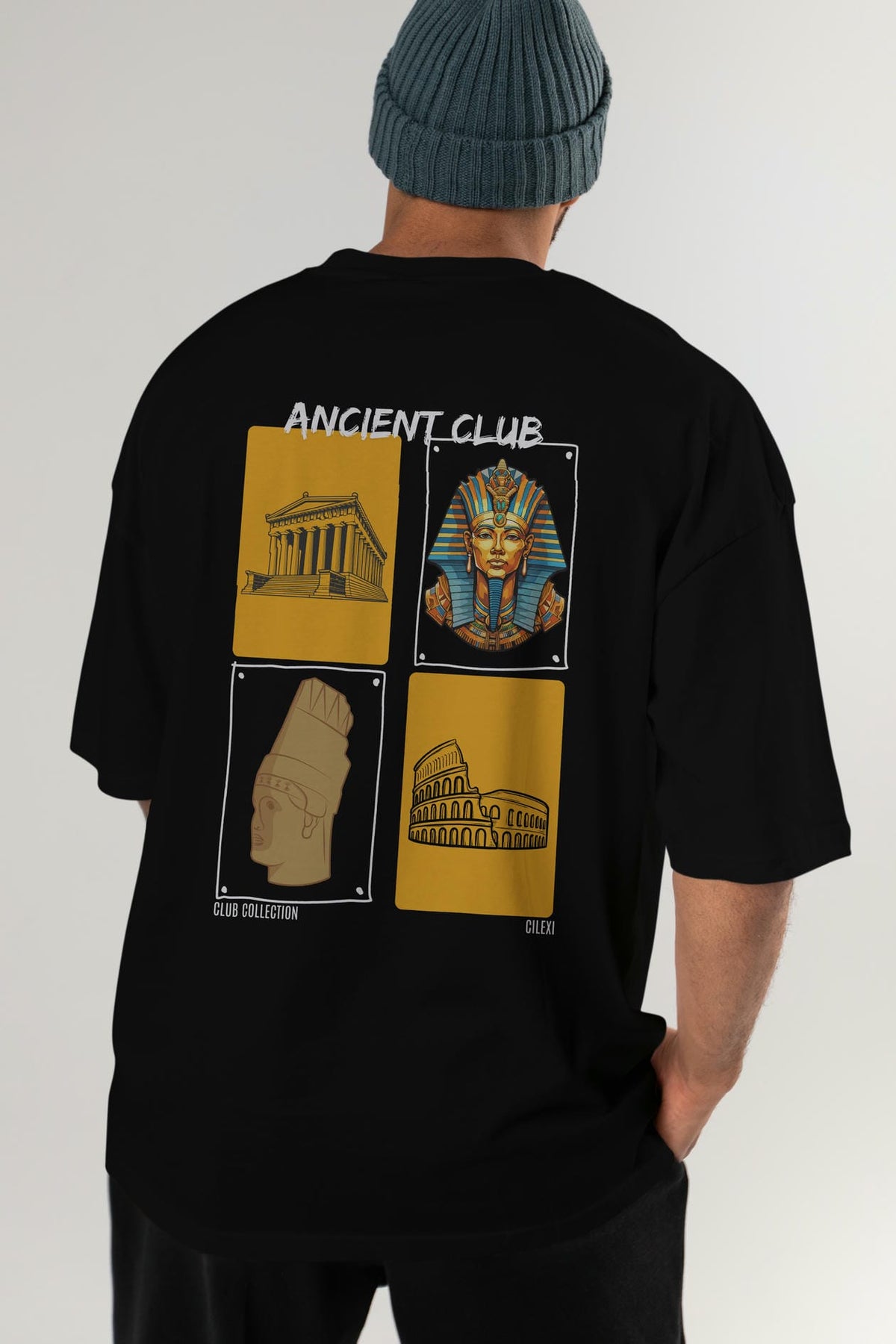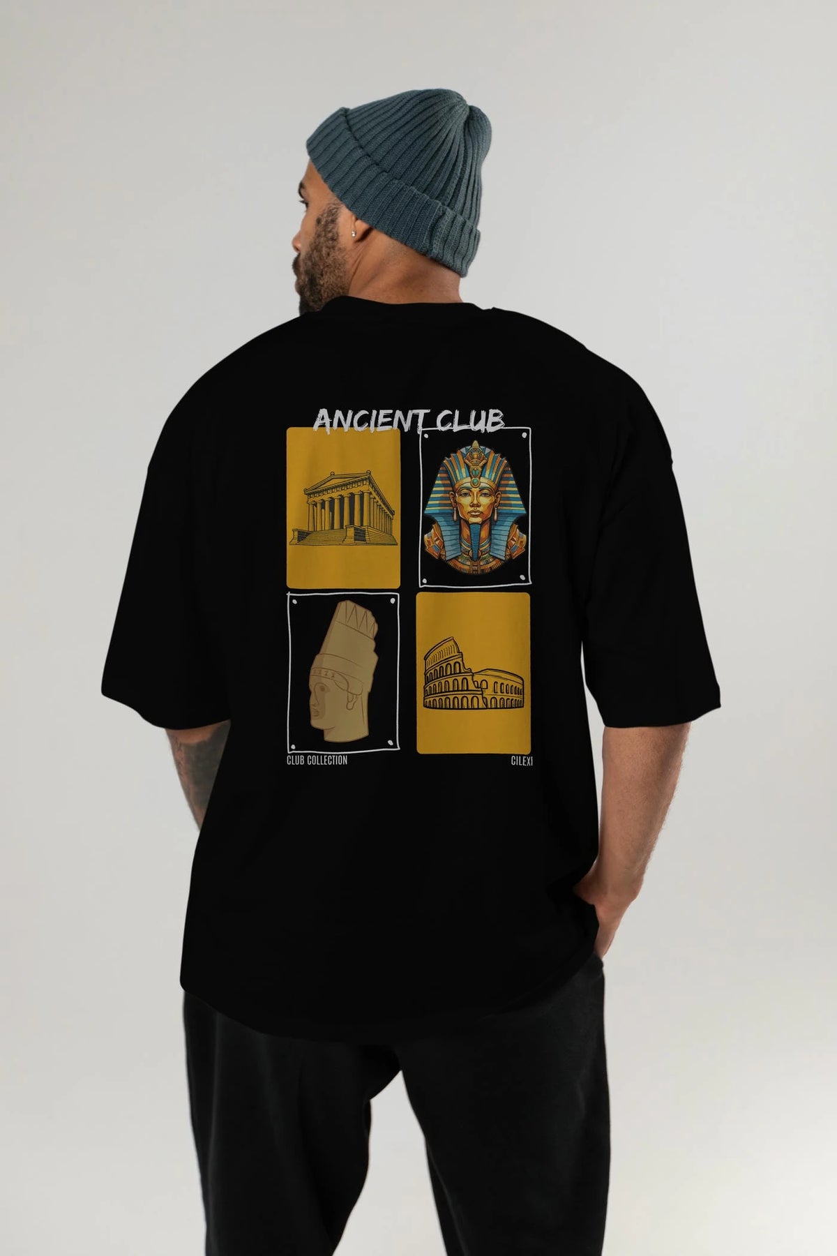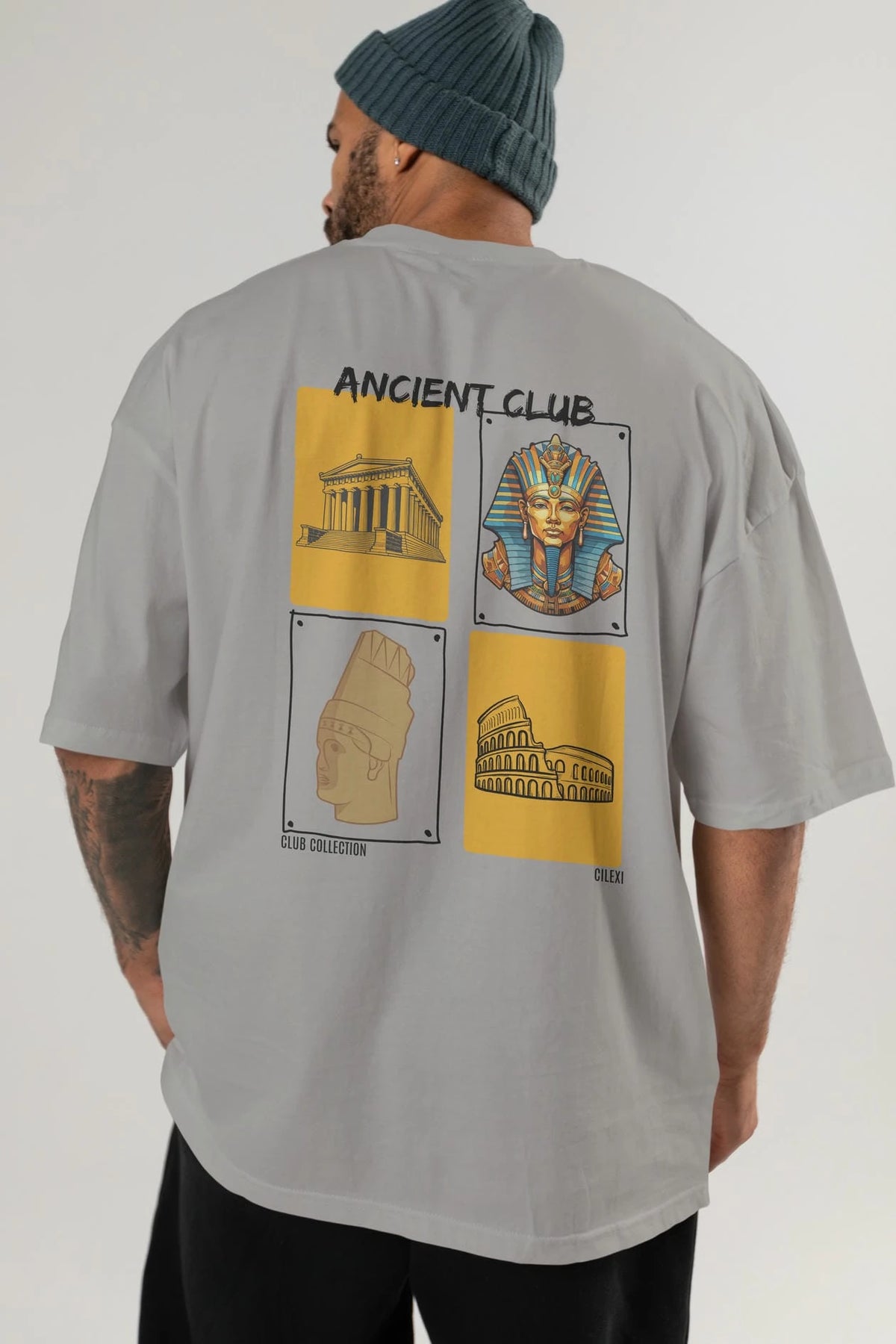 Ancient Club Arka Baskılı Oversize t-shirt Erkek Kadın %100 Pamuk Bisiklet Yaka tişort