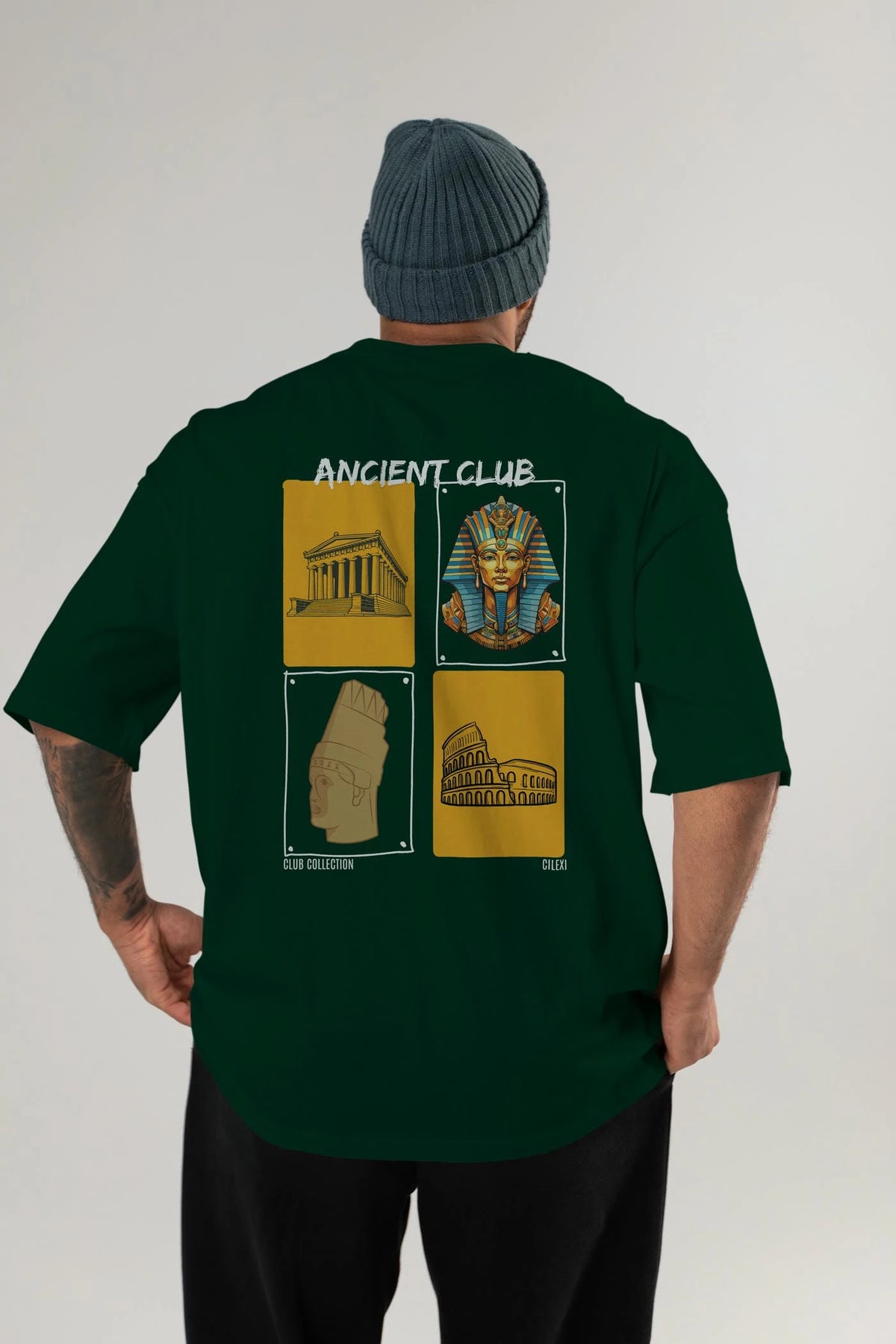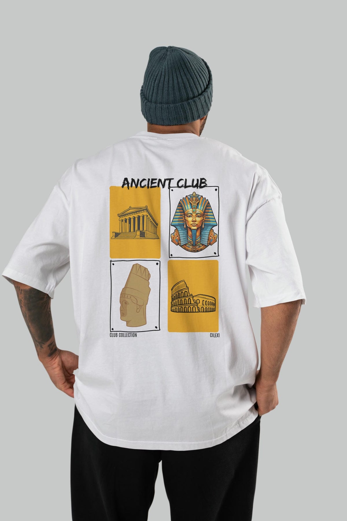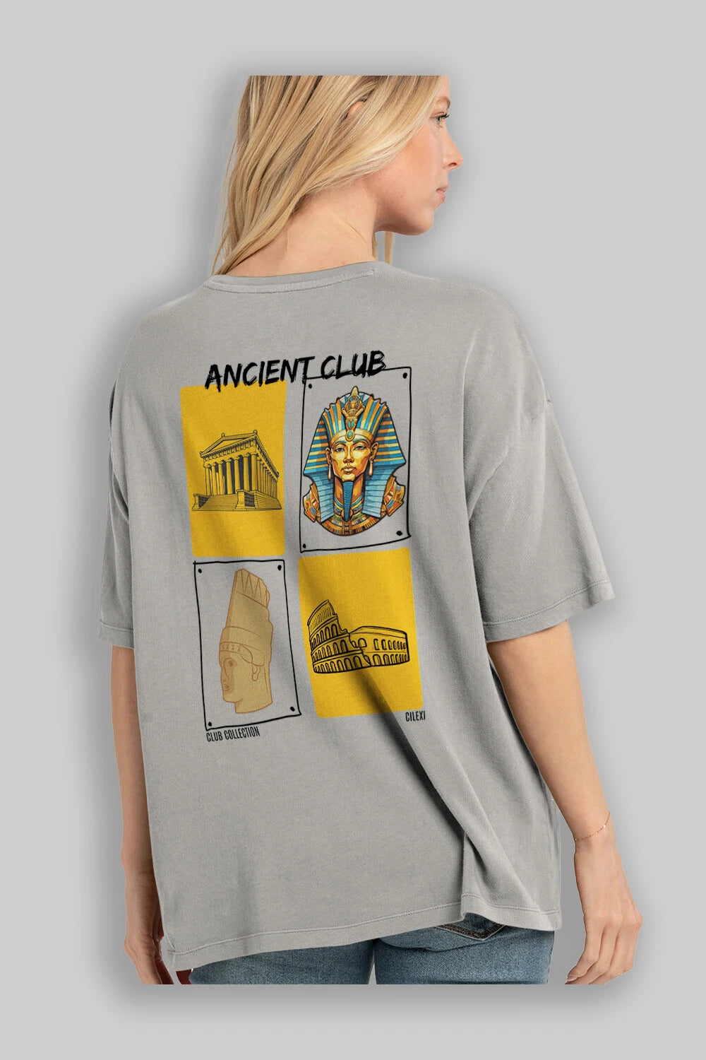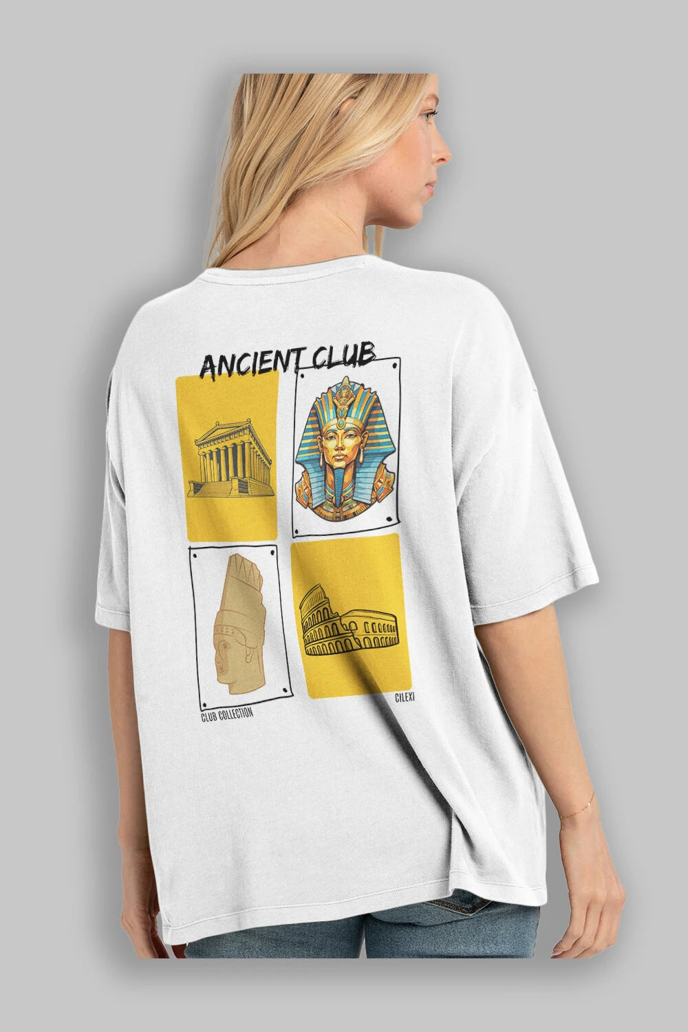 Ancient Club Arka Baskılı Oversize t-shirt Erkek Kadın %100 Pamuk Bisiklet Yaka tişort