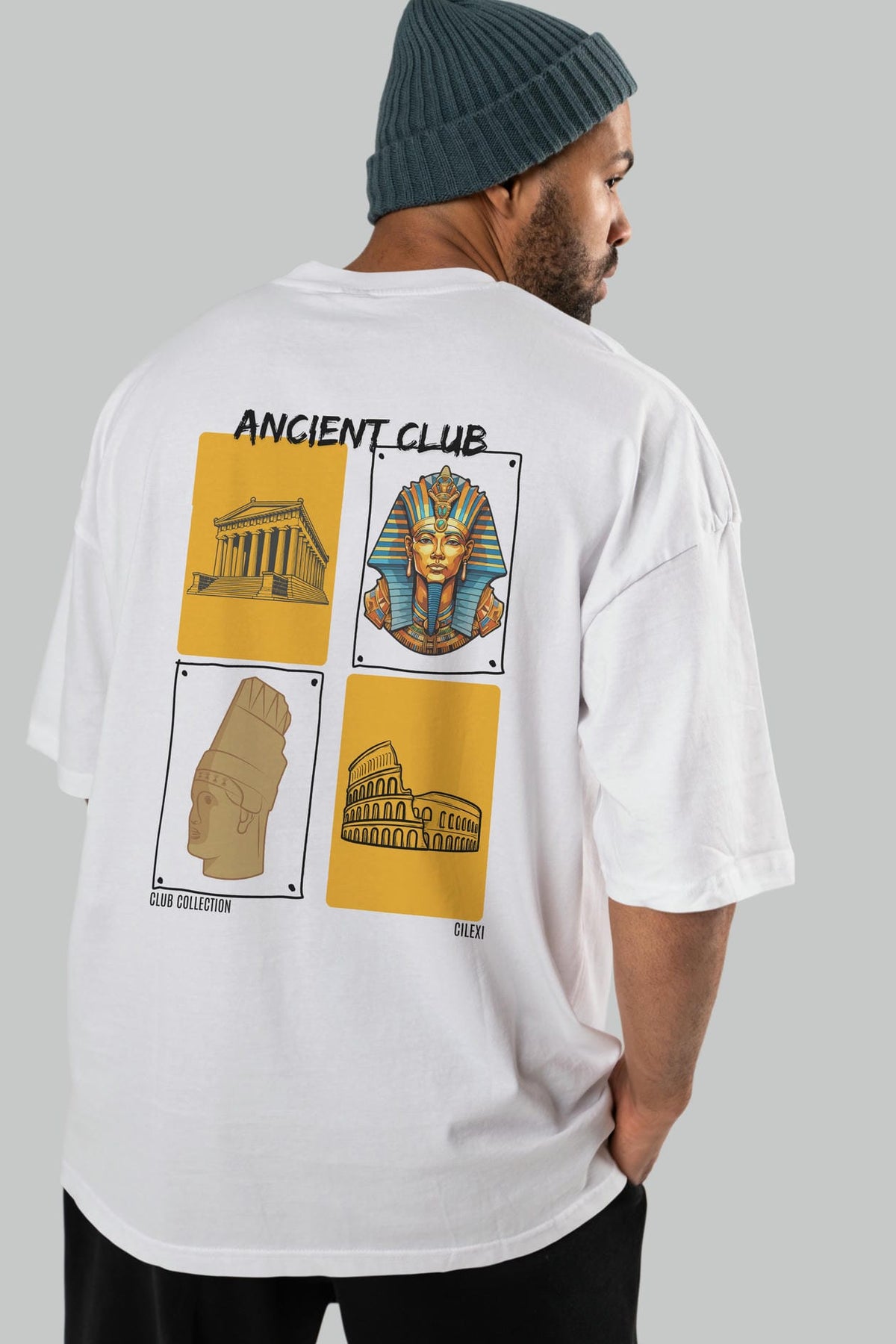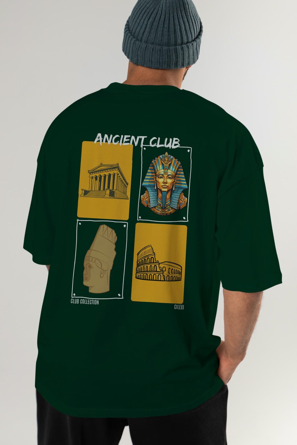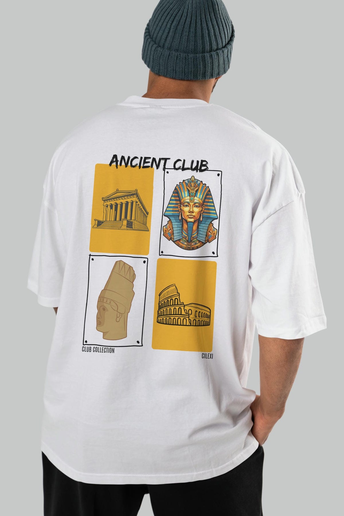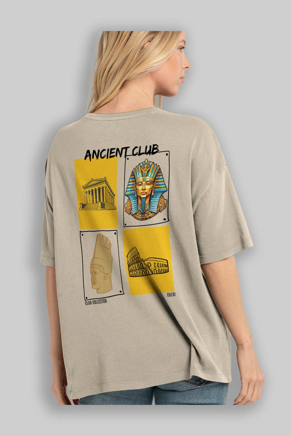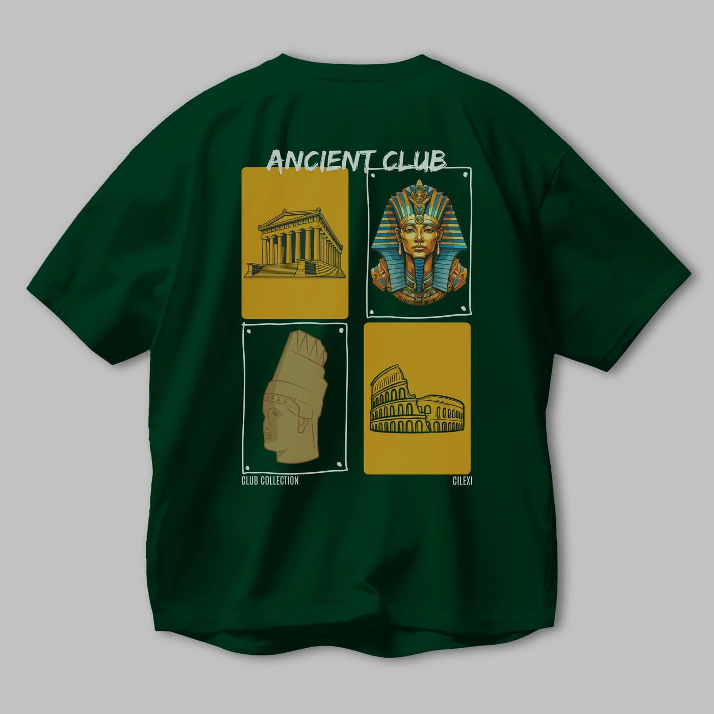 Ancient Club Arka Baskılı Oversize t-shirt Erkek Kadın %100 Pamuk Bisiklet Yaka tişort