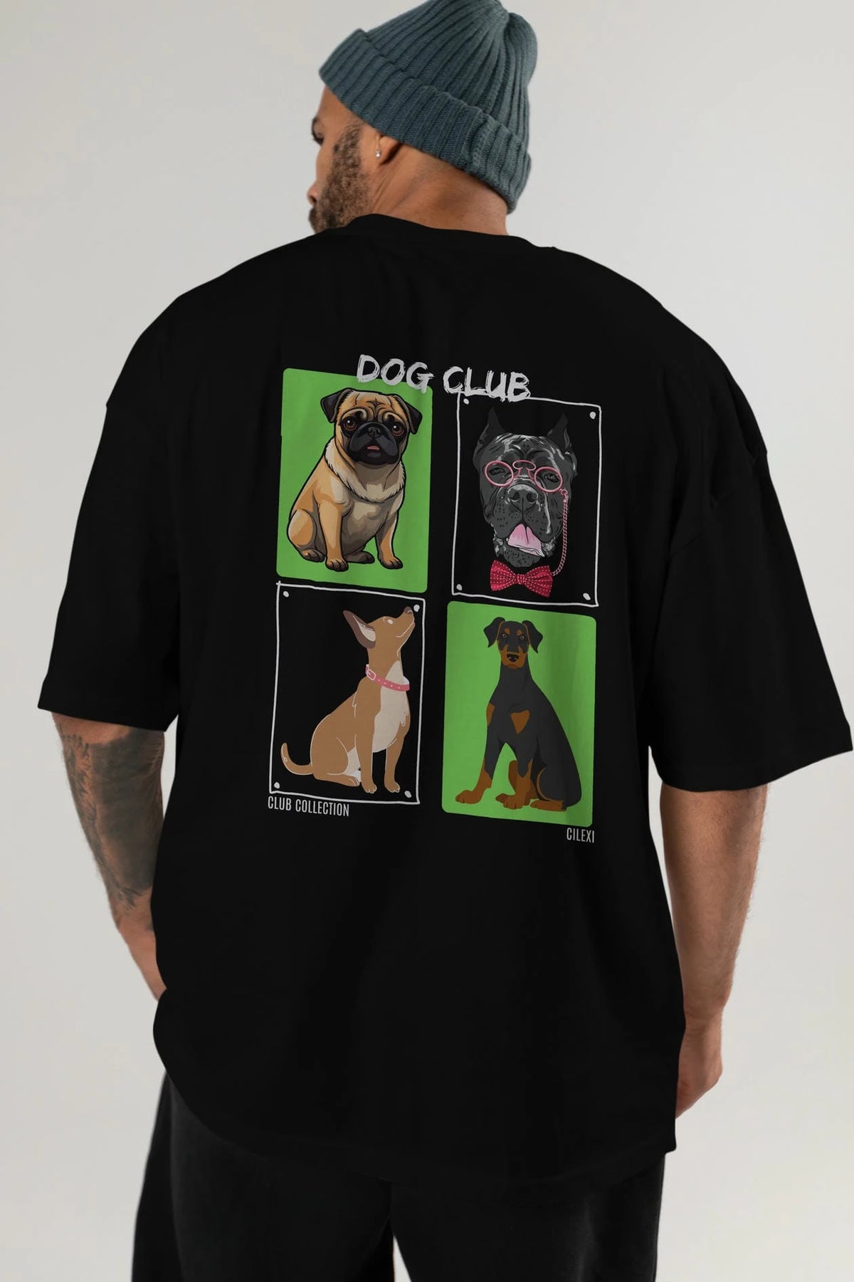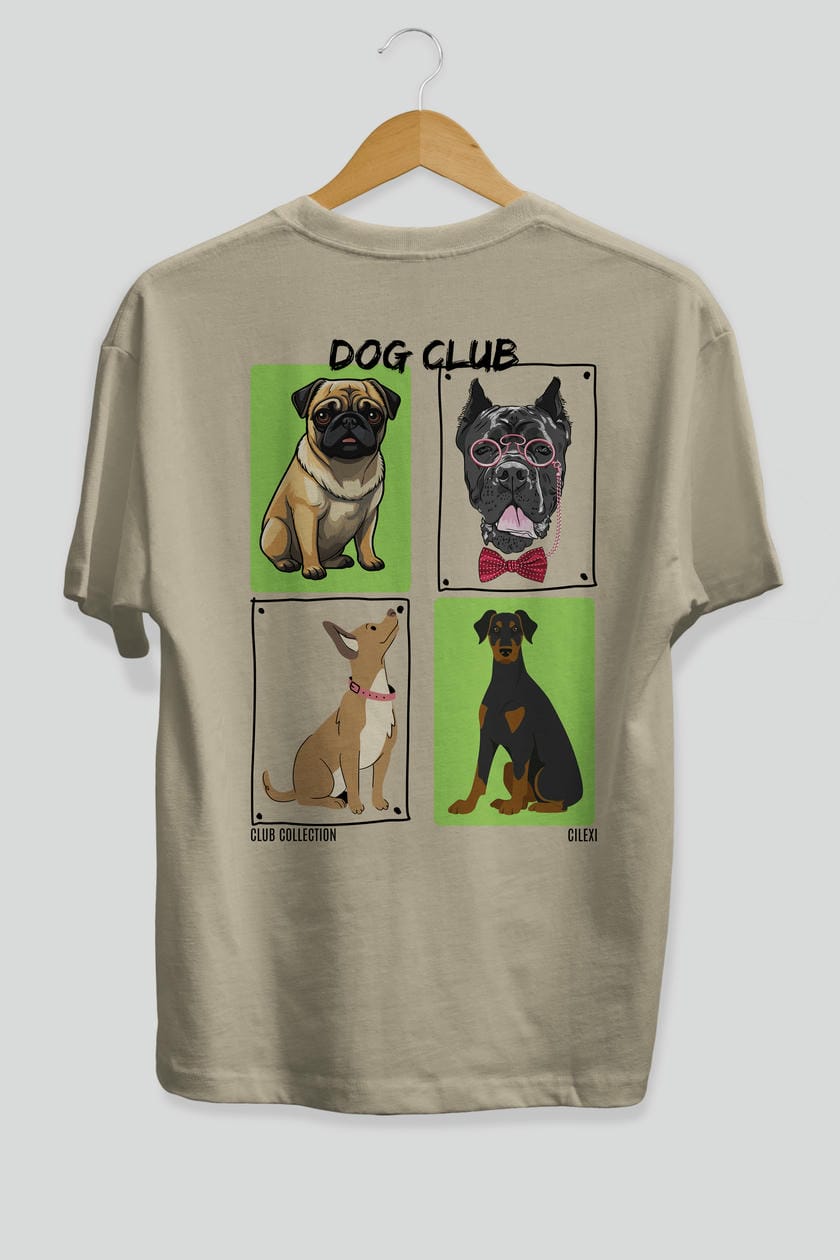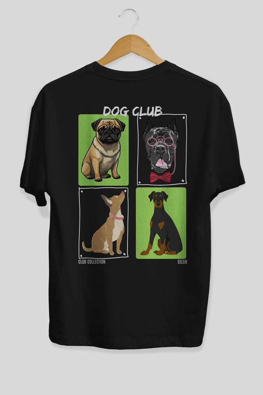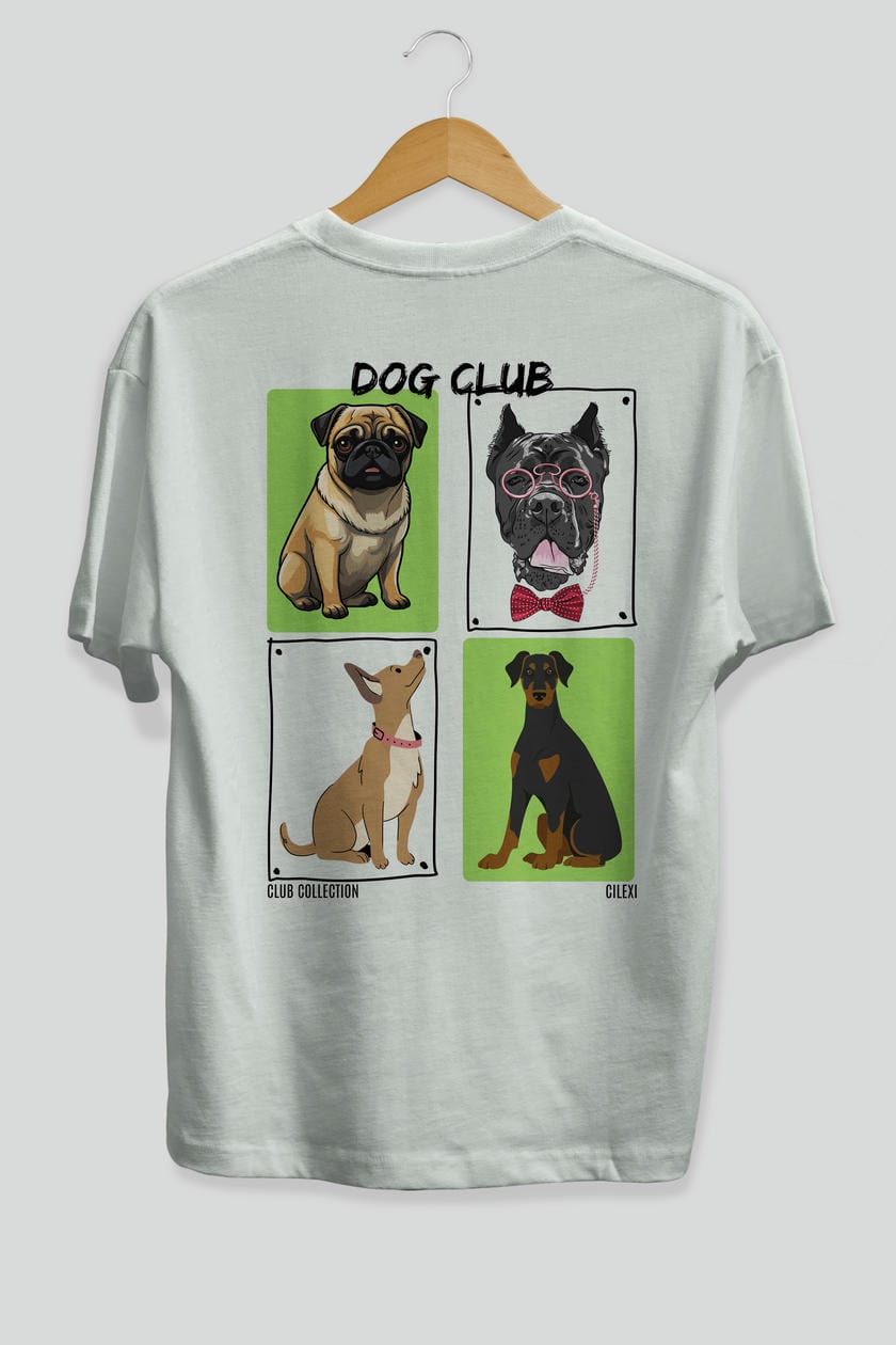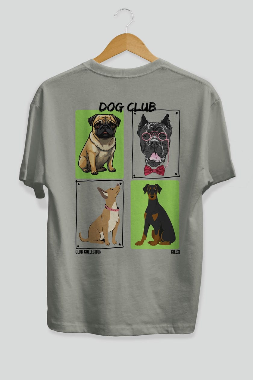 Dog Club Arka Baskılı Oversize t-shirt Erkek Kadın %100 Pamuk Bisiklet Yaka tişort