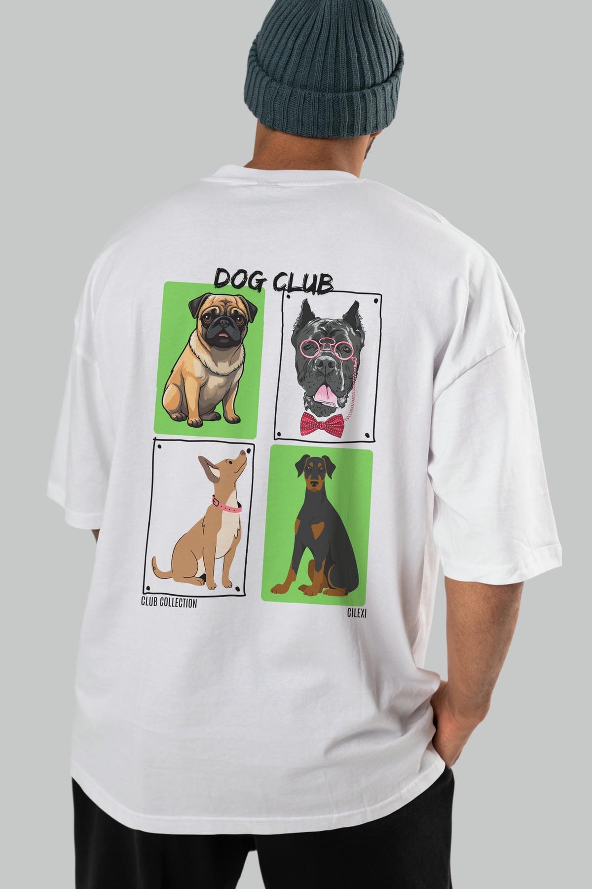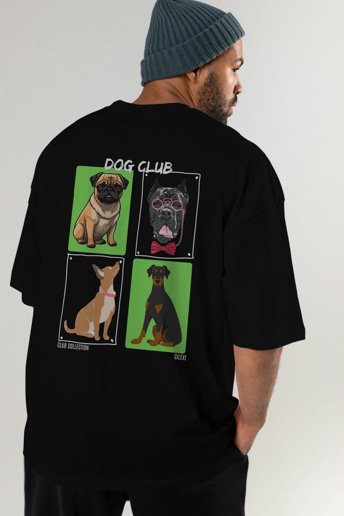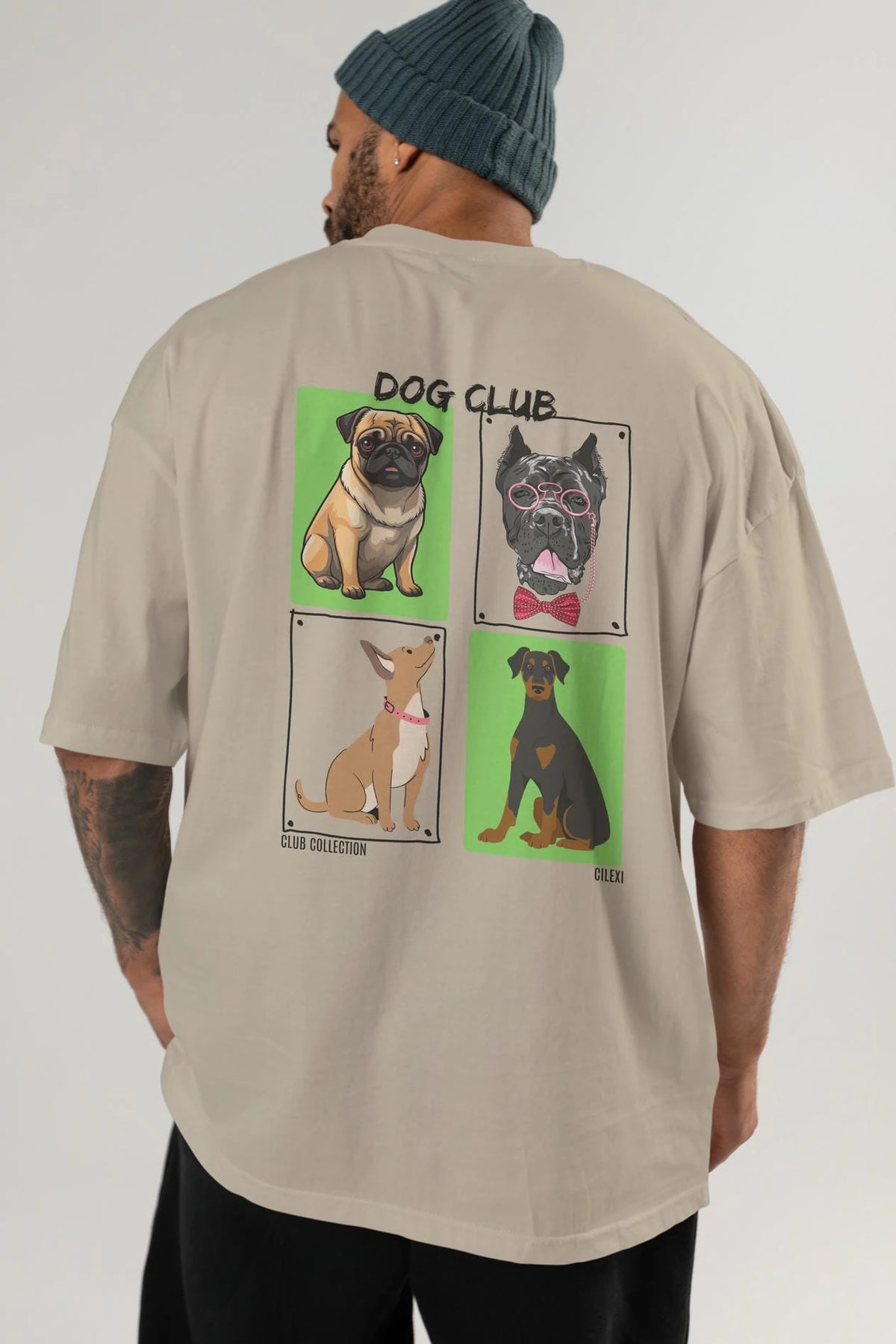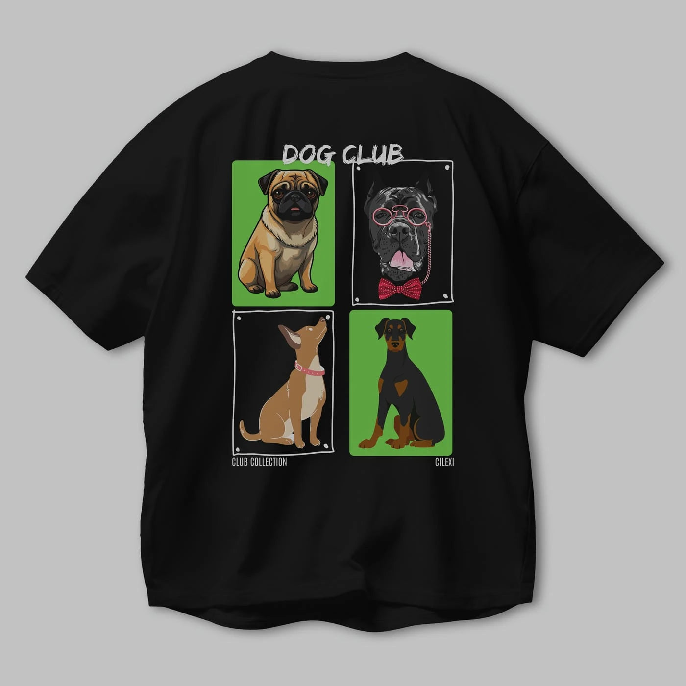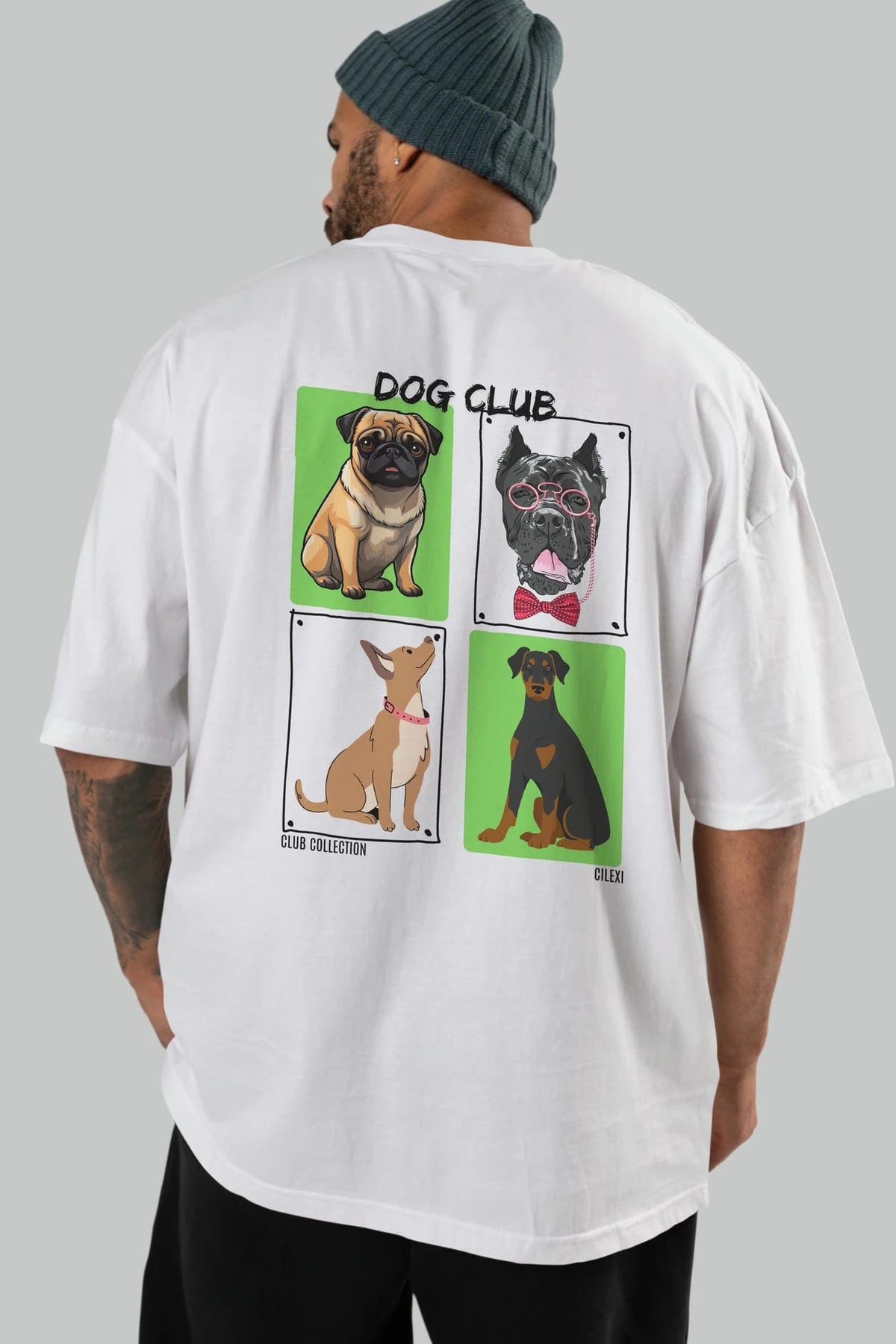 Dog Club Arka Baskılı Oversize t-shirt Erkek Kadın %100 Pamuk Bisiklet Yaka tişort
