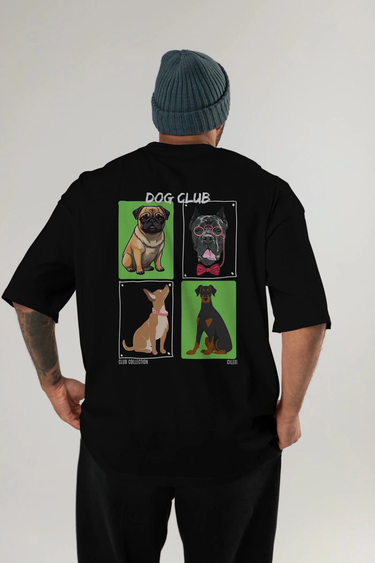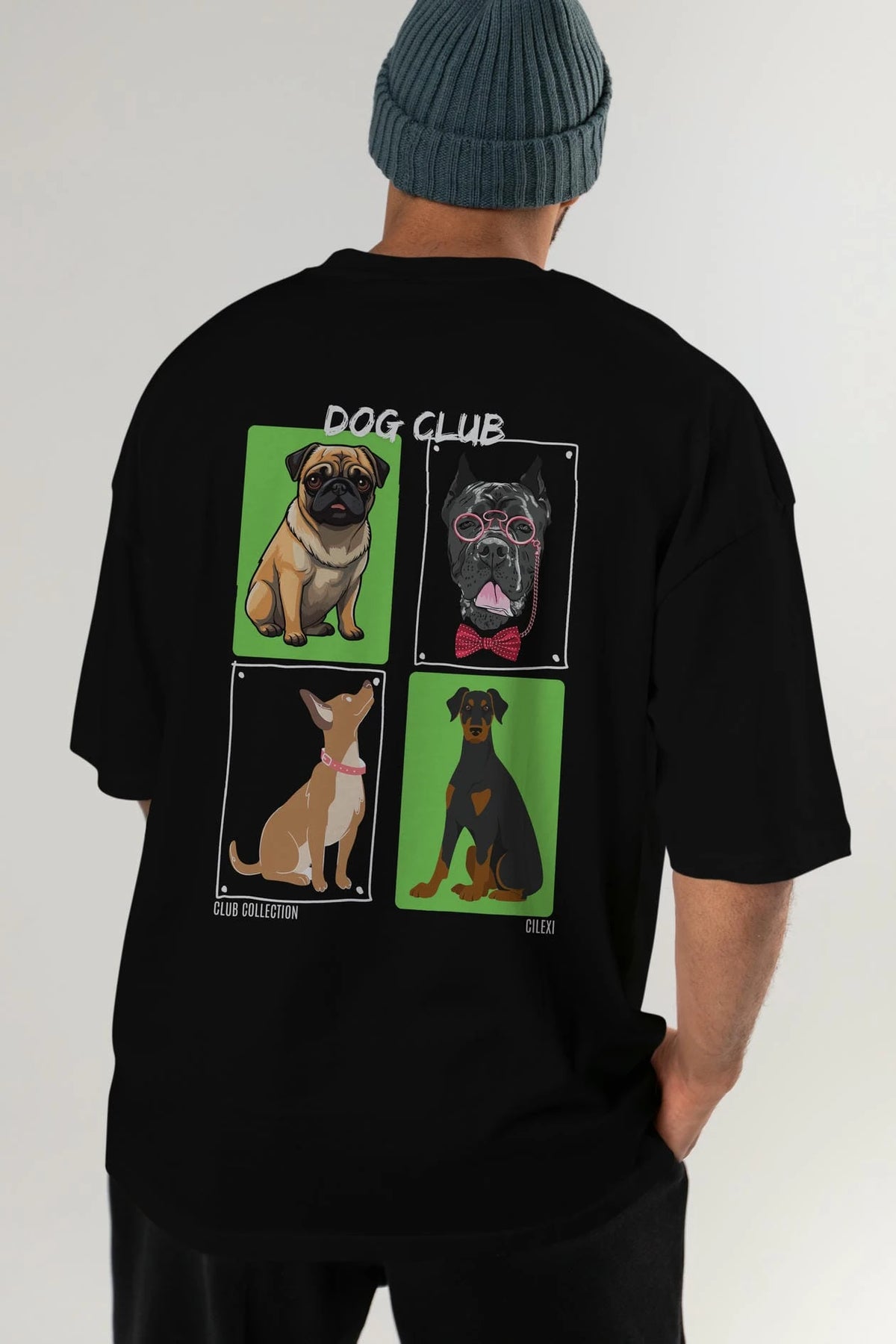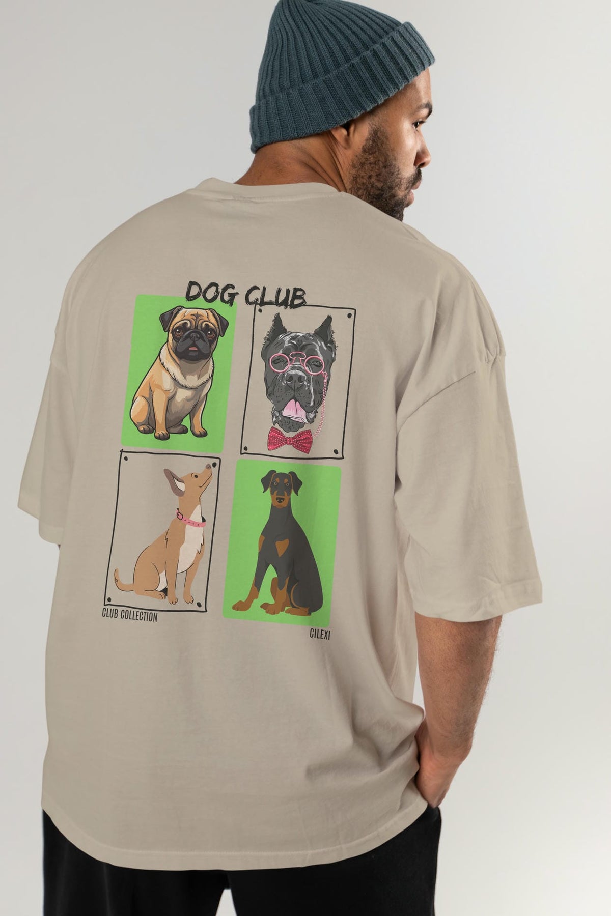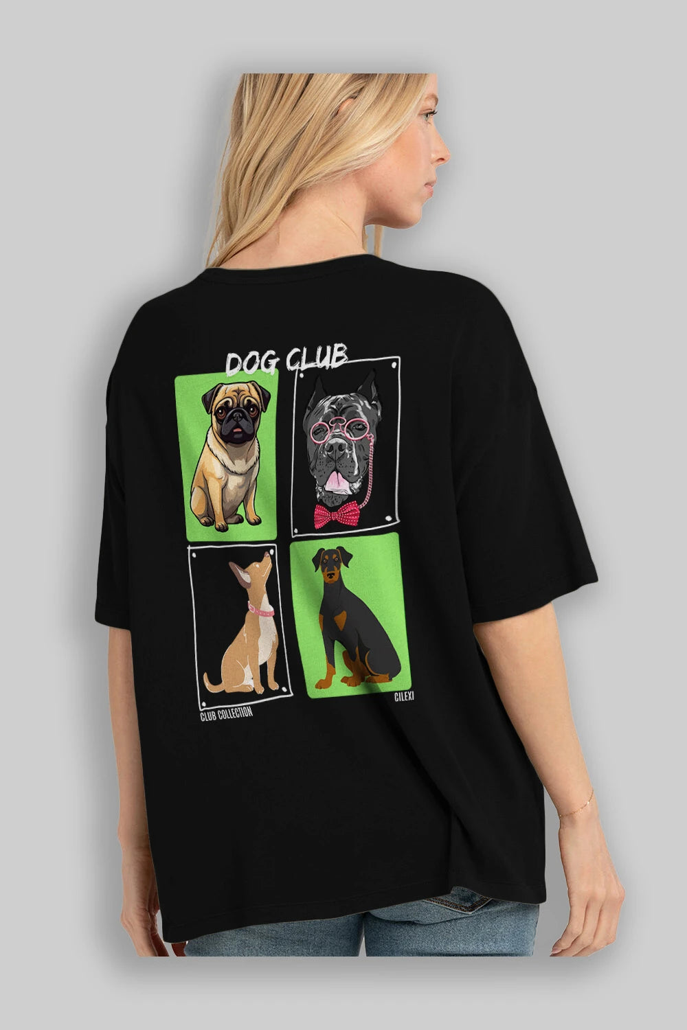 Dog Club Arka Baskılı Oversize t-shirt Erkek Kadın %100 Pamuk Bisiklet Yaka tişort