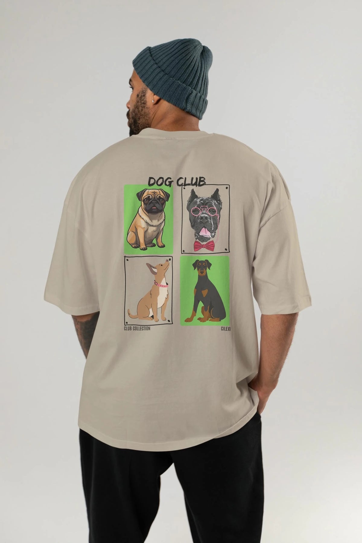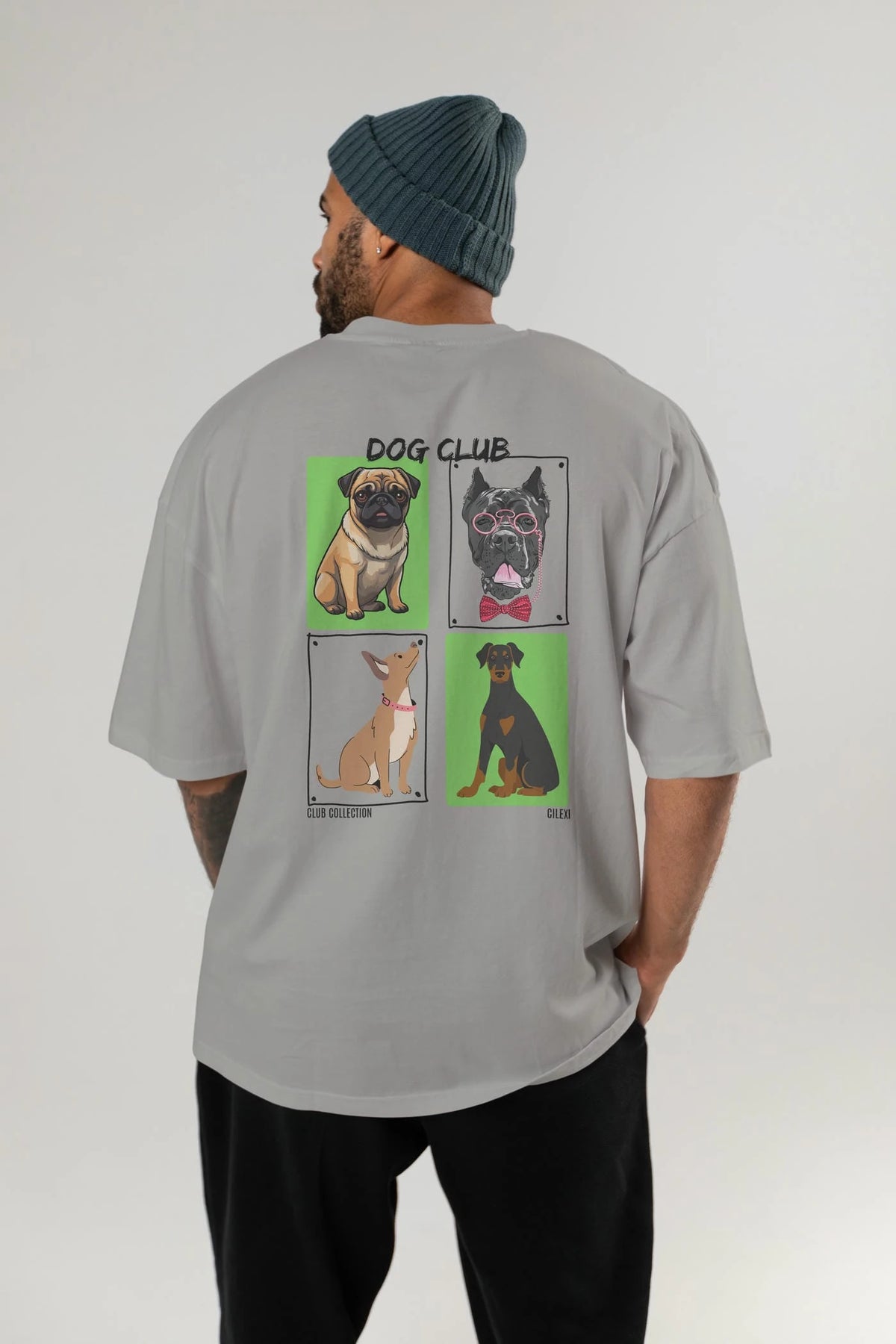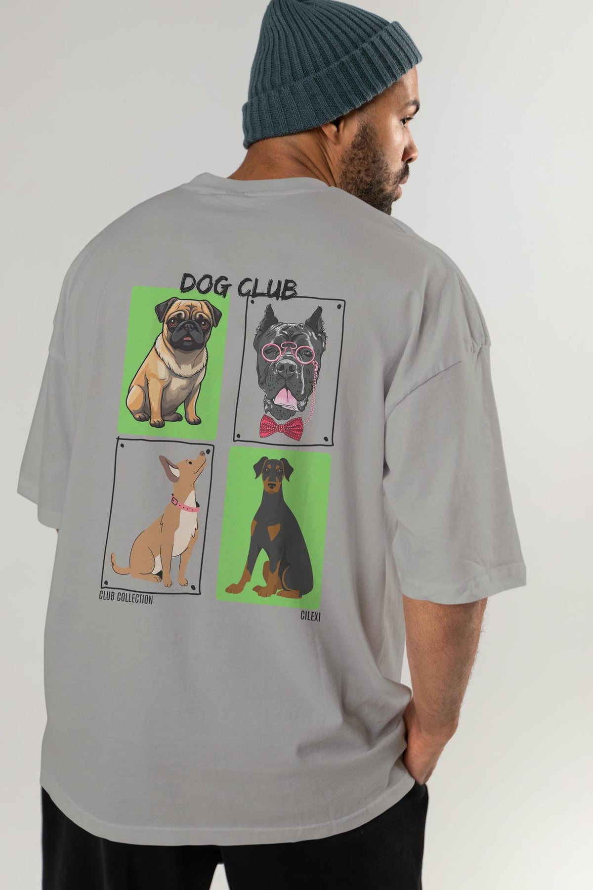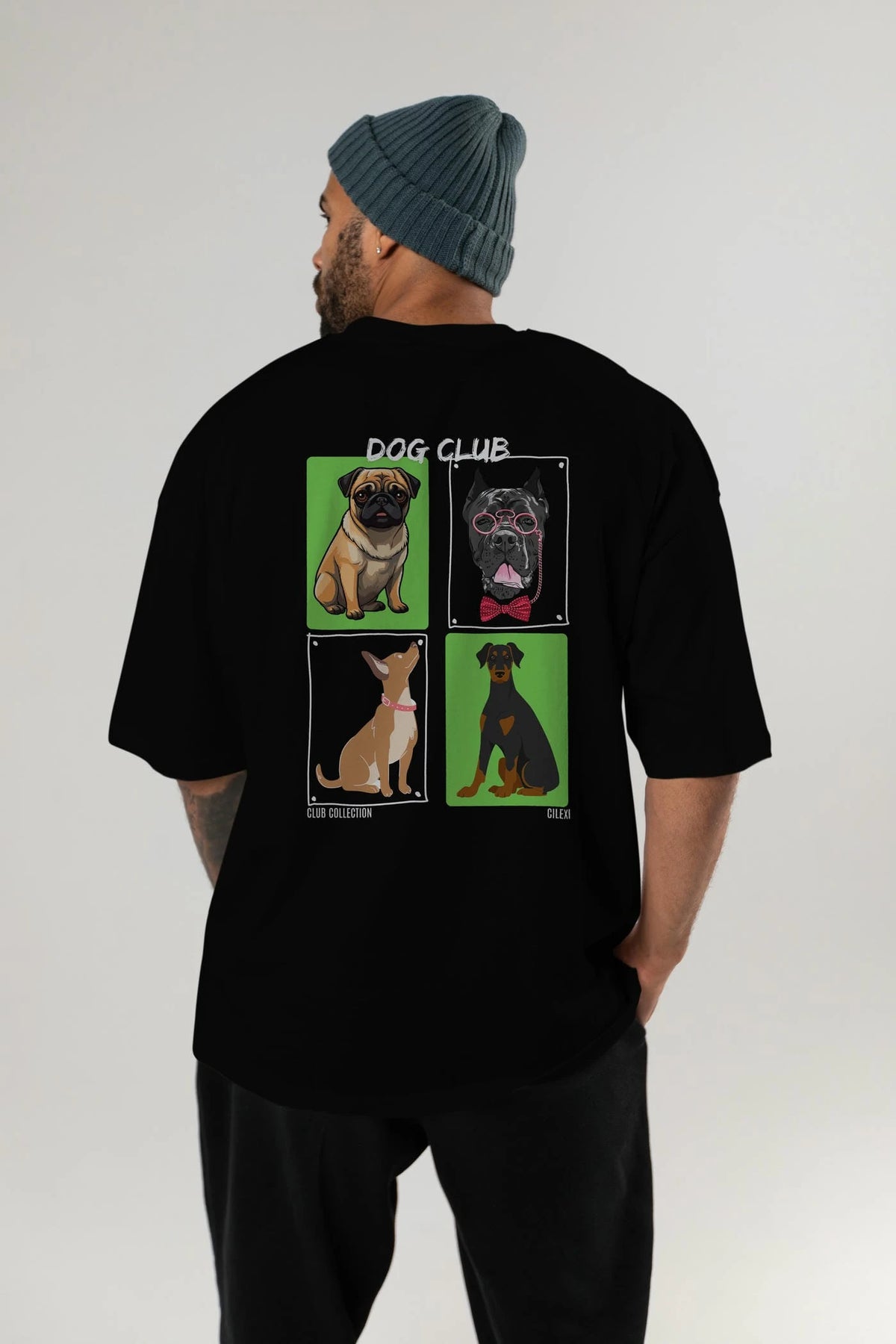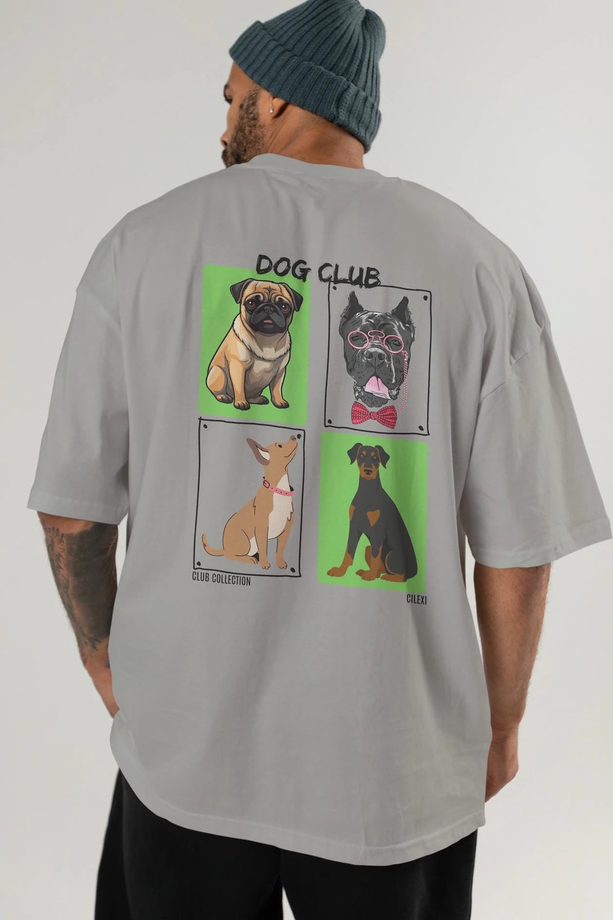 Dog Club Arka Baskılı Oversize t-shirt Erkek Kadın %100 Pamuk Bisiklet Yaka tişort